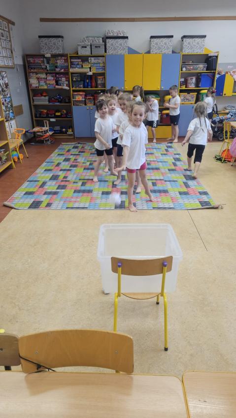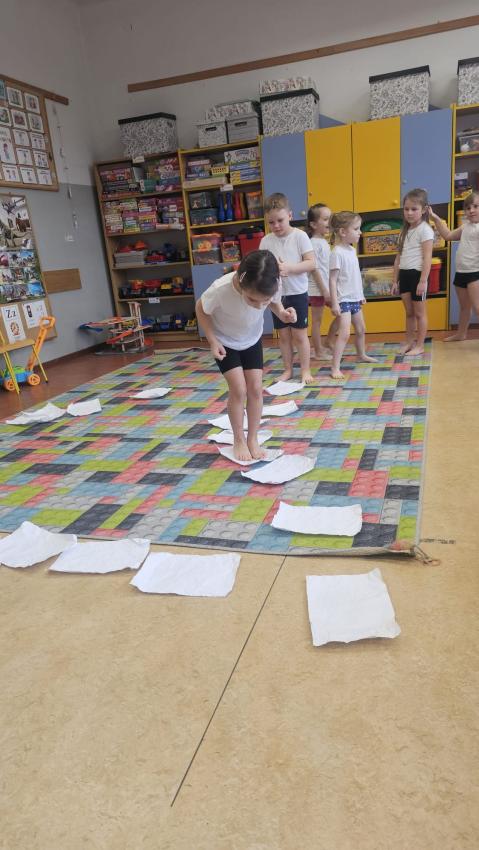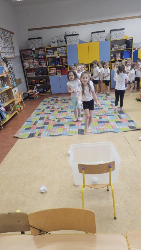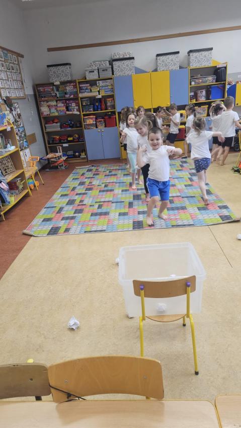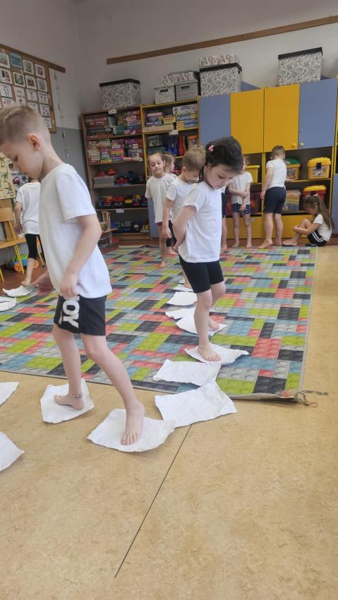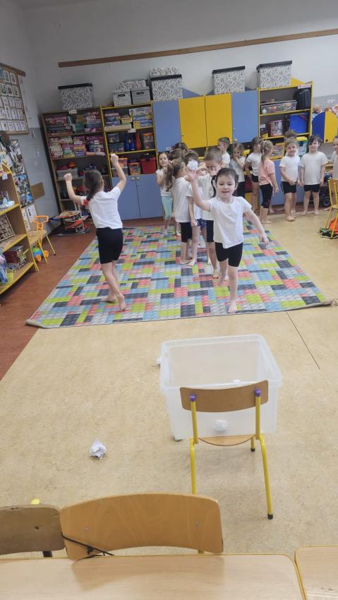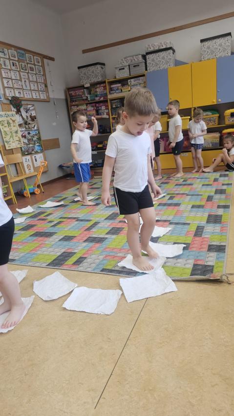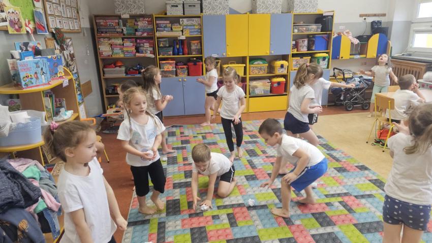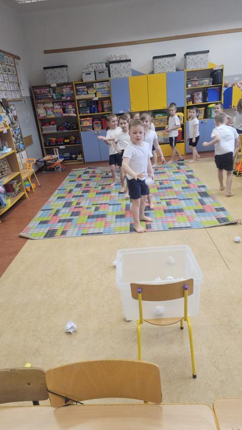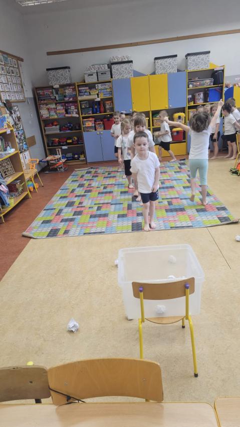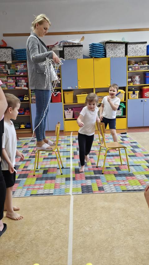 "Gimnastyka to podstawa i dla zdrowia, ważna sprawa. Ręce w górę, potem w bok i do przodu wielki skok". Krasnale dzielnie realizując kolejne zadania Ogólnopolskiego Projektu Edukacyjnego "W zdrowym ciele, zdrowy duch, wie to każdy mały zuch!".