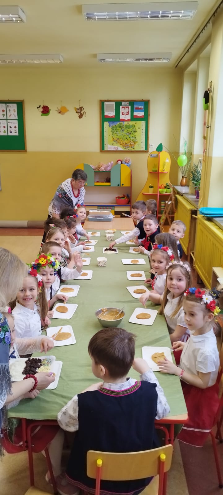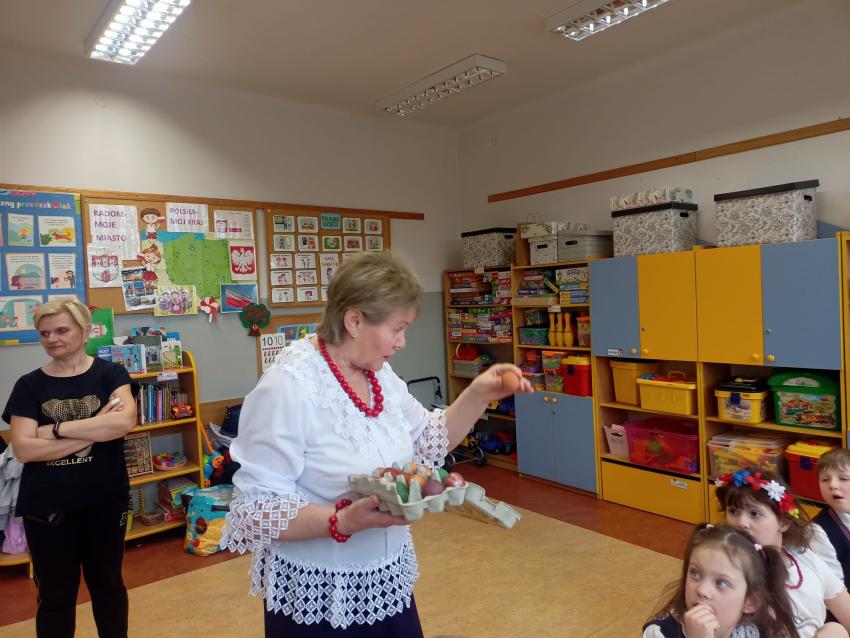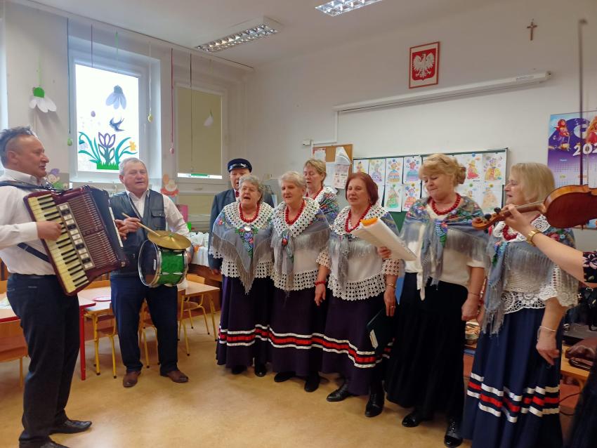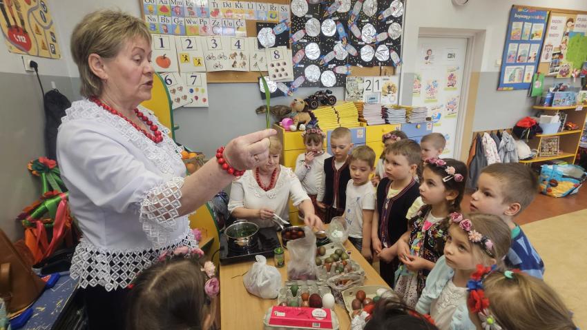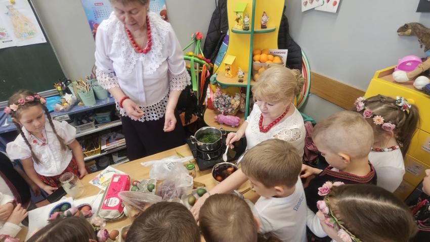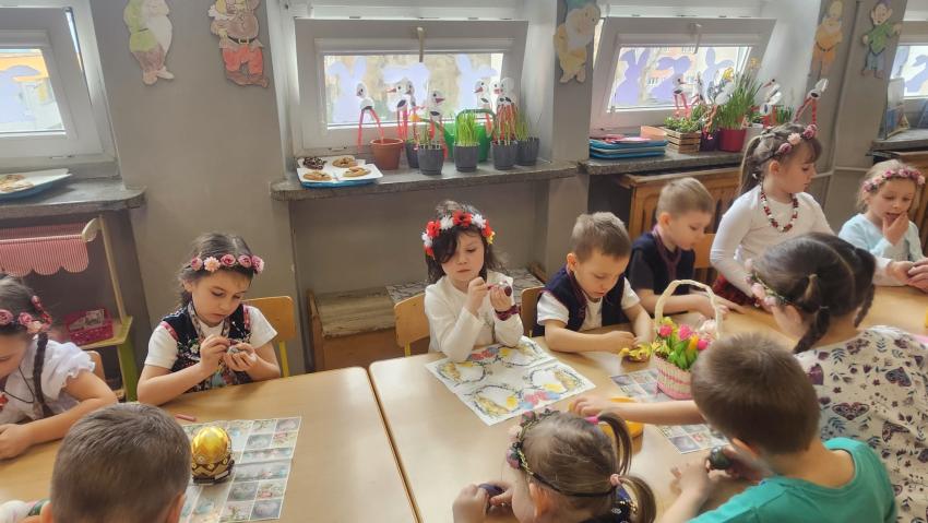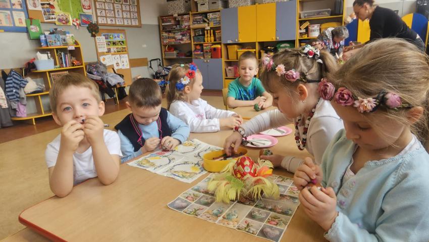 Oddziały znajdujące się w PSP 33 odwiedziło dziś Koło Gospodyń Wiejskich z Bierwc. Nasi goście przybliżyli dzieciom tradycje związane ze Świętami Wielkanocnymi. Dzieci wykonały mazurki, pisanki oraz nauczyły się ludowej piosenki wielkanocnej . Było wspaniale, dziękujemy Naszym Gościom za poświęcony czas.