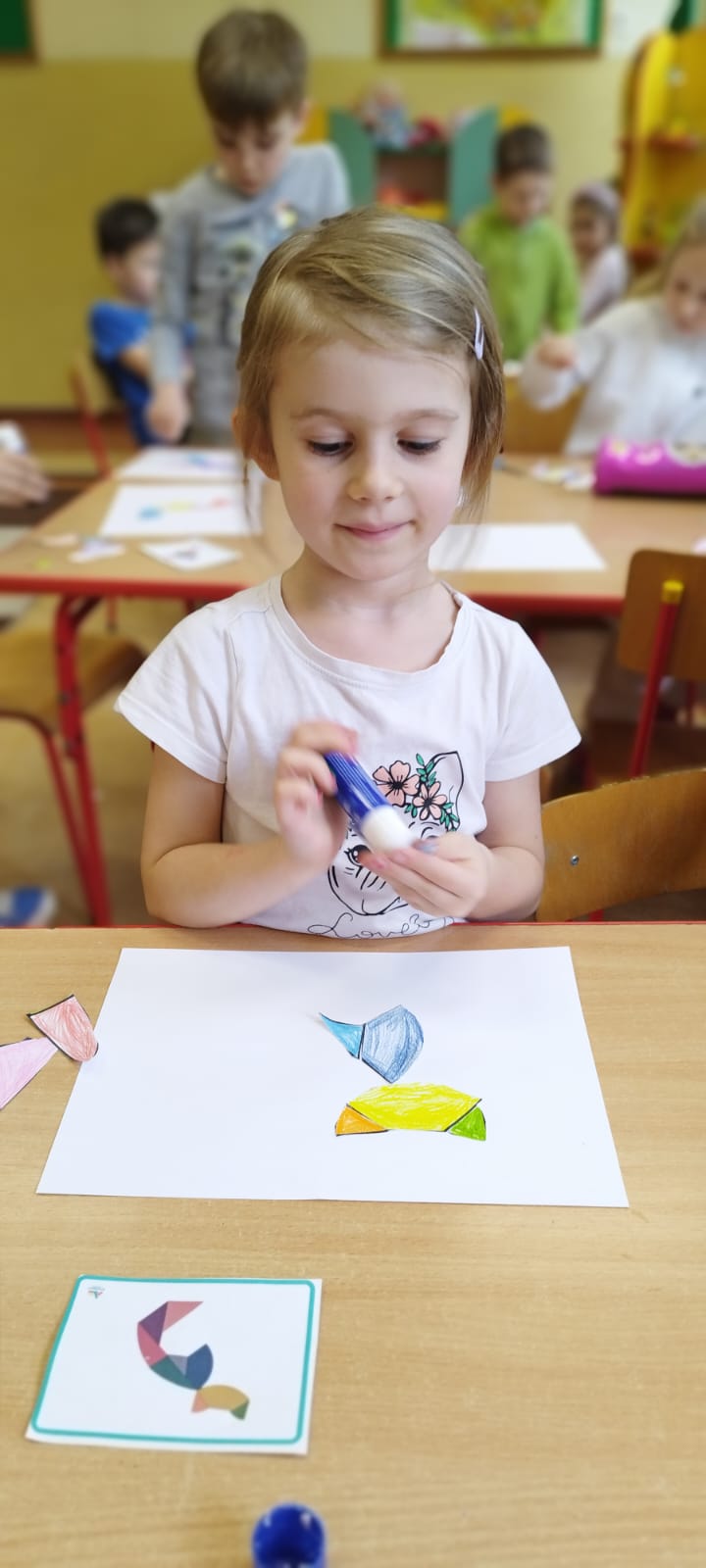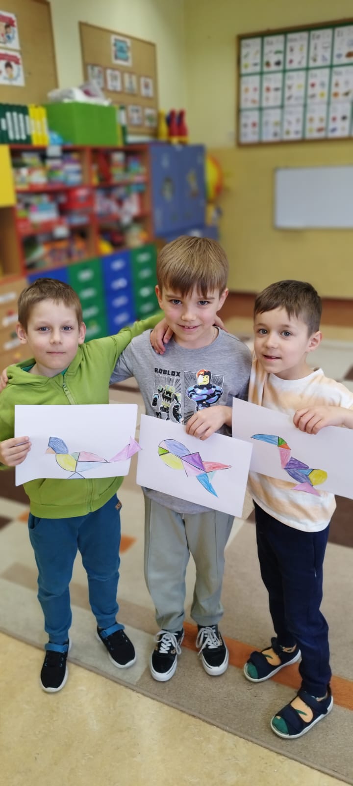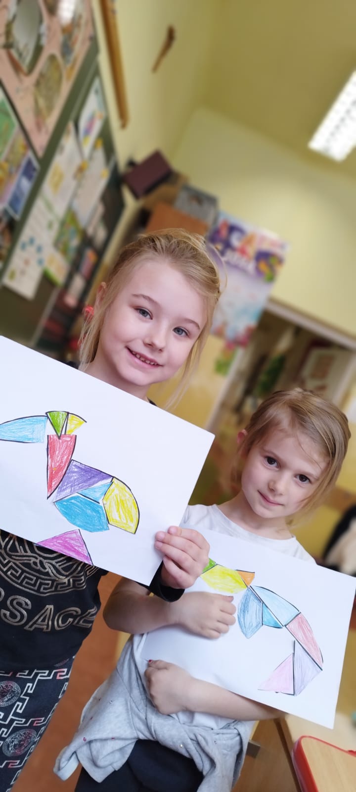 W tym miesiącu dzieci z grupy Tygryski wykonały kolejne zadania z ogólnopolskiego projektu "Kreatywna matematyka". Ten moduł nosił tytuł "Matematyka z Jajem". Dzieci malowały jajko, przecinały go na kilka części oraz tworzyły z niego kreatywne obrazki, np. papugę, kotka, motylka i wiele wiele innych.