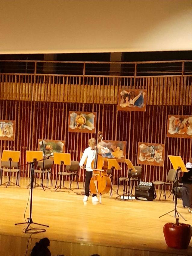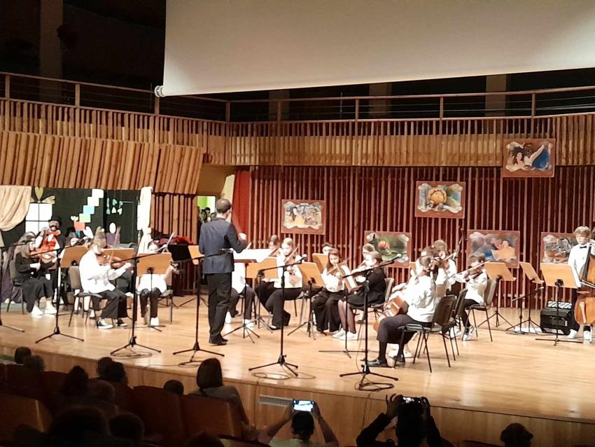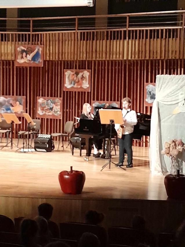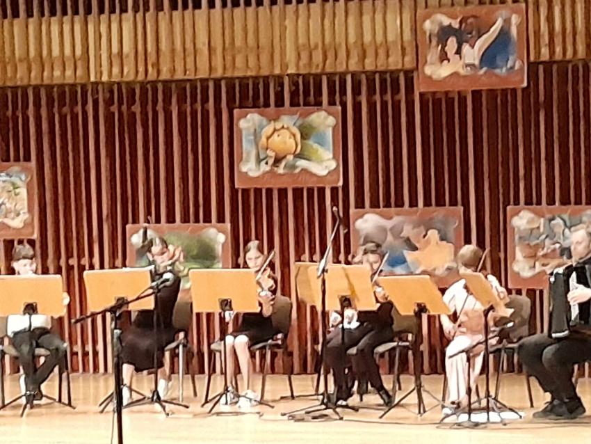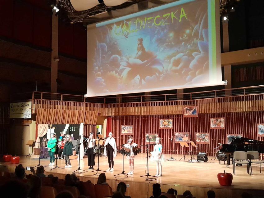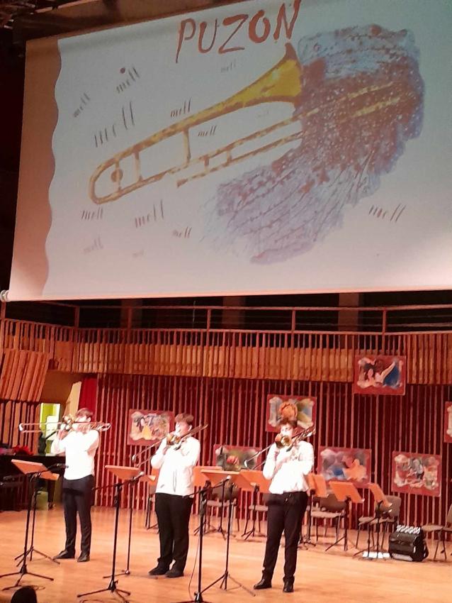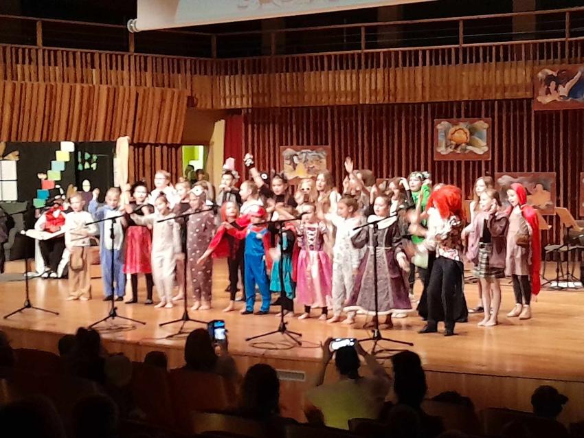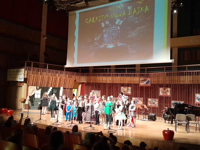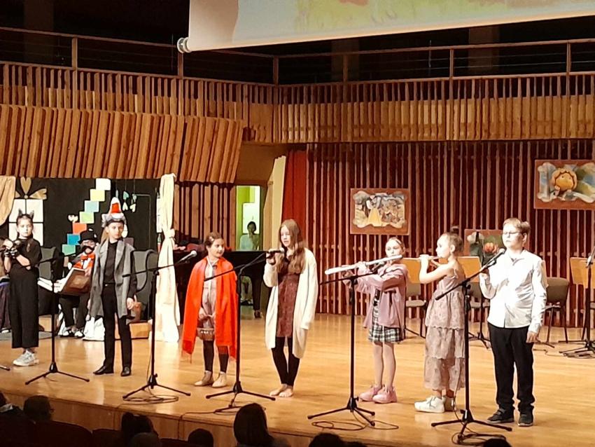 Dzieci z grupy Krasnoludków, wybrały się do Szkoły Muzycznej na koncert pod tytułem "Bajki na cztery łapki". Powitanie Pana Bemola i Pani Nutki rozpoczęło się od występów dziecięcej orkiestry oraz piosenki z Akademii Pana Kleksa ?Witajcie w naszej bajce?? Podczas koncertu dzieci obejrzały krótkie przedstawienia znanych bajek takich jak: Kopciuszek, Czerwony Kapturek, Calineczka. Na scenie nie zabrakło prezentacji gry na instrumentach takich jak: puzon, fagot, saksofon, fortepian, kontrabas. Z niecierpliwością będziemy czekać na kolejne spotkania z Panem Bemolem i Panią Nutką po wakacjach.