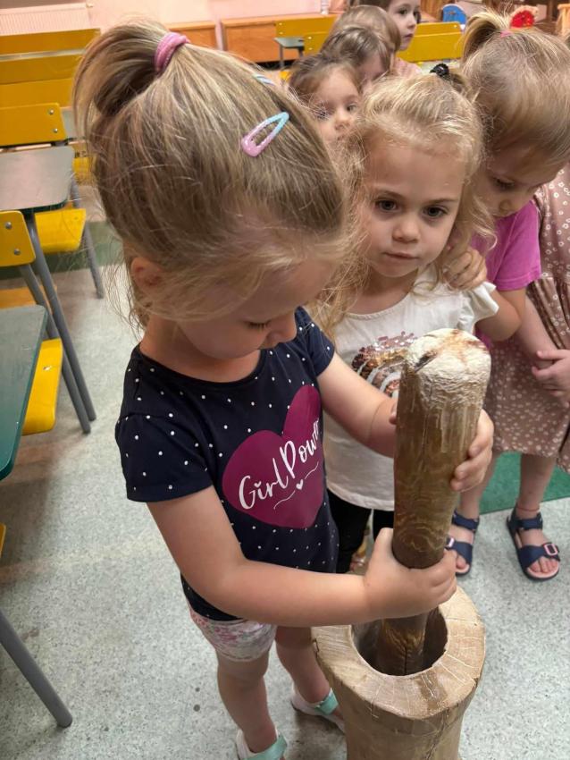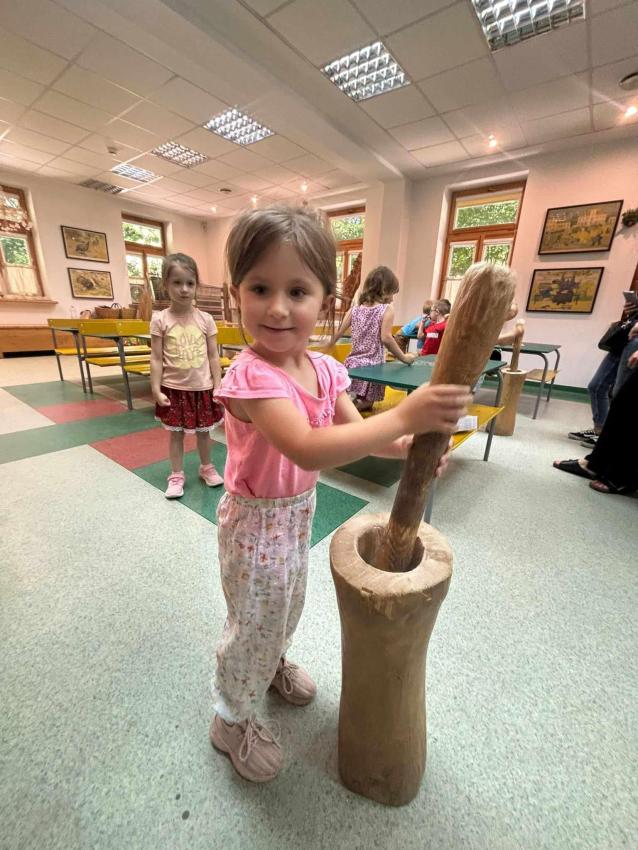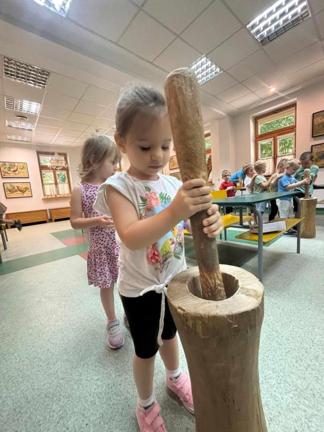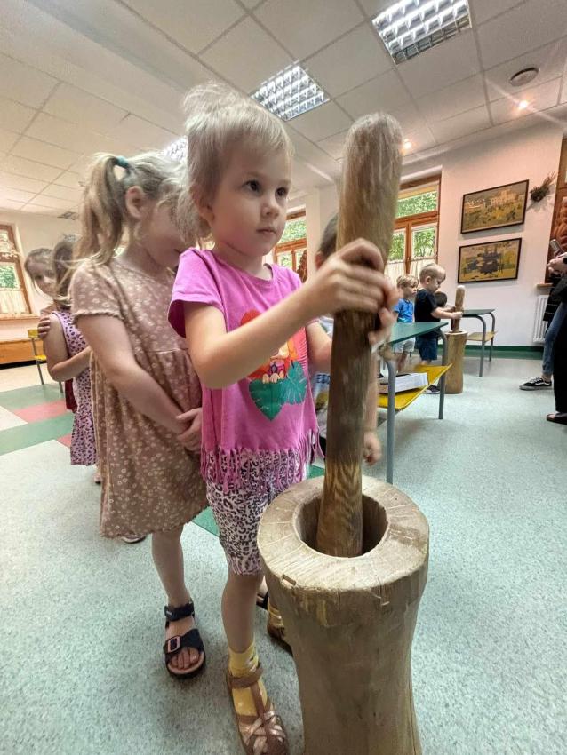 Biedroneczki  wzięły dziś udział w warsztatach ?Od ziarenka do bochenka?, które odbyły się w Muzeum Wsi Radomskiej. Dowiedziały się, jak powstaje mąka, a nawet same wyprodukowały jej trochę. Zamieniły się również w piekarzy, formując pyszne bułeczki. Po warsztatach nie zabrakło wizyty na placu zabaw, gdzie świetnie się bawiły. Wyjazd zdecydowanie można uznać za udany.