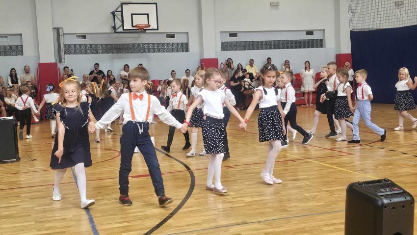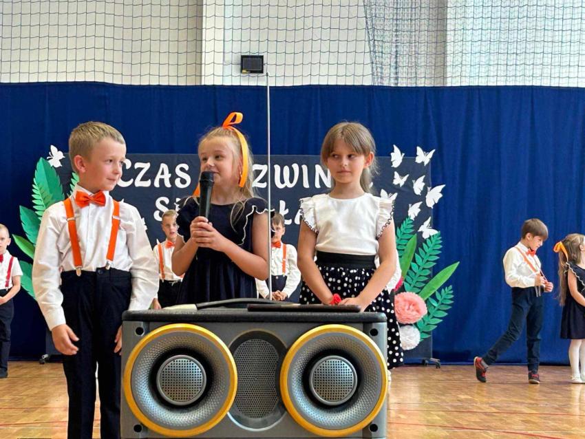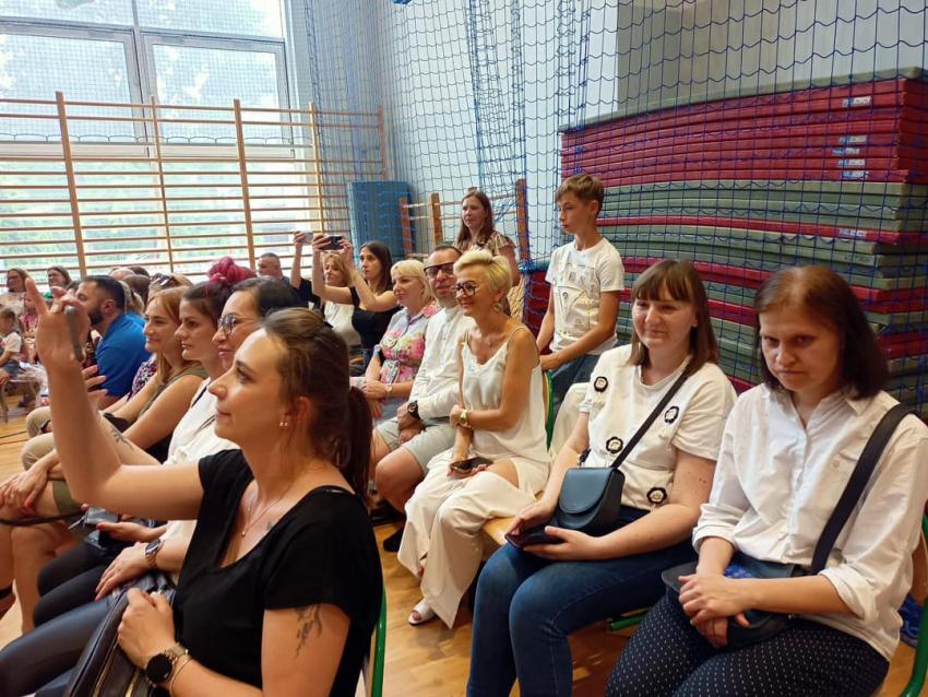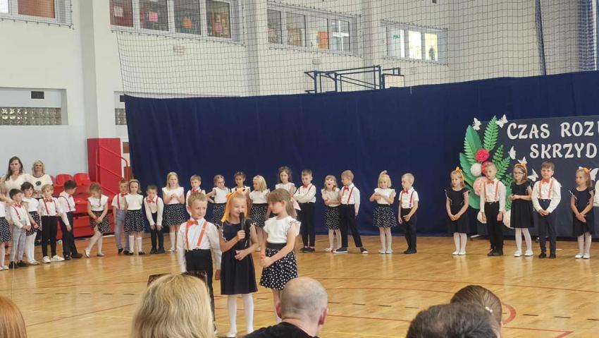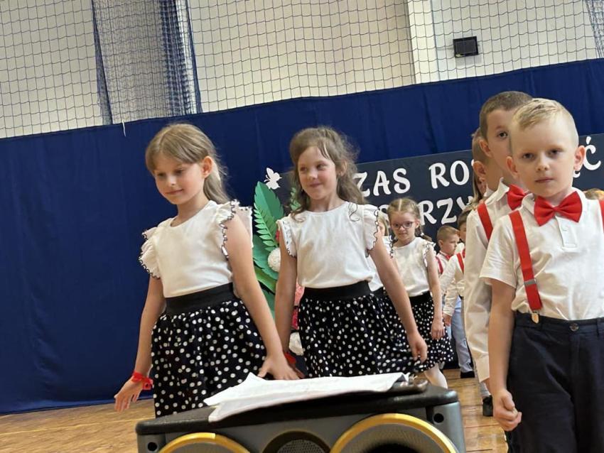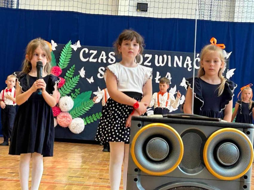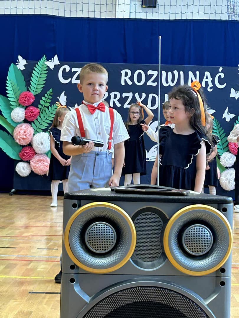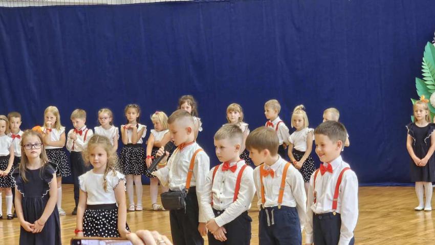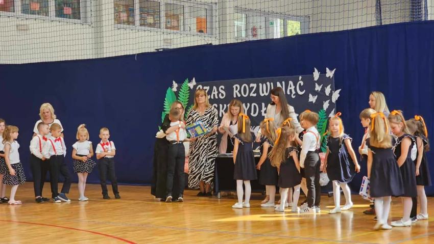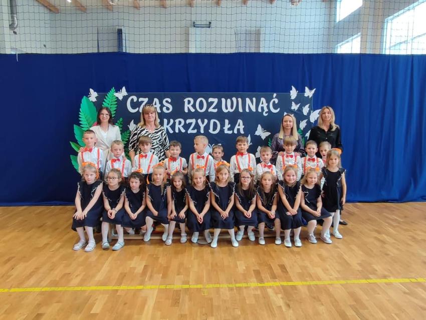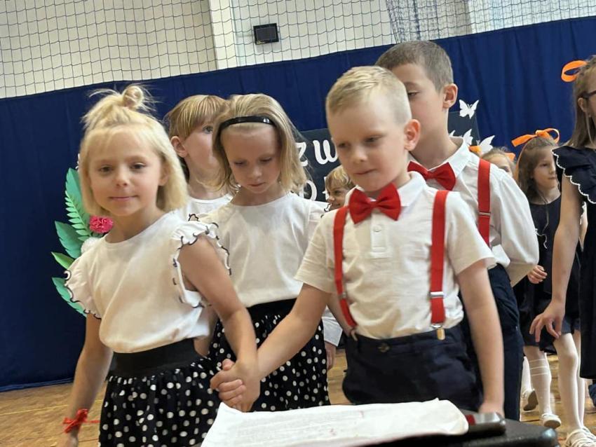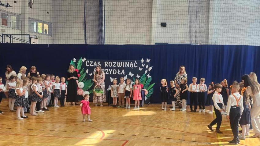 Dzieci podczas przepięknej uroczystości zakończyły swoją przedszkolną edukację .
