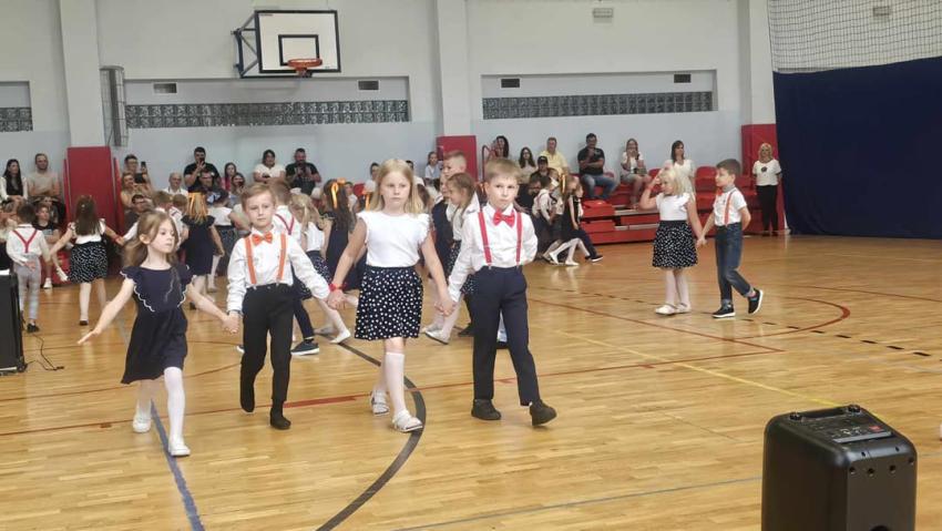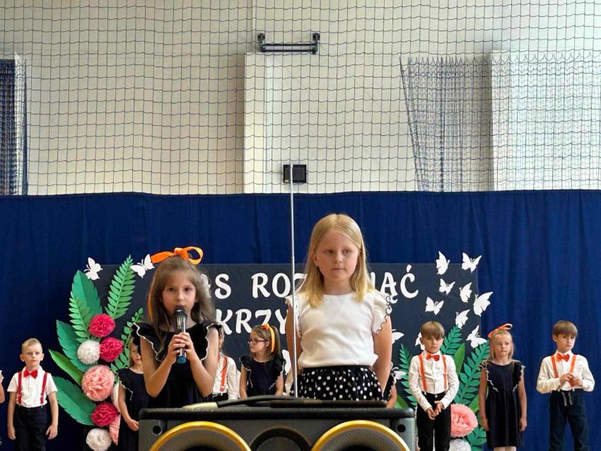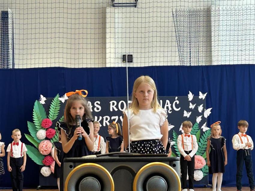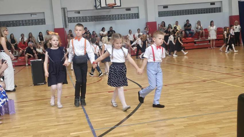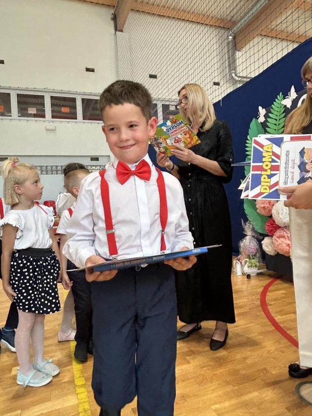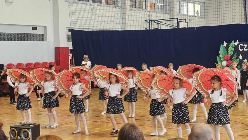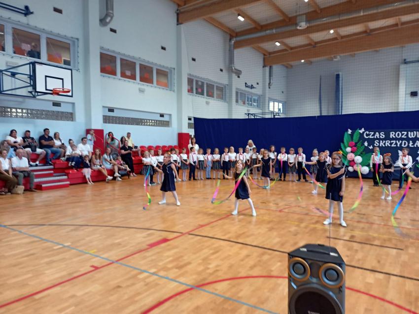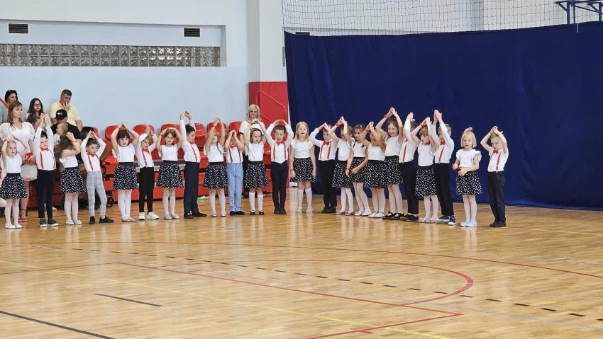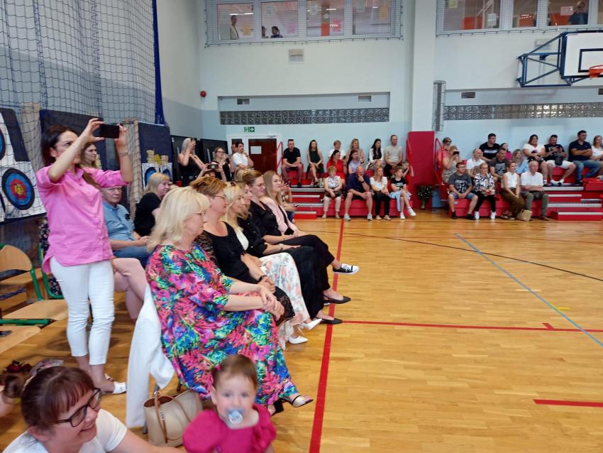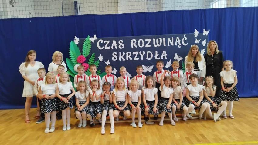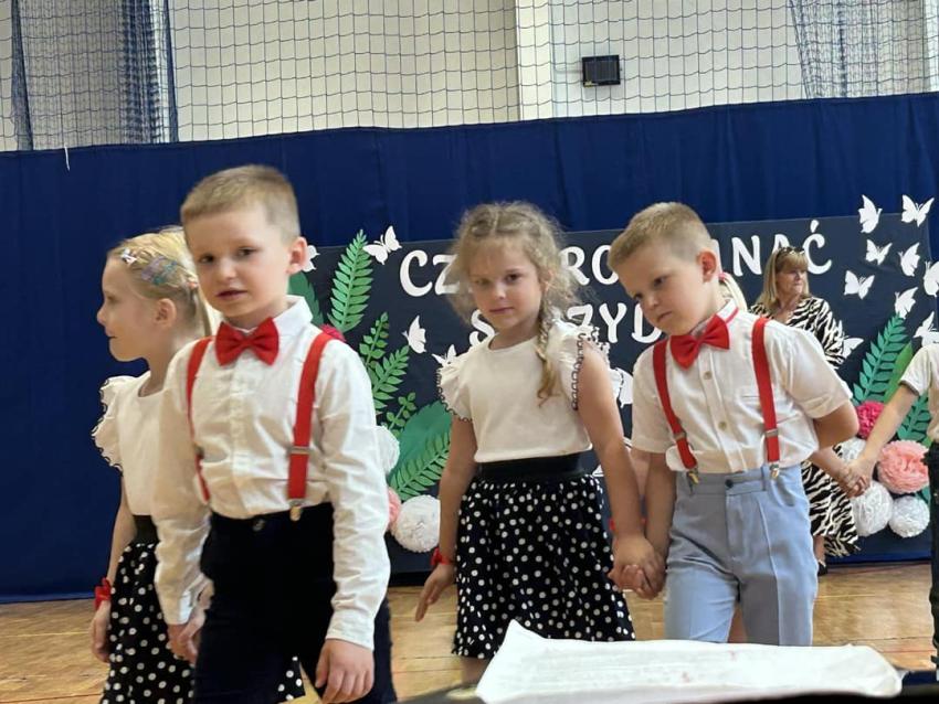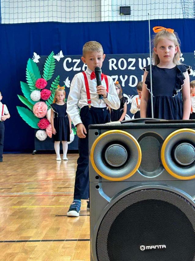 Dzieci podczas przepięknej uroczystości zakończyły swoją przedszkolną edukację .