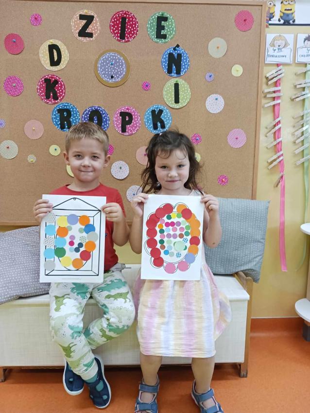 Dzień kropki świętowały również Krasnale. Dzieci poznały historię Vashtii, ćwiczyły i bawiły się z kropkami, wykonywały kropkowe prace plastyczne.