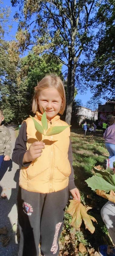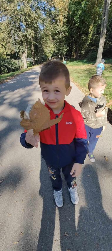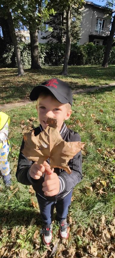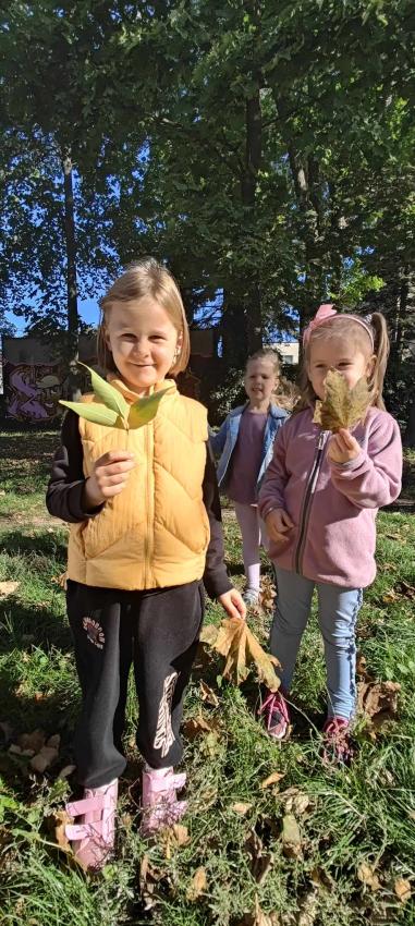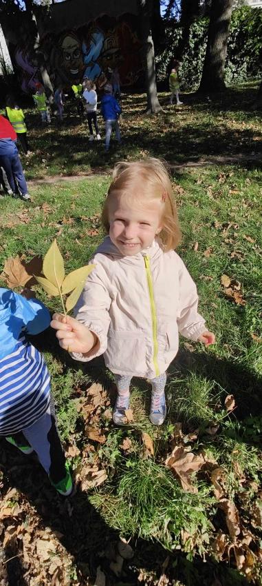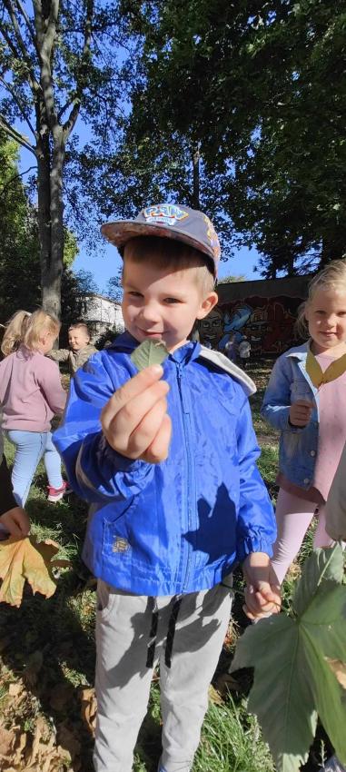 ?Przyrody potrzebuję - w naturze pracuję?. Jesienne zajęcia w parku sprawiły dzieciom mnóstwo radości. Szukaliśmy oznak jesieni, rozpoznawaliśmy drzewa i liście. Czerpaliśmy energię z przyrody ("Postaw na ekologię" z projektu edukacyjnego - Postaw na wartości).