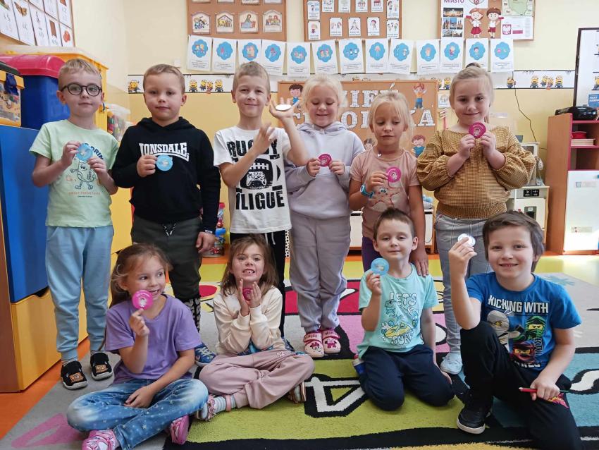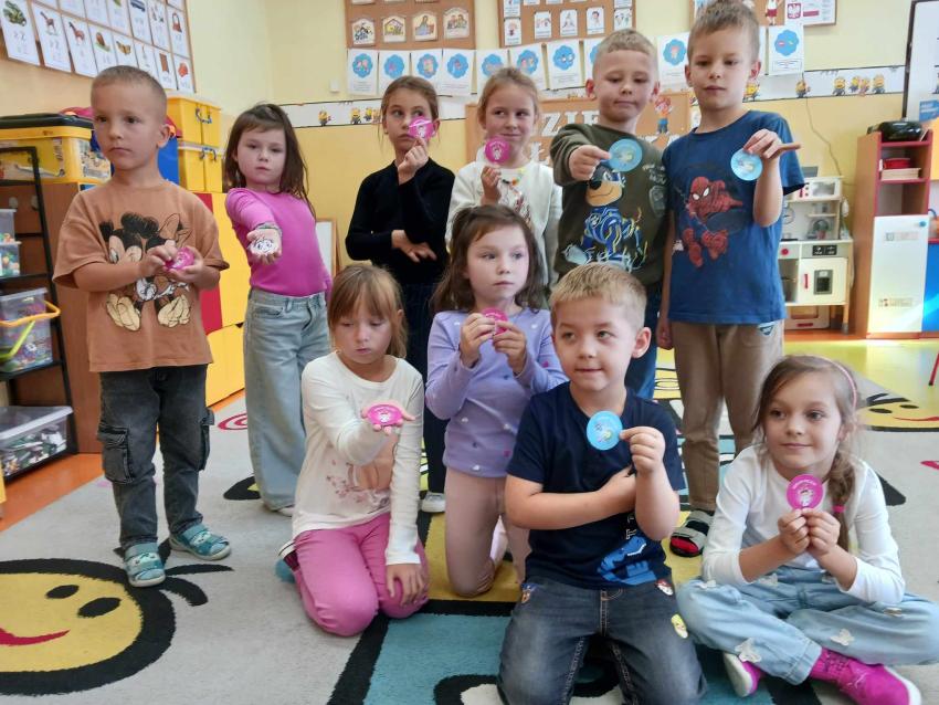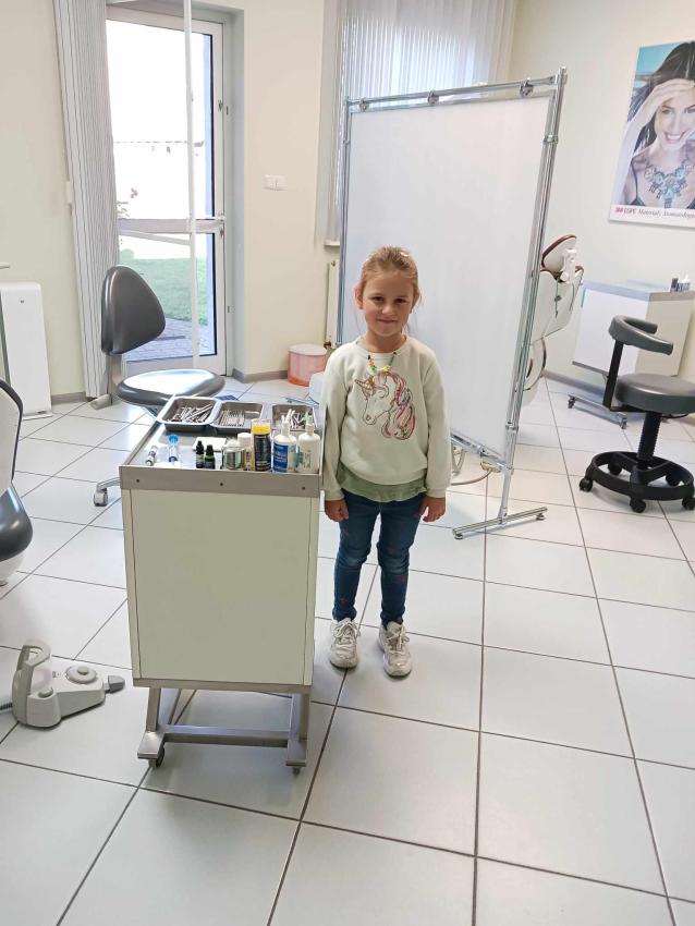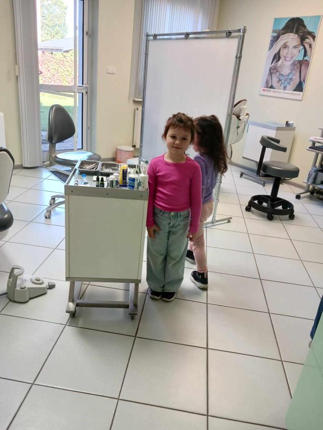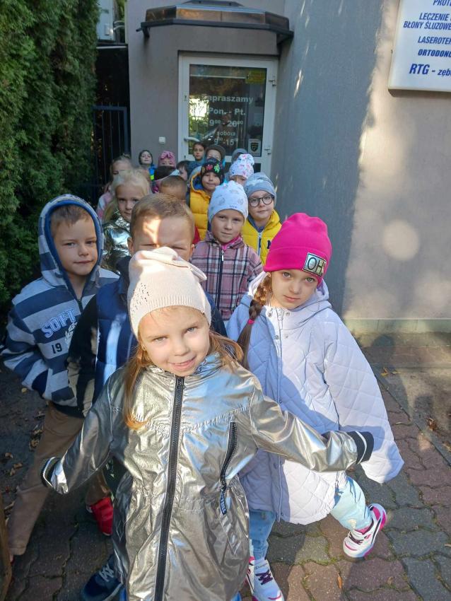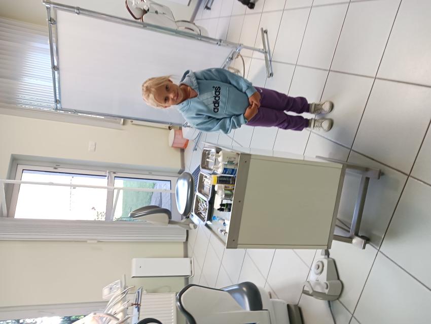 W poniedziałek 30.09.2024 grupa Krasnoludków odwiedziła Przychodnie Stomatologiczną. Wszystkie dzieci były bardzo dzielne podczas przeglądu ząbków. Każde dziecko wchodziło z uśmiechem na fotel i schodziło z uśmiechem. Każde dostało naklejkę Dzielnego Pacjenta. Podczas wizyty dzieci dowiedziały się co należy robić, aby mieć piękny uśmiech i zdrowe ząbki. Przy okazji grupa zrealizowała kolejne zadanie z tematyki "Postaw na zdrowie" Ogólnopolskiego Projektu Edukacyjnego Postaw na wartości.