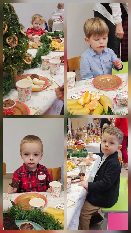 Dziś grupy Ślimaczki, Jagódki, Kropeczki, Motylki i Pszczółki spotkały się przy wigilijnym stole.