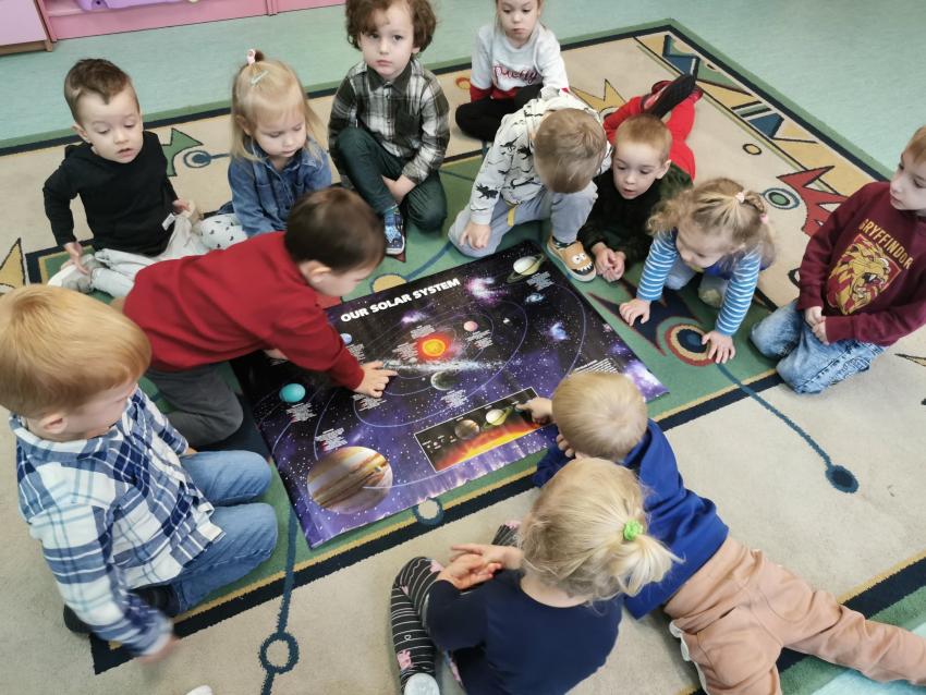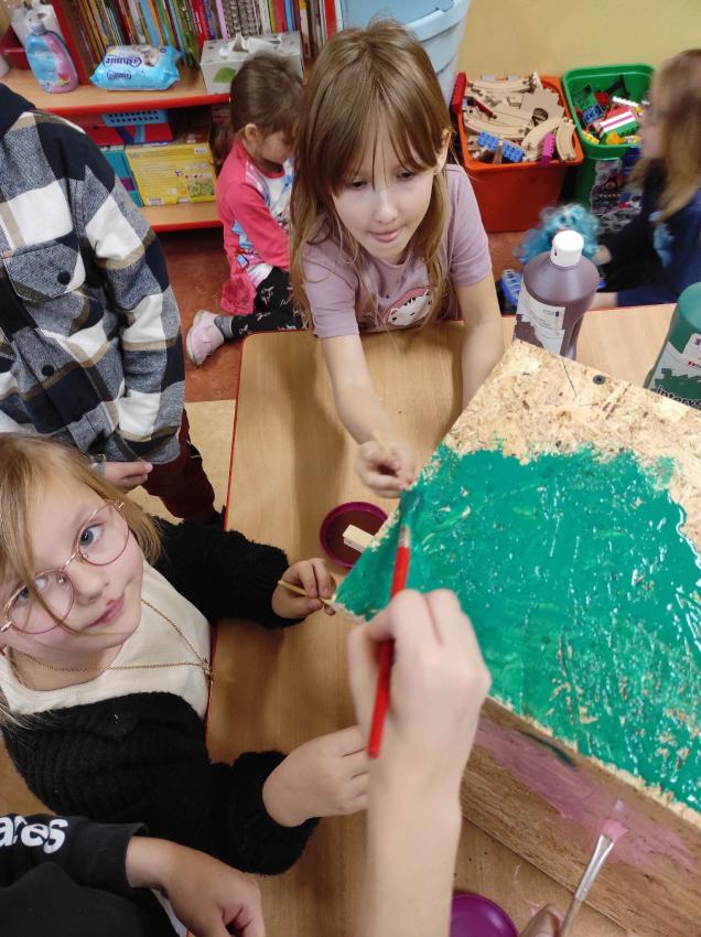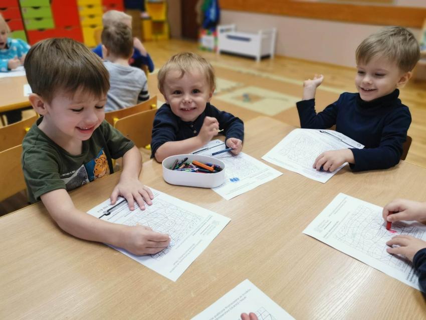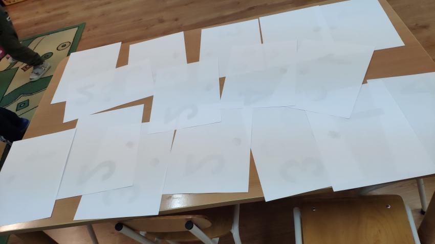 - grupa III wykonała zadanie 1. Ekologiczna gra matematyczna- wykonanie dowolnej gry. Dzieci podczas gry poznawały obraz graficzny cyfr 1-4 oraz porównywały liczebność zbiorów.