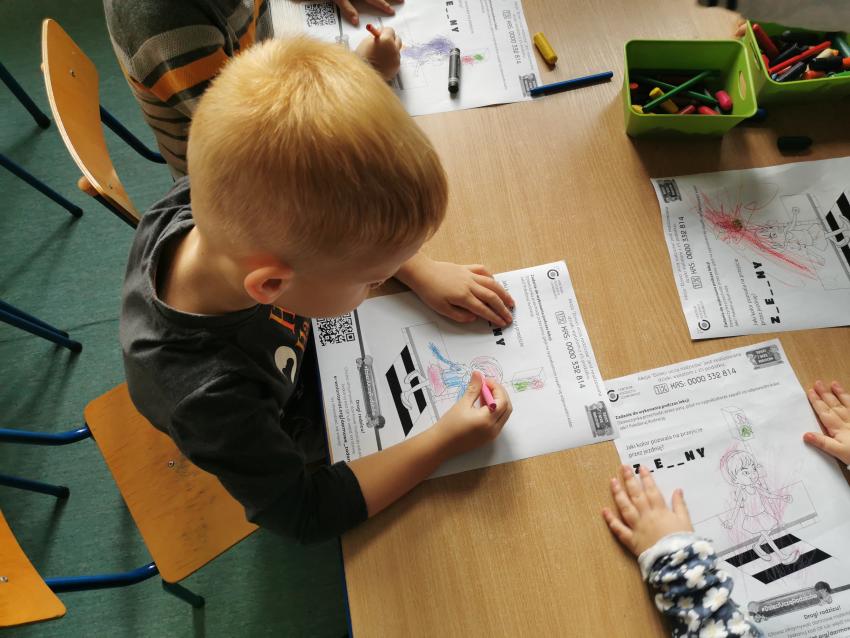 - Dzieci z grupy zajączków wcieliły się w rolę listonosza i z torbą pełną przesyłek pokonywały labirynt. Nie zabrakło im czasu i ochoty na kolorowanie ubrania listonosza.