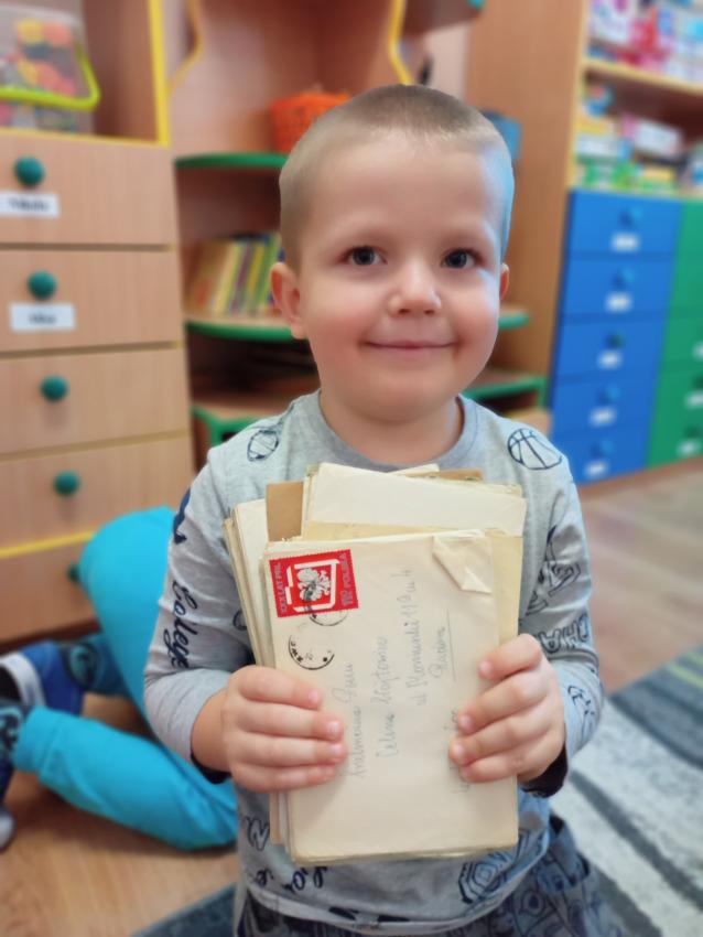 - Grupa Muchomorków wybrała się na pocztę, gdzie dzieci mogły z bliska zobaczyć jak wygląda praca w tym miejscu. Muchomorki kupiły znaczki i pocztówki, a w drodze powrotnej bawiły się w listonosza. Po powrocie dzieci oglądały stare pocztówki, listy, a nawet telegram i oczywiście bawiły się w pocztę.