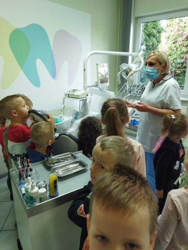 W dniu 14.10 dzieci z grupy Krasnoludków i Muchomorków uczestniczyły w spotkaniu z panią stomatolog. Podczas spotkania dzieci dowiedziały się jak dbać o zęby, zobaczyły w jaki sposób prawidłowo je myć oraz same przećwiczyły tą umiejętność. Nasze dzielne przedszkolaki bez strachu zasiadły przed panią stomatolog, która sprawdziła ząbki Krasnali i Muchomorków. W nagrodę dzieci otrzymały dyplomy ????.