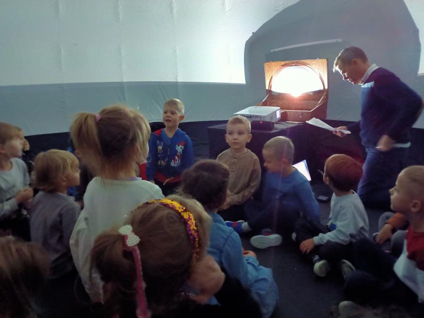 Kto nie lubi chodzić do kina? Przedszkole w piątek 21.10  odwiedziło kino kapsułkowe. Dzieci od najstarszych do najmłodszych, bez strachu i z wielką ciekawością weszły do kapsuły, gdzie oddały się przyjemności oglądania bajek dostosowanych do ich wieku. Oglądanie obrazu wyświetlanego dookoła to wielka frajda i świetna zabawa dla naszych przedszkolaków.  Czekamy na kolejne niezwykłe atrakcje w naszym przedszkolu.