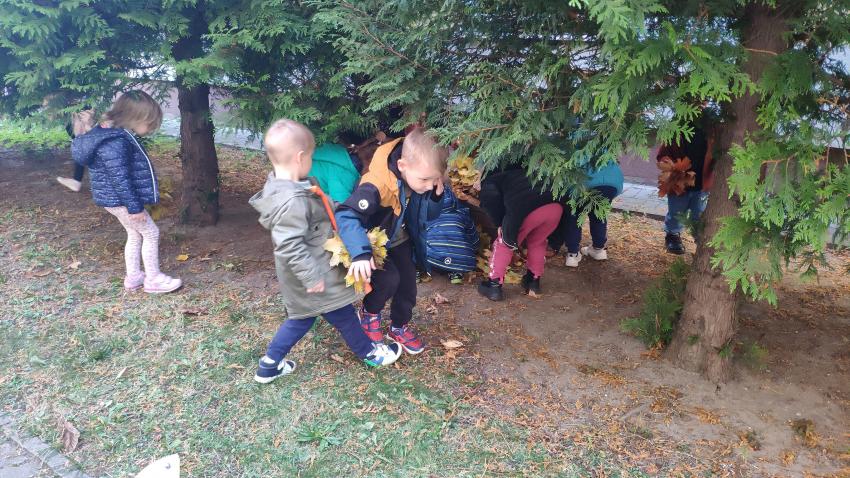 - grupa V wykonała zadanie Lecą na głowę liście kolorowe- zabawy z liśćmi.