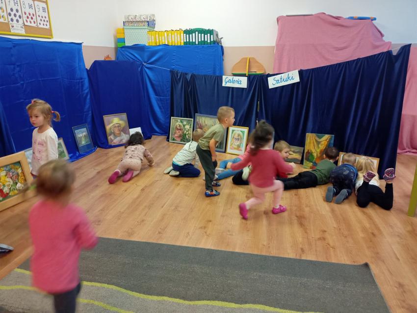 Czy w przedszkolu może powstać Galeria Sztuki? Tak, w naszym przedszkolu wszystko jest możliwe. Takie wydarzenie stanowi nie tylko inspirację do nietuzinkowych zadań plastycznych, lecz jest także idealnym pretekstem do rozmów z dziećmi na różne tematy. Wierzymy, że za pomocą sztuki współczesnej można ułatwić dzieciom zrozumienie skomplikowanej rzeczywistości, która je otacza. Grupa IV Muchomorki wspólnie z panią Basią urządziły w swojej sali Galerię Sztuki. Dzieci z innych grup mogły podziwiać z bliska obrazy, których autorką jest pani Eliza. Poznały techniki ich wykonania i zagadnienia takie jak: portret, pejzaż, martwa natura. Każdy mógł dotknąć dzieł i wybrać swój ulubiony obraz. To była cudowna przygoda do świata prawdziwej sztuki. Spotkanie w przedszkolnej galerii sztuki jest zadaniem z I modułu -  W KRAINIE MUZ Międzynarodowego Projektu Edukacyjnego Z kulturą mi do twarzy 2022/2023 (edycja III).  Zapraszamy do oglądania.