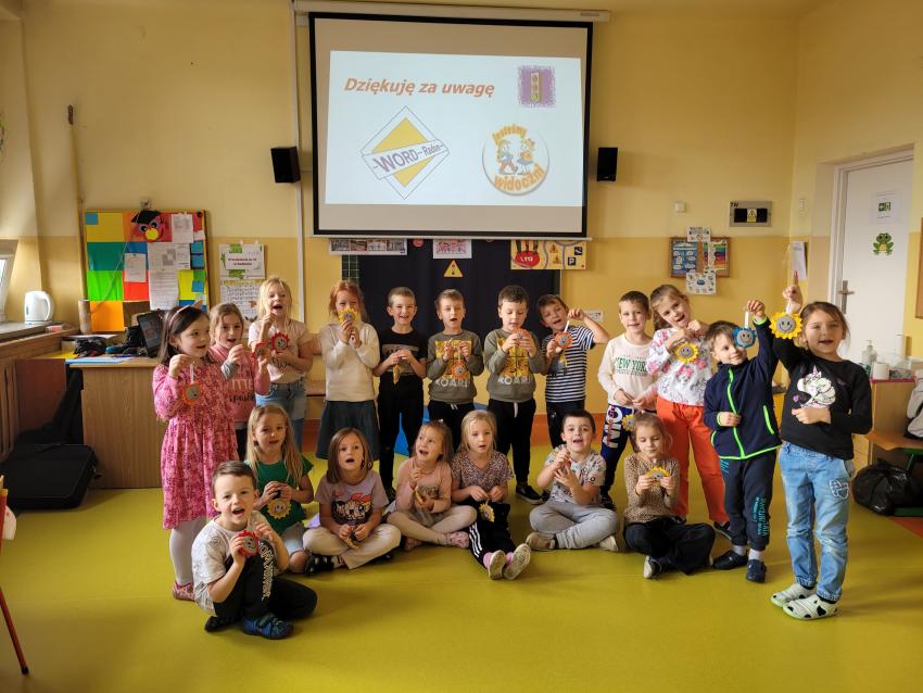 Starszaki wzięły dziś udział w znakomitej prelekcji dotyczącej bezpieczeństwa przygotowanej przez WORD. Wszystkie dzieci bardzo uważnie słuchały, odpowiadały na pytania a na koniec dostały przepiękne prezenty - odblaski. Bardzo dziękujemy WORD Radom.