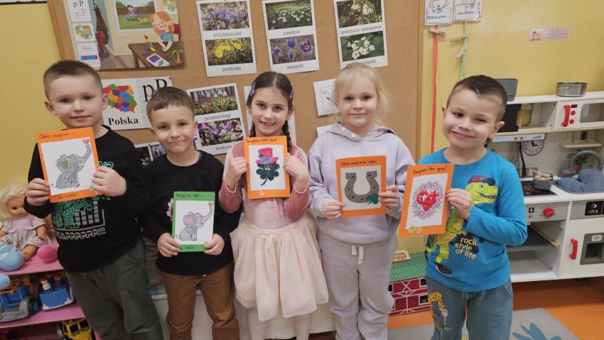 20.03 Krasnoludki obchodziły Międzynarodowy Dzień Szczęścia. Z tej okazji wykonały kartki z życzeniami dla uczniów ze Stowarzyszenie Budujemy Przystań w Radomiu. Krasnoludki również otrzymały piękne prace, za co gorąco dziękujemy naszym serdecznym kolegom i koleżankom ze stowarzyszenia oraz Pani Sandrze zaangażowanej we współpracę między placówkami. Realizacja zadania Ogólnopolskiego Projektu Edukacyjnego "Postaw na wartości"- Krąg V "Postaw na społeczeństwo"- zadanie "Listy ślemy - rówieśników poznajemy?.