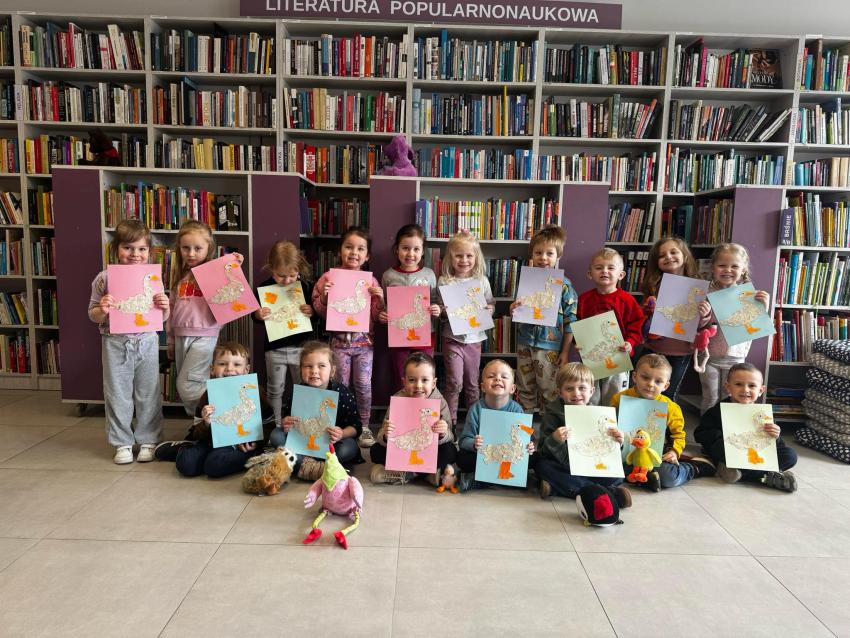 We wtorek 8 kwietnia najmłodsze przedszkolaki odwiedziły Miejską Bibliotekę Publiczna, gdzie odbyły się zajęcia czytelnicze z Teatrzykiem Kamishibai. Jest to papierowy teatr wystawiany w drewnianej skrzynce BUTAI wywodzący się z Japonii. Dzieci obejrzały teatrzyk o ptaszkach, historię opartą na przyjaźni i współpracy. Dzieci mogły także podziwiać wystawę zdjęć różnych gatunków ptaków.