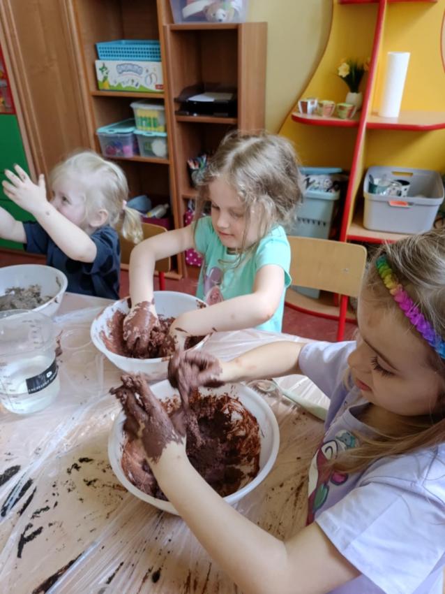 Wiosna, wiosna w pełni w grupie. Dzisiejsze popołudnie upłynęło nam na pożytecznych zajęciach związanych z obchodami Dnia Ziemi. Otóż wykonaliśmy bomby kwietne, które pomogą zapylaczom. Było trochę brudno, ale efekt będzie naprawdę imponujący!