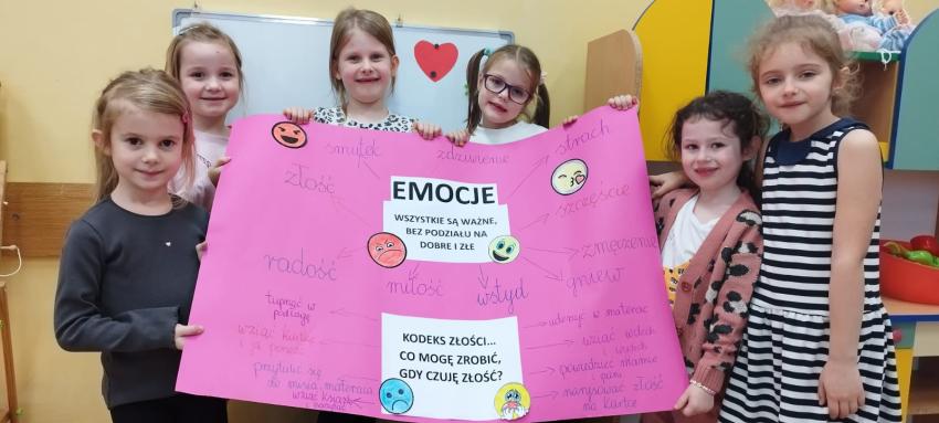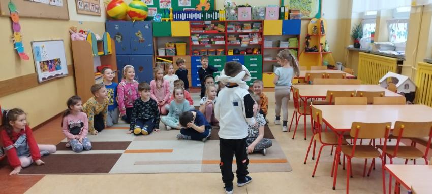 W ramach projektu czytelniczego "Guzik" dzieci z grupy "Tygryski" rozmawiały o emocjach. Starsze koleżanki, które kiedyś chodziły do naszego przedszkola przyszły do nas i przeczytały dzieciom kolejne opowiadanie o misiu "Już Cię nie lubię". Dzieci nauczyły się, jak można radzić sobie z nieprzyjemnymi zachowaniami, które napotkamy w życiu, ze złością oraz dowiedziały się, że każde emocje, są ważne, zarówno te przyjemne, jak i mniej.