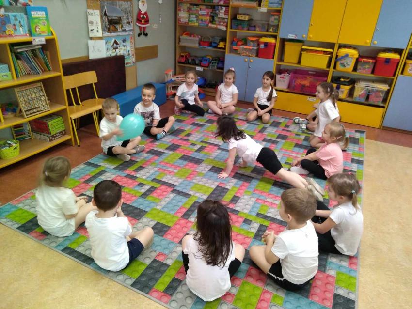 Zabawy z balonami i mix zabaw to kolejne zadania Ogólnopolskiego Projektu Edukacyjnego "W zdrowym ciele, zdrowy duch, wie to każdy mały zuch!" wykonane przez grupę Krasnoludków.