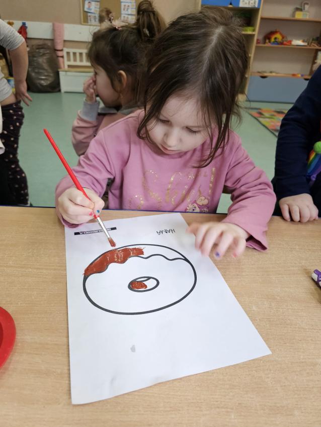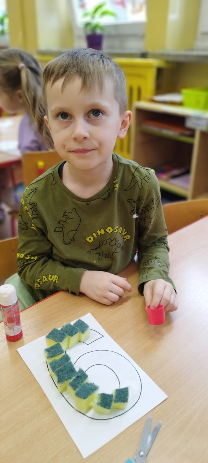 W ramach realizacji projektu edukacyjno-matematycznego Kreatywna matematyka dzieci z grupy Tygryski utrwaliły obraz graficzny cyfry 9, wykonując sensoryczne plansze z cyframi. Ogromną radość sprawiło rysowanie cyfr na mące.