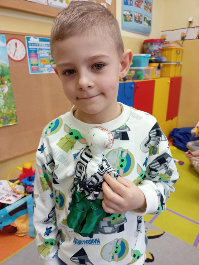 Dzieci samodzielnie wykonywały szmaciane lalki. Wycinały materiał, wykonywały małe ubranka...a niektóre z dzieci samodzielnie szyły. Wszystkim należą się wielkie brawa za twórczą pracę .