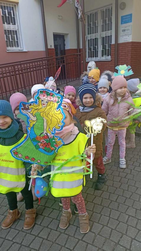 Wszystkie grupy z naszego przedszkola brały dziś udział w wiosennym pochodzie!