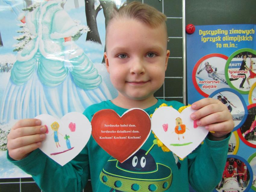 Z okazji Święta Naszych ukochanych Dziadków wykonaliśmy laurki. Życzymy Wam dużo zdrowia, szczęścia i pomyślności. Kochamy Was całym sercem! Żabki z grupy VI.