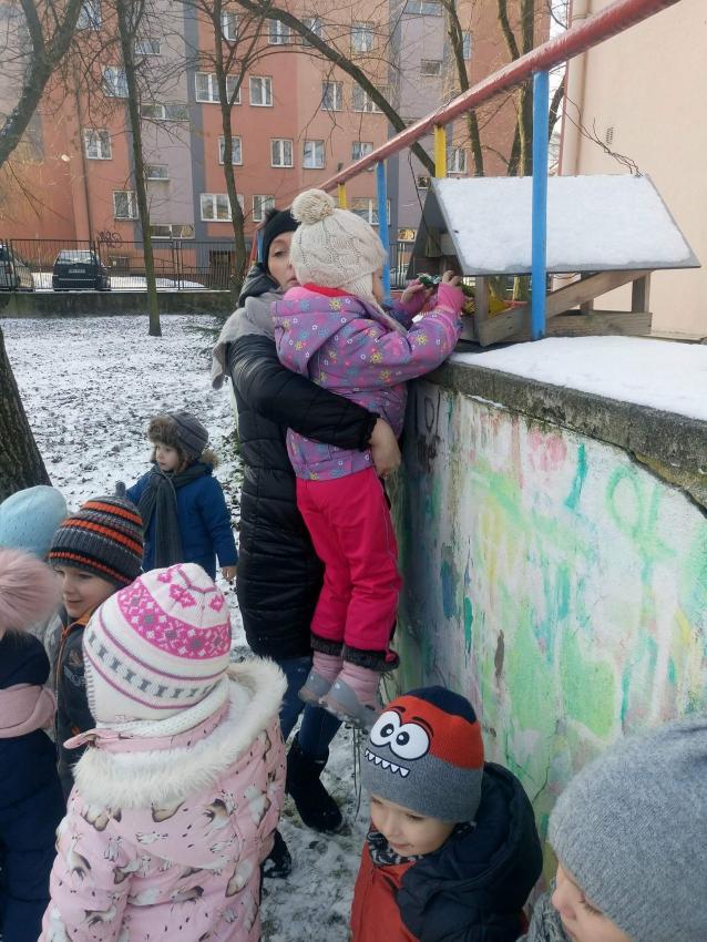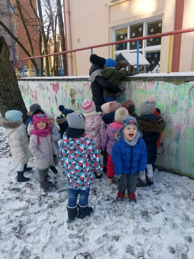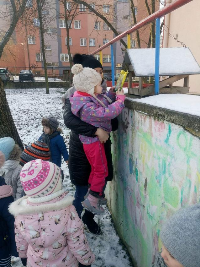 We wtorek 6.02.2018 r. Grupa Motylków korzystając z pięknej zimowej pogody wybrała się na spacer. Szaleństwa nie było końca. Przy okazji odwiedziliśmy karmnik i dosypaliśmy ptakom ziaren.