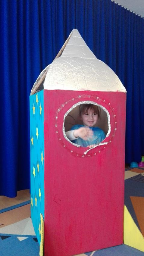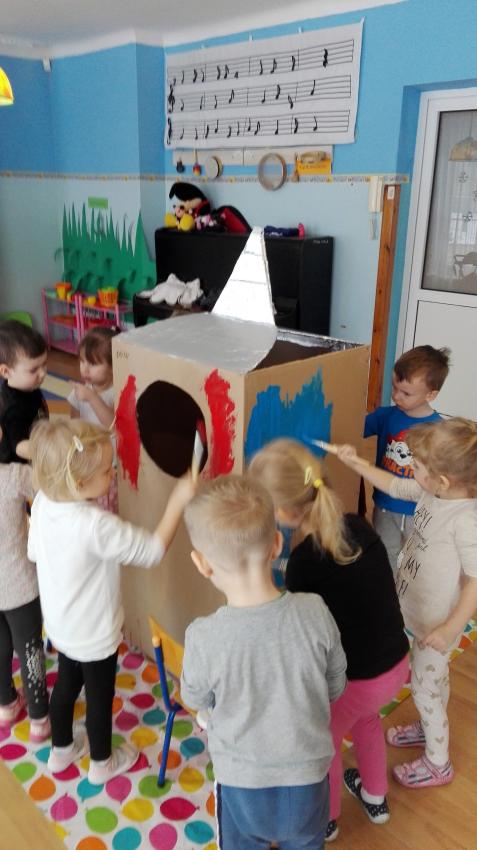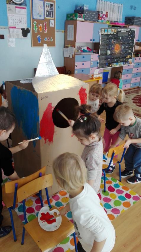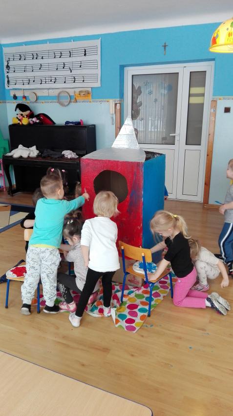 Praca zbiorowa przestrzenna "Rakieta" - gr.I "Myszki"