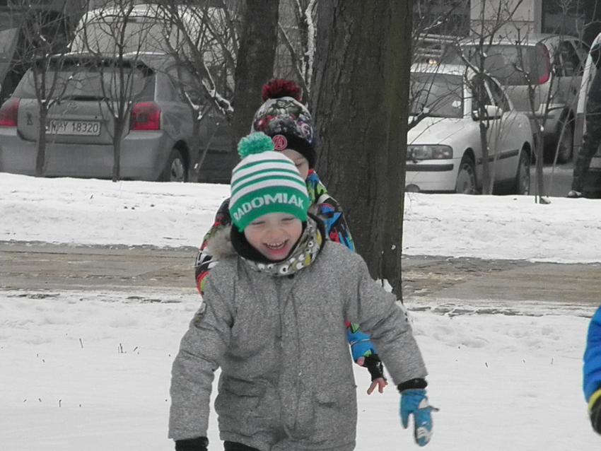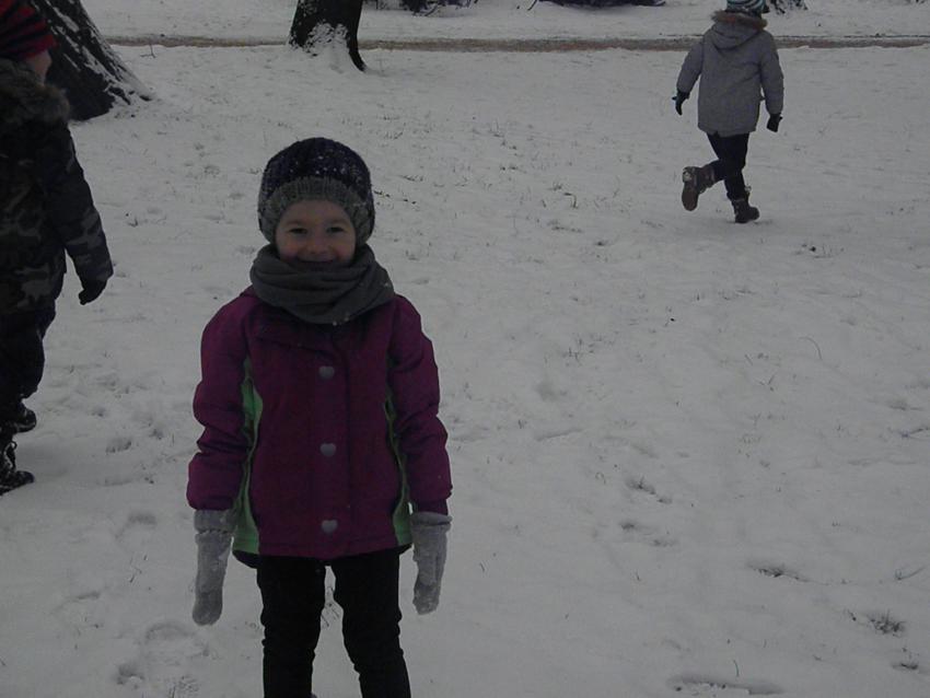 Kochana zima sprawiła nam radość-spadło tyle śnieg, że można ulepić bałwana. Przy takiej pogodzie każdy dzień bez wyjścia na dwór jest dniem straconym.