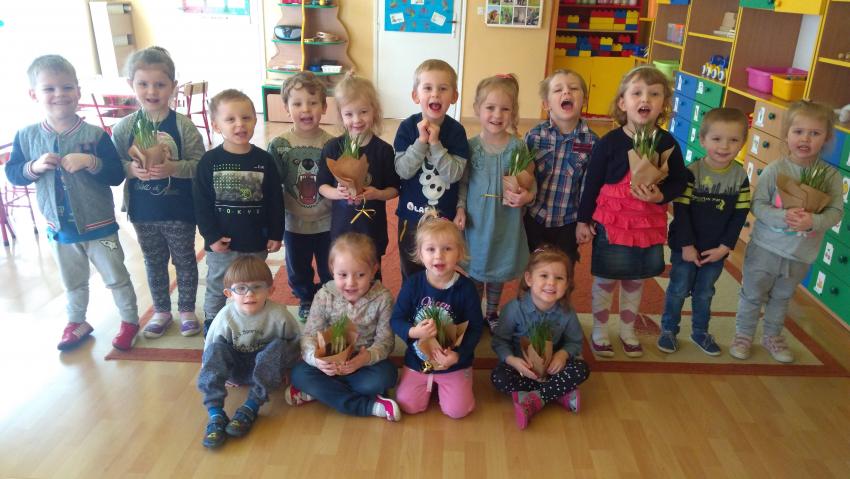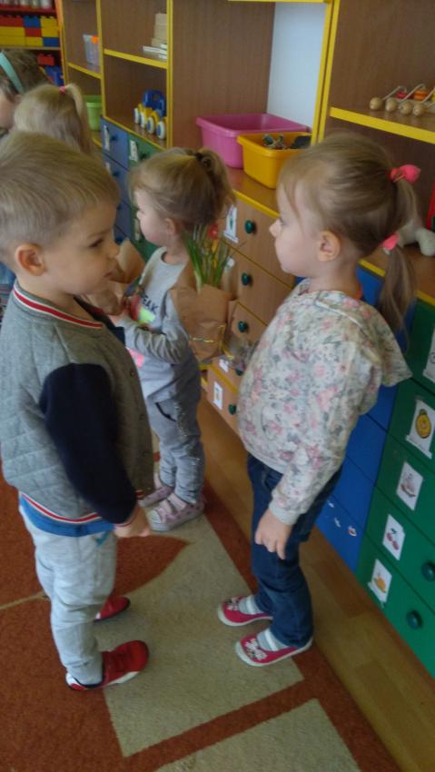 8 Marca w grupie "Motylków" obchodziliśmy Dzień Kobiet. Mali mężczyźni odśpiewali dziewczynkom uroczyste "Sto lat" i wręczyli piękne kwiaty.