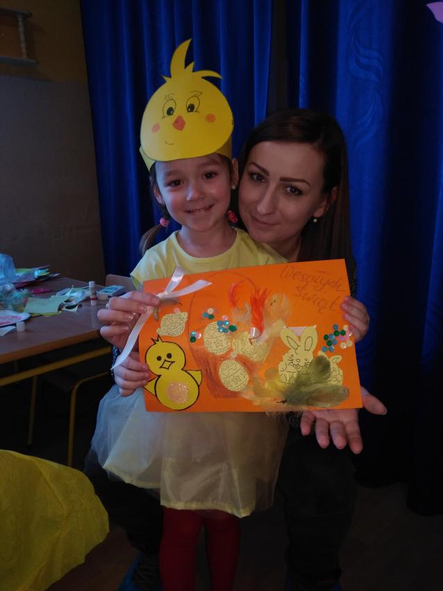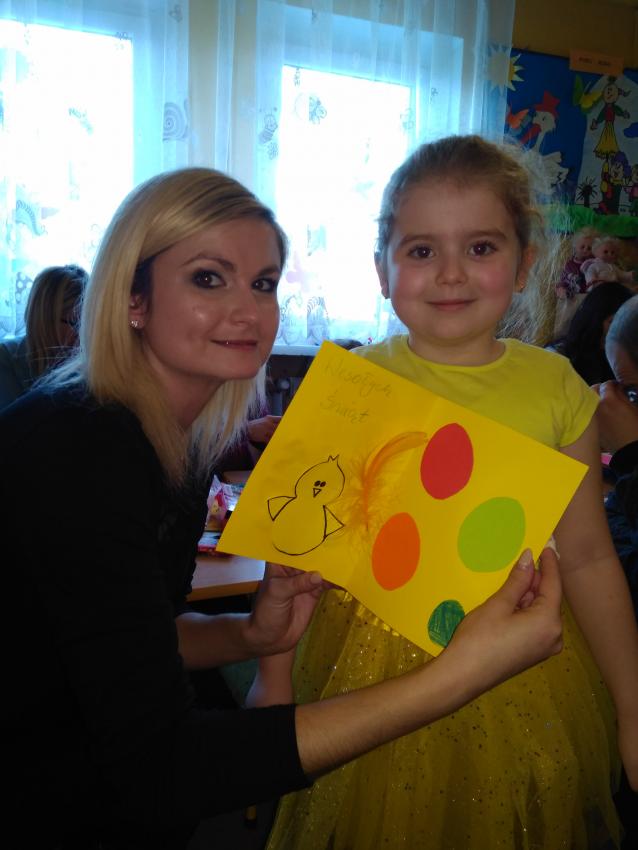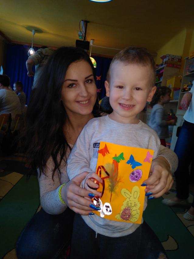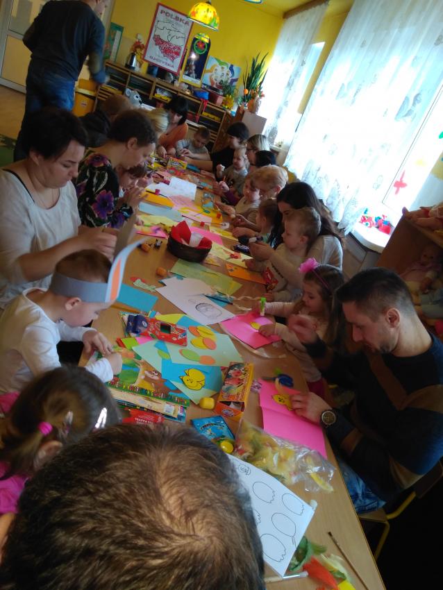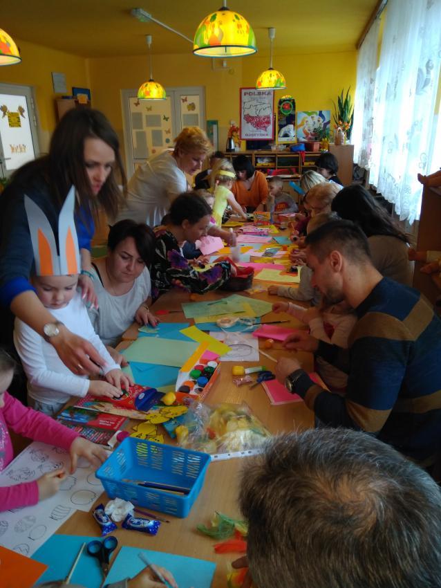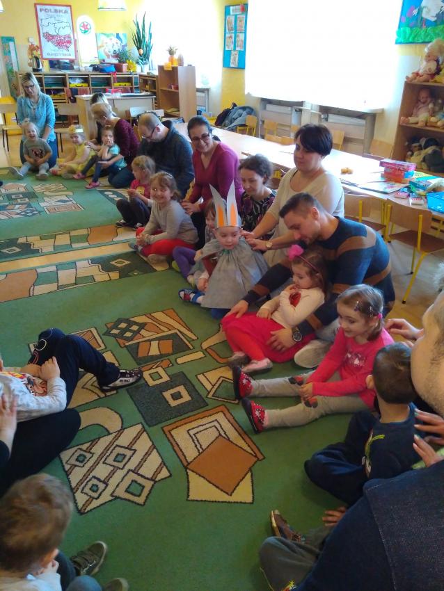 22 marca 2018 r. w grupie „Słoneczek” odbyły się zajęcia z udziałem Rodziców, prowadzone przez wychowawczynie grupy. Tematem zajęć były Święta Wielkanocne i tradycje z nimi związane. Mamusie, Tatusiowie a także Babcie oglądali przygotowane przez dzieci przedstawienie o Słoneczku budzącym wielkanocne zwierzątka, tańczyli i wspólnie śpiewali radosne piosenki, brali udział w ciekawych zabawach prowadzonych przez Świątecznego Zajączka a także doświadczyli przyjemnego, relaksacyjnego masażyku w wykonaniu swoich pociech. Na koniec wszyscy razem, wykorzystując rozmaite materiały, stworzyli niepowtarzalne i oryginalne kartki świąteczne.