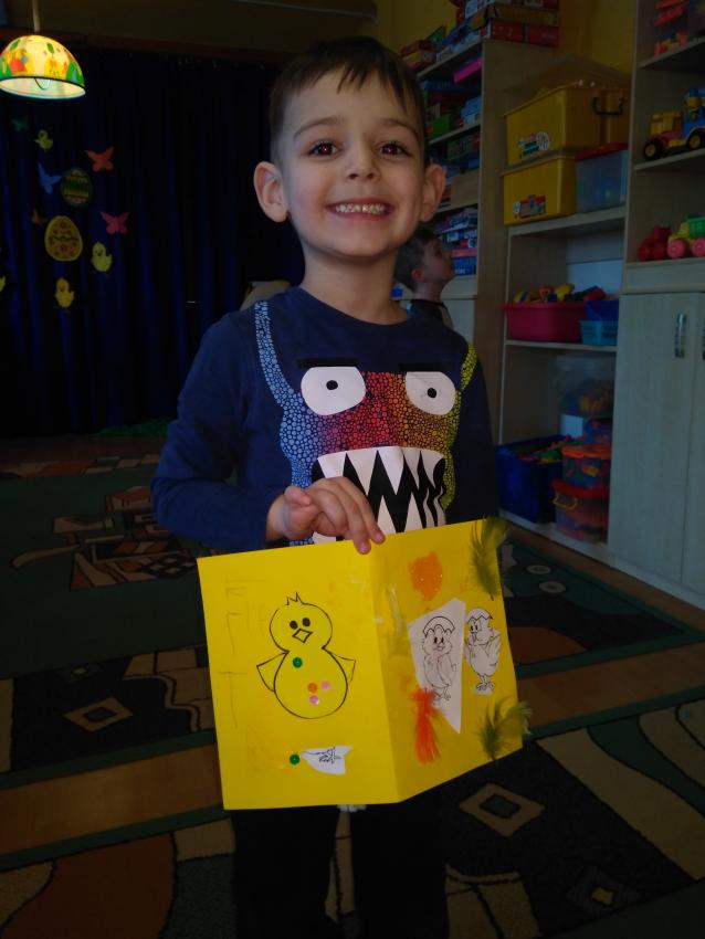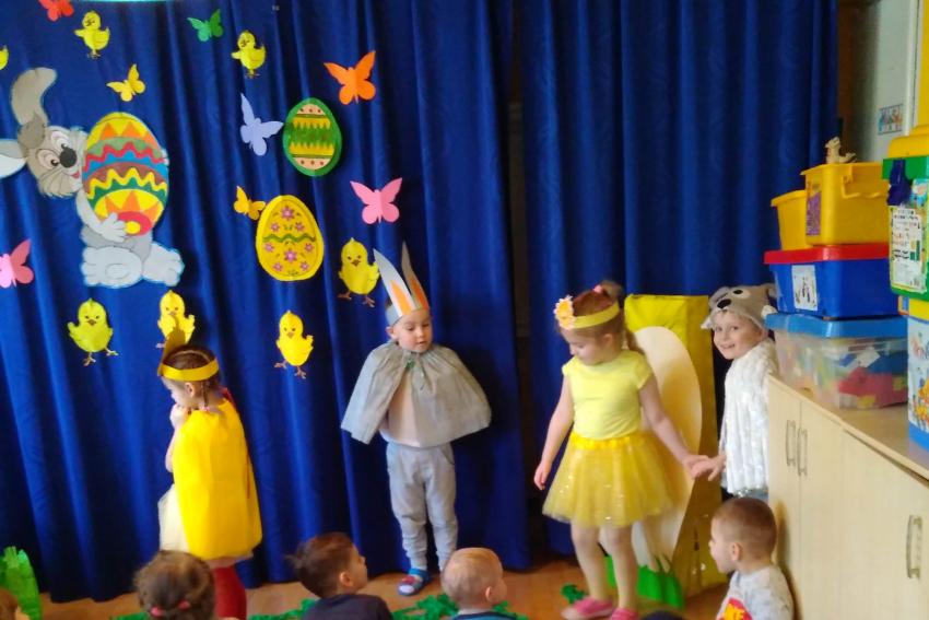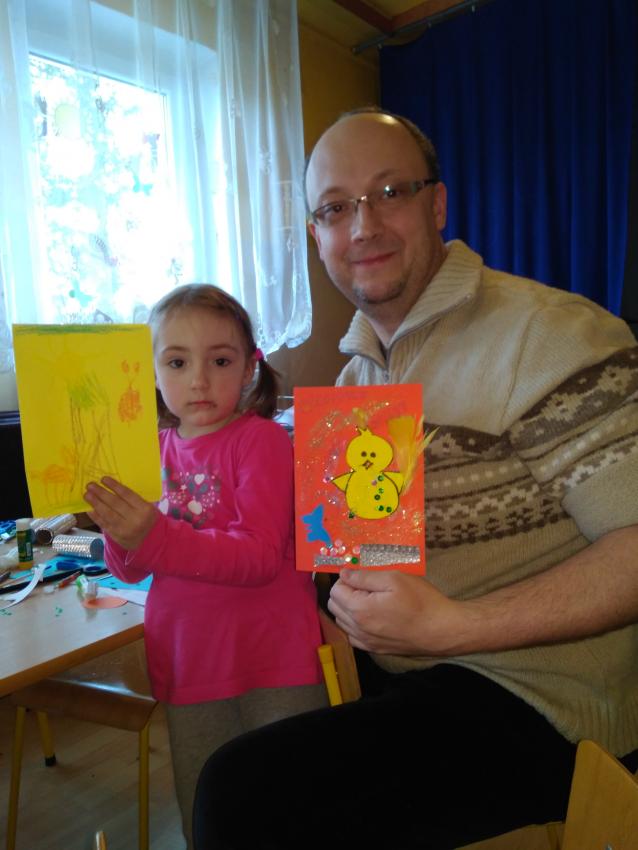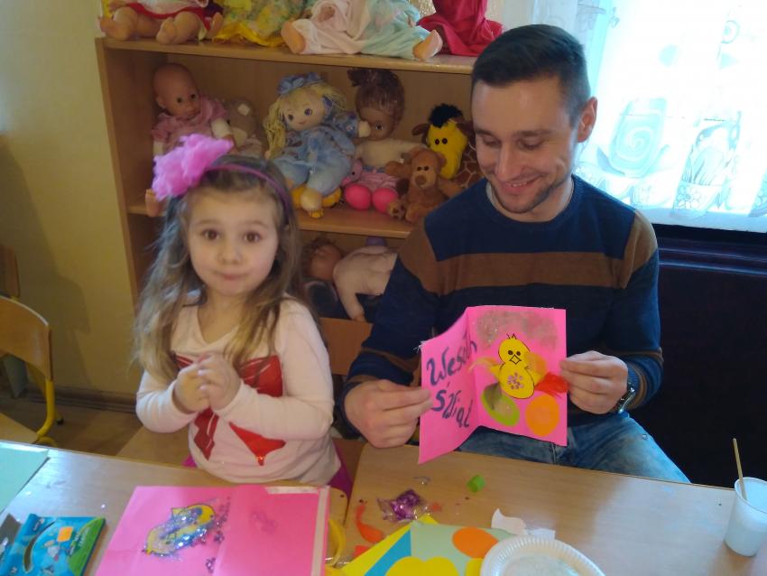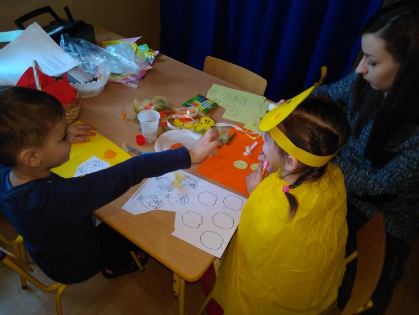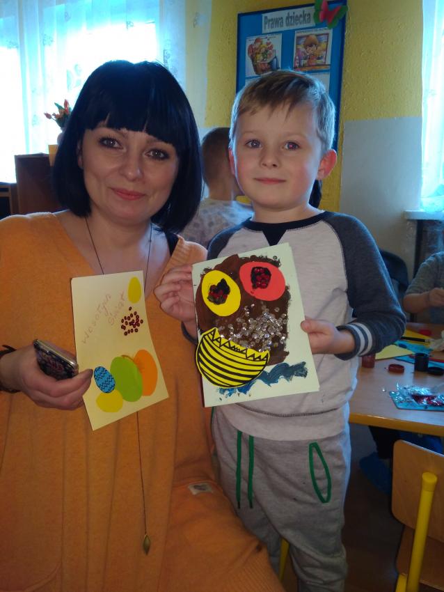 22 marca 2018 r. w grupie „Słoneczek” odbyły się zajęcia z udziałem Rodziców, prowadzone przez wychowawczynie grupy. Tematem zajęć były Święta Wielkanocne i tradycje z nimi związane. Mamusie, Tatusiowie a także Babcie oglądali przygotowane przez dzieci przedstawienie o Słoneczku budzącym wielkanocne zwierzątka, tańczyli i wspólnie śpiewali radosne piosenki, brali udział w ciekawych zabawach prowadzonych przez Świątecznego Zajączka a także doświadczyli przyjemnego, relaksacyjnego masażyku w wykonaniu swoich pociech. Na koniec wszyscy razem, wykorzystując rozmaite materiały, stworzyli niepowtarzalne i oryginalne kartki świąteczne.
