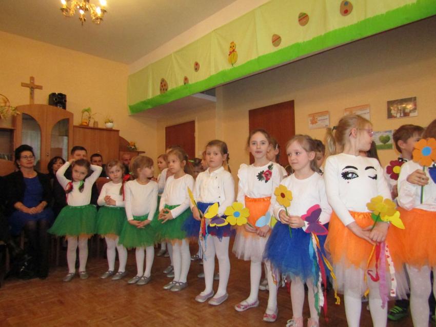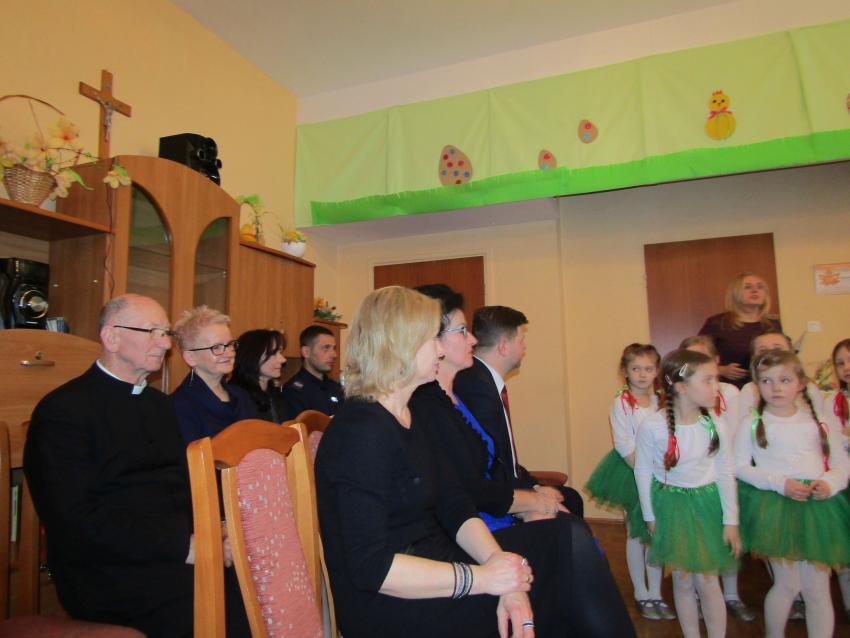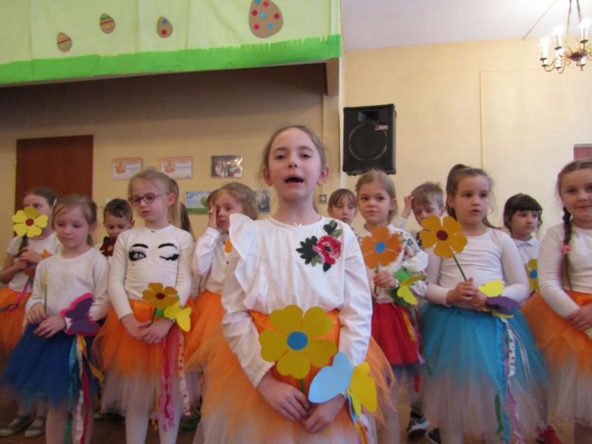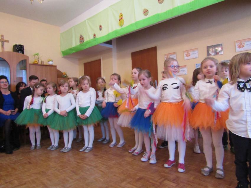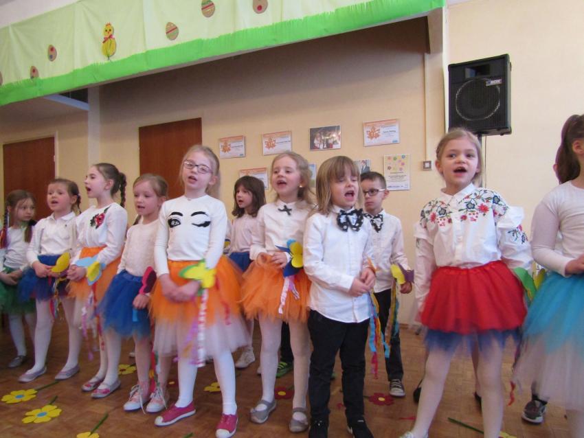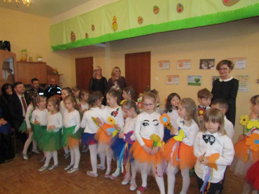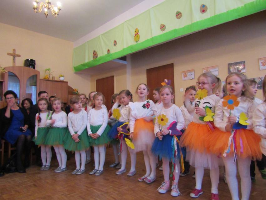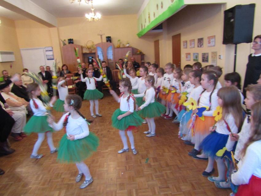 W dniu 28 marca 2018 roku dzieci z grupy IX i VI wystąpiły dla pensjonariuszy Domu Opieki Społecznej „Weterana Walki i Pracy” w Radomiu (ul. Wyścigowa 16) podczas uroczystego spotkania z okazji zbliżających się Świąt Wielkanocnych. W spotkaniu tym uczestniczyli m.in. przedstawiciele władz Miasta – Pan Jerzy Zawodnik – Zastępca Prezydenta Miasta Radomia oraz Pani Magdalena Lasota – Radna Rady Miejskiej w Radomiu, ksiądz z Parafii Świętego Brata Alberta oraz przedstawiciele Komendy Miejskiej Policji w Radomiu. Dzieci przedstawiły zwyczaje i tradycje związane z Wielkanocą, recytując wiersze, śpiewając piosenki i tańcząc. Wszyscy oglądający występ byli zachwyceni pięknymi strojami, w które dzieci były ubrane i wysokim poziomem występu. Występ naszych dzieci przyniósł pensjonariuszom i zaproszonym gościom wiele niezapomnianych chwil wzruszeń, wywołał uśmiechy na ich twarzach.