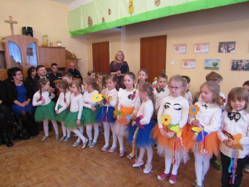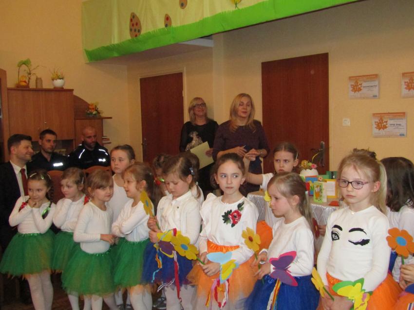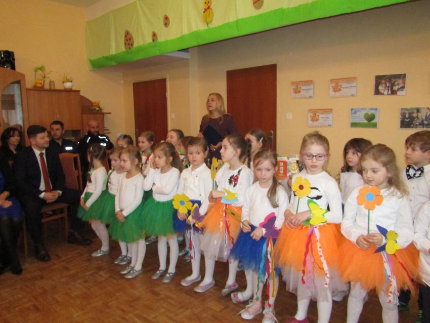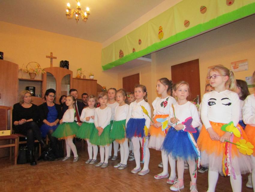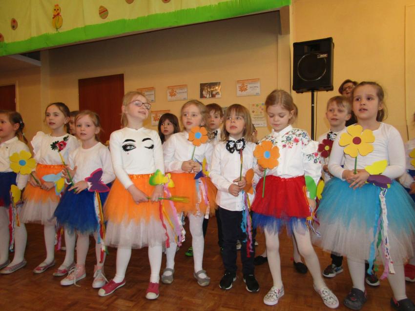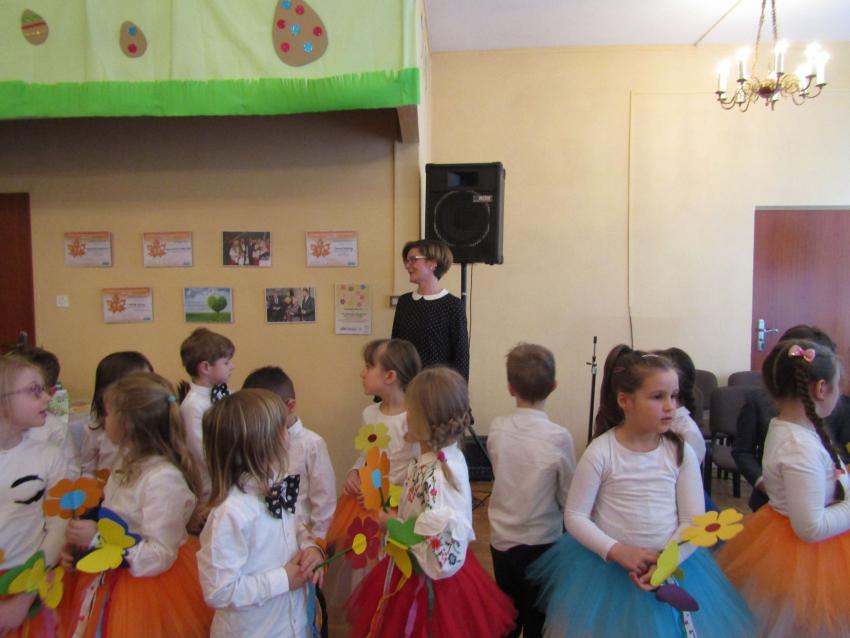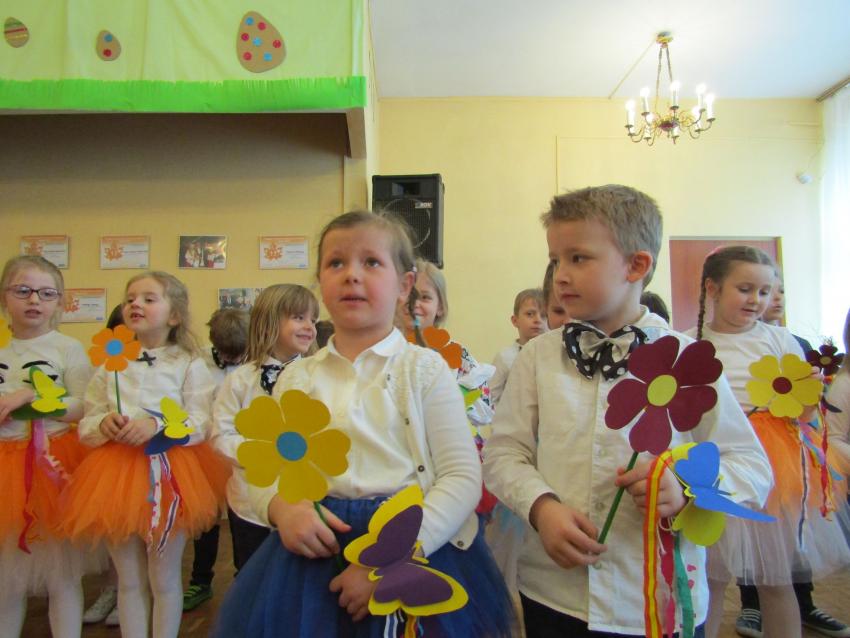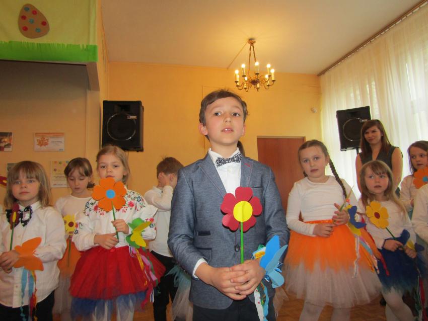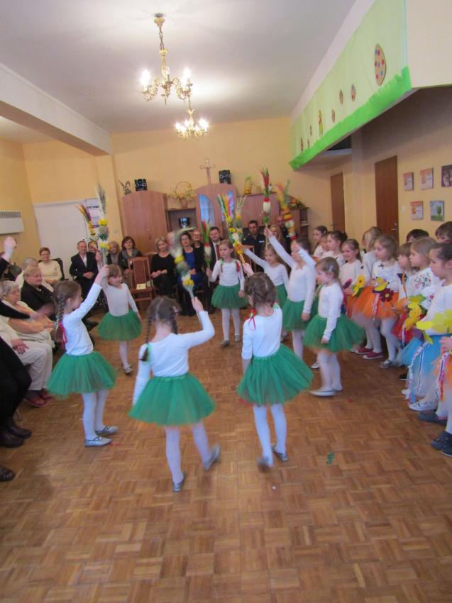 W dniu 28 marca 2018 roku dzieci z grupy IX i VI wystąpiły dla pensjonariuszy Domu Opieki Społecznej „Weterana Walki i Pracy” w Radomiu (ul. Wyścigowa 16) podczas uroczystego spotkania z okazji zbliżających się Świąt Wielkanocnych. W spotkaniu tym uczestniczyli m.in. przedstawiciele władz Miasta – Pan Jerzy Zawodnik – Zastępca Prezydenta Miasta Radomia oraz Pani Magdalena Lasota – Radna Rady Miejskiej w Radomiu, ksiądz z Parafii Świętego Brata Alberta oraz przedstawiciele Komendy Miejskiej Policji w Radomiu. Dzieci przedstawiły zwyczaje i tradycje związane z Wielkanocą, recytując wiersze, śpiewając piosenki i tańcząc. Wszyscy oglądający występ byli zachwyceni pięknymi strojami, w które dzieci były ubrane i wysokim poziomem występu. Występ naszych dzieci przyniósł pensjonariuszom i zaproszonym gościom wiele niezapomnianych chwil wzruszeń, wywołał uśmiechy na ich twarzach.