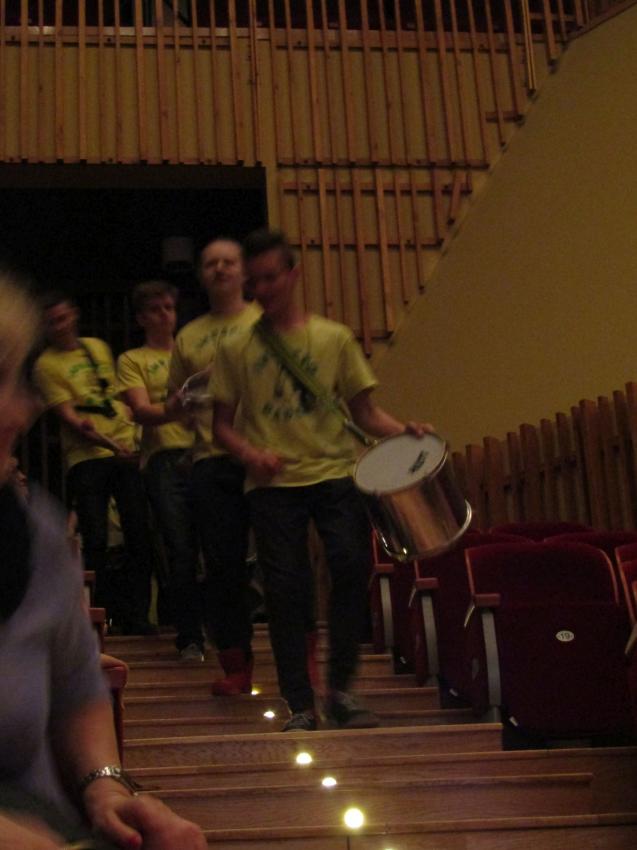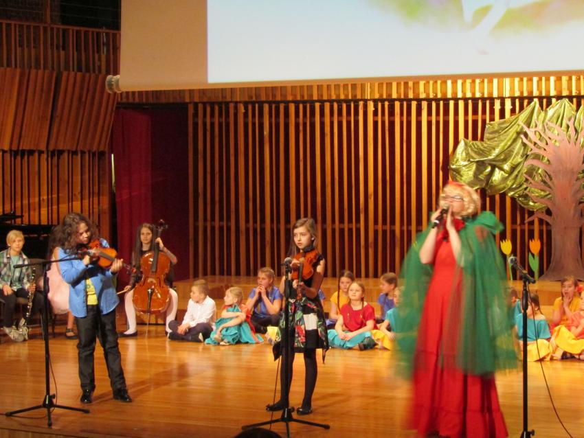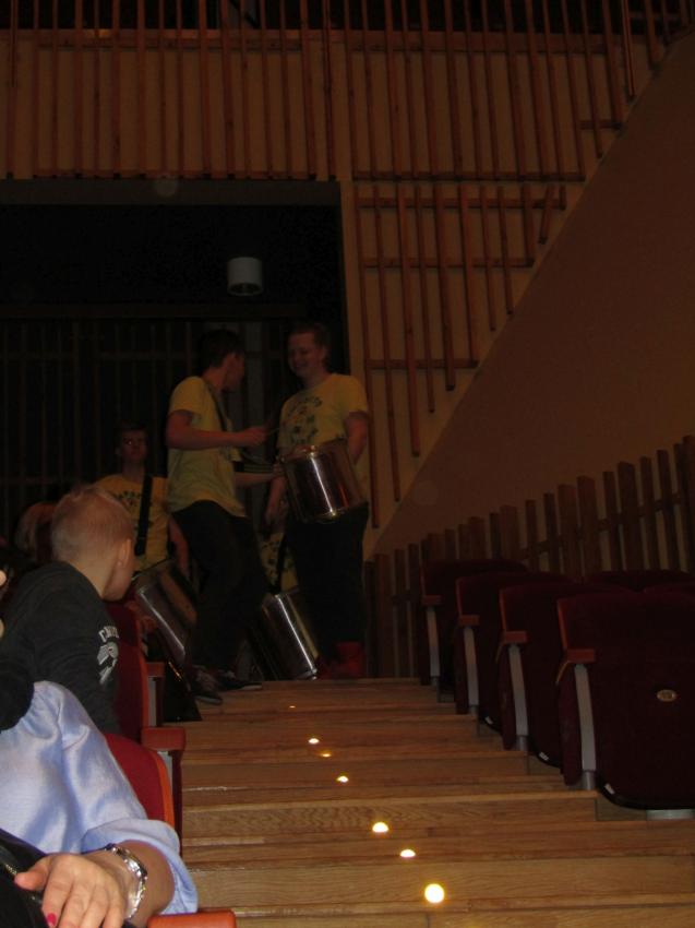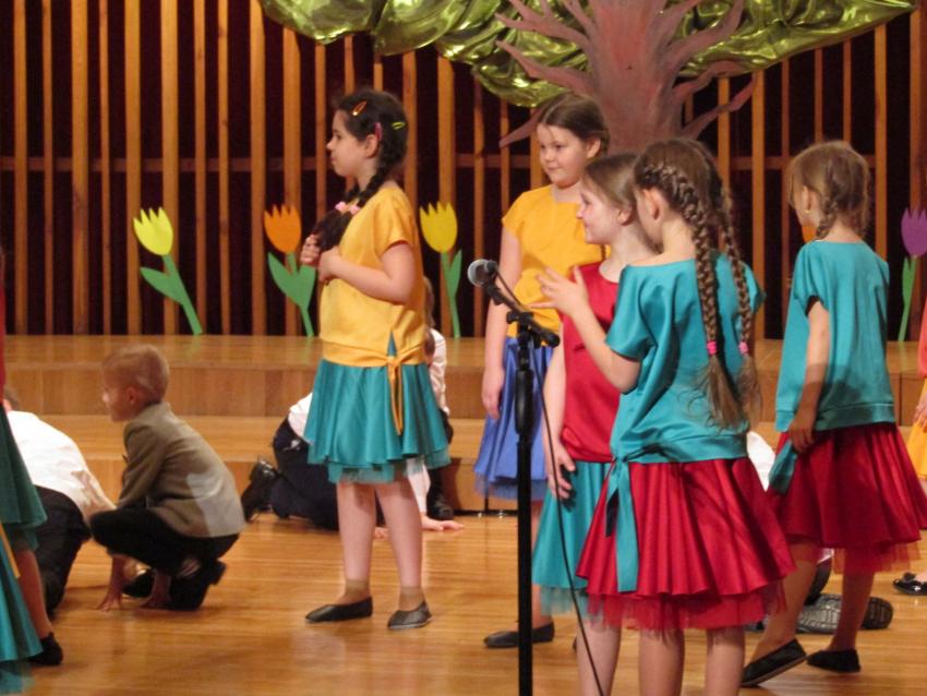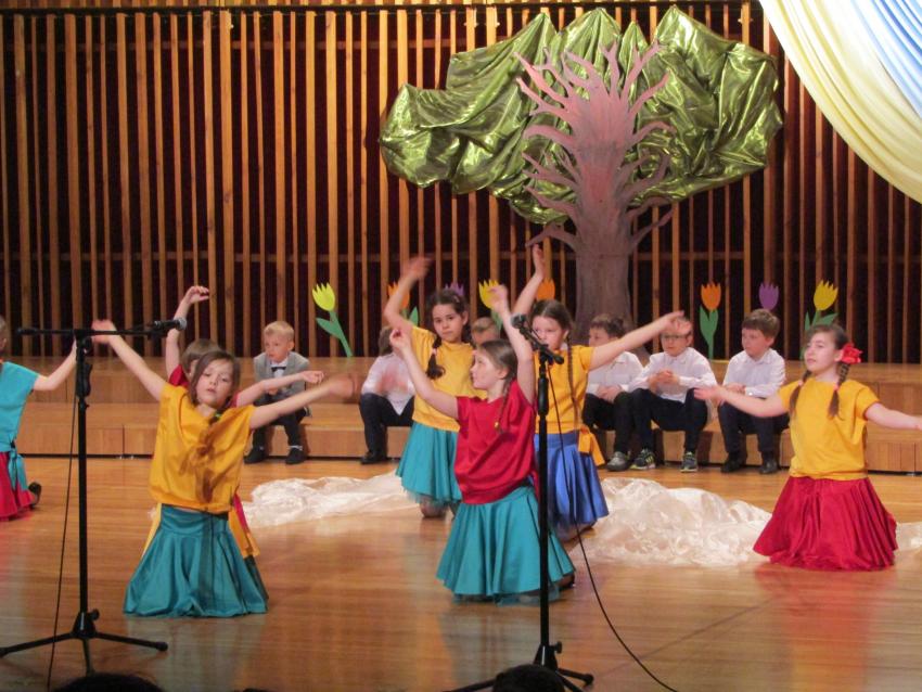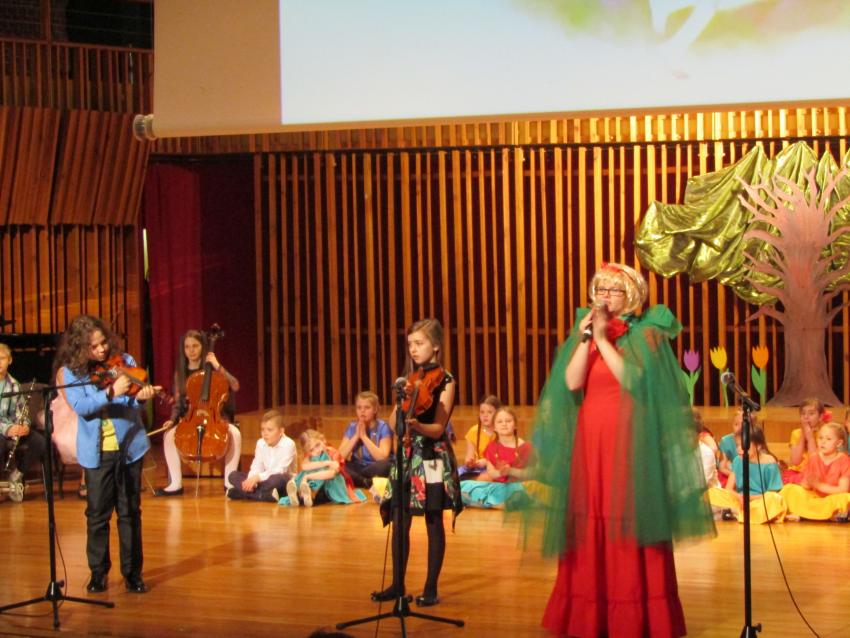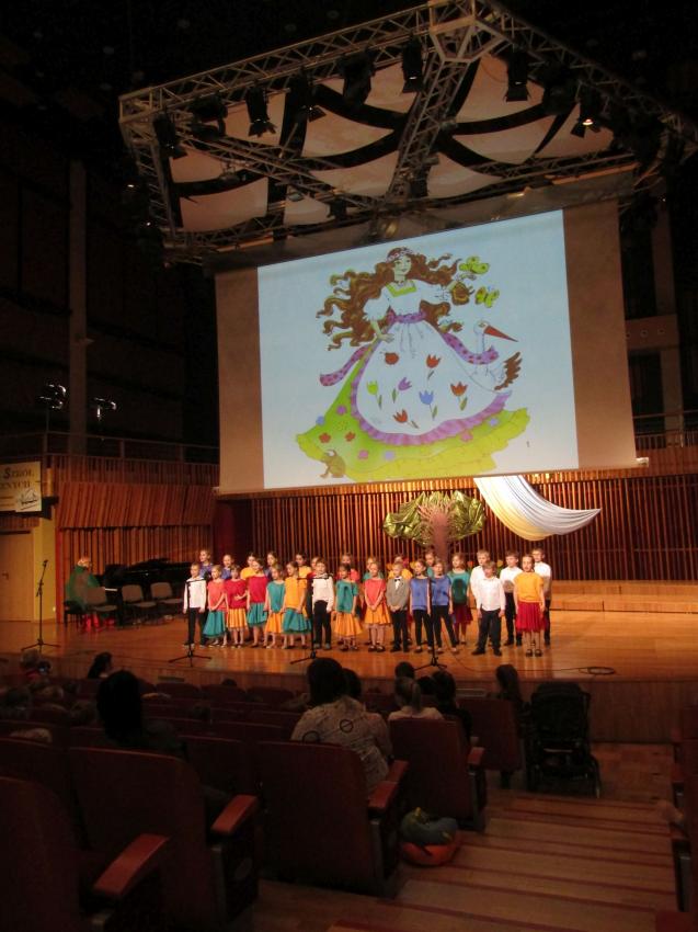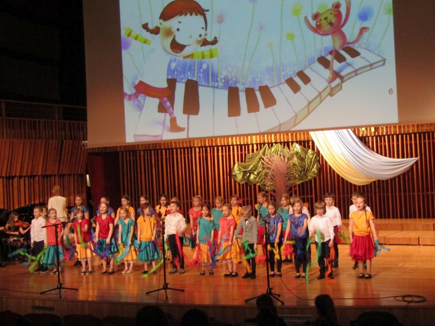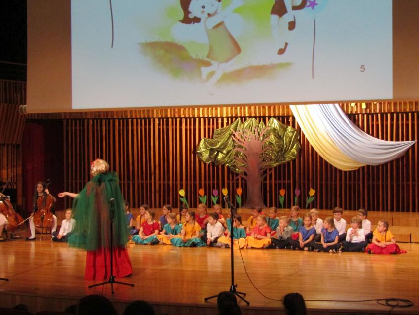 We wtorek w dniu 27 marca dzieci ze starszych grup uczestniczyły w koncercie muzycznym, przygotowanym przez uczniów i nauczycieli z Zespołu Szkół Muzycznych w Radomiu. Był to wspaniały popis tańca, śpiewu i gry na instrumentach w wykonaniu tak młodych artystów. Poprzez muzykę i ruch , opowiedzieli nam oni o kolorowej, pachnącej wiośnie, która przyniosła ze sobą spiew ptaków, kolorowe kwiaty i wiosenny deszczyk. Bardzo podobał nam się ten występ. Największą niespodzianką dla dzieci był popis gry na bębnach w wykonaniu sekcji dętej. Młodzi muzycy rozgrzali swoją grą zgromadzoną na sali publiczność. Nasze dzieci bardzo żywo i spontanicznie reagowały na rytmy wygrywane na bębnach. Podskoki, głośne oklaski i uśmiech na twarzy świadczyły o dobrej zabawie podczas koncertu. Czekamy z niecierpliwością na kolejny...