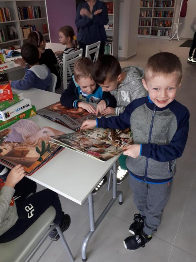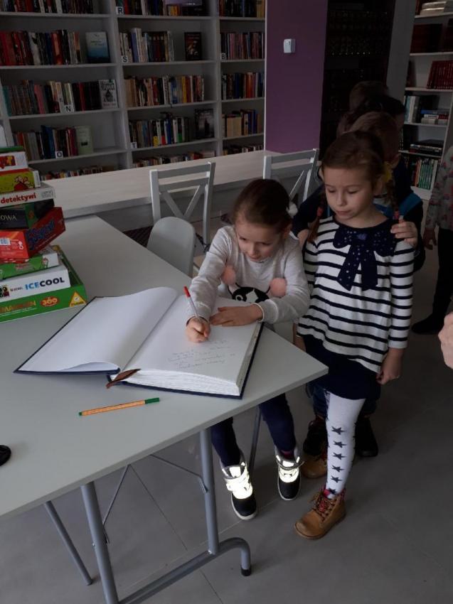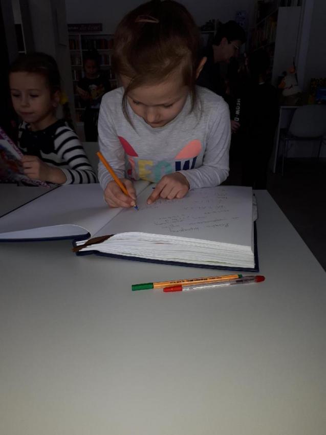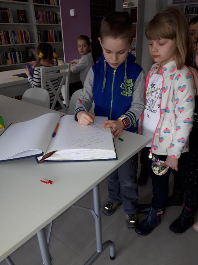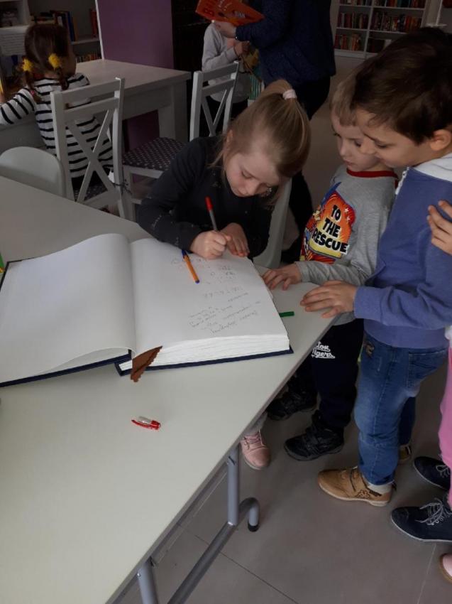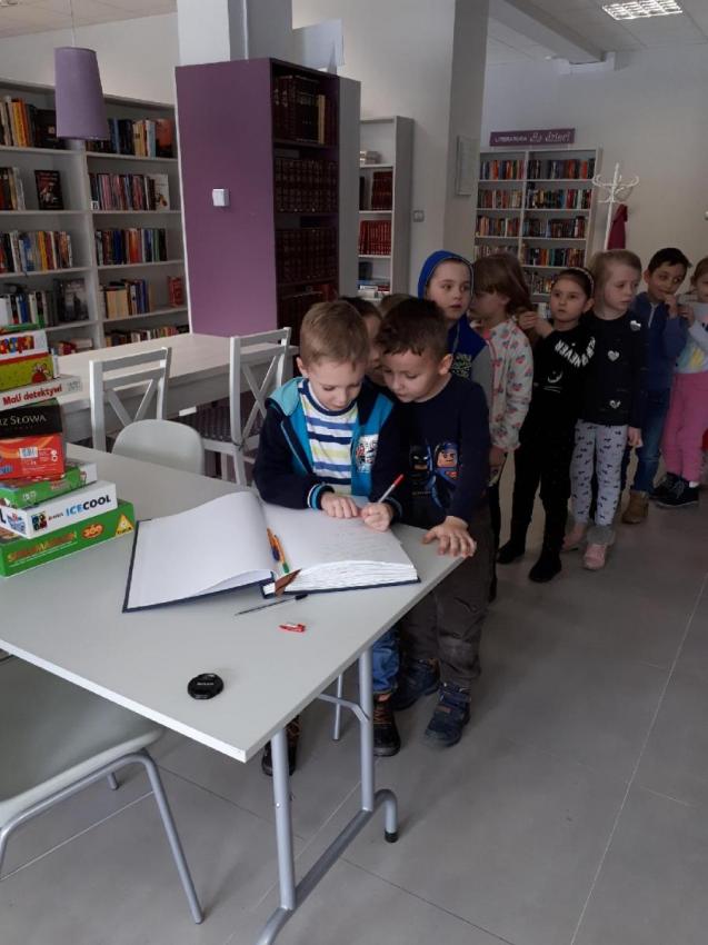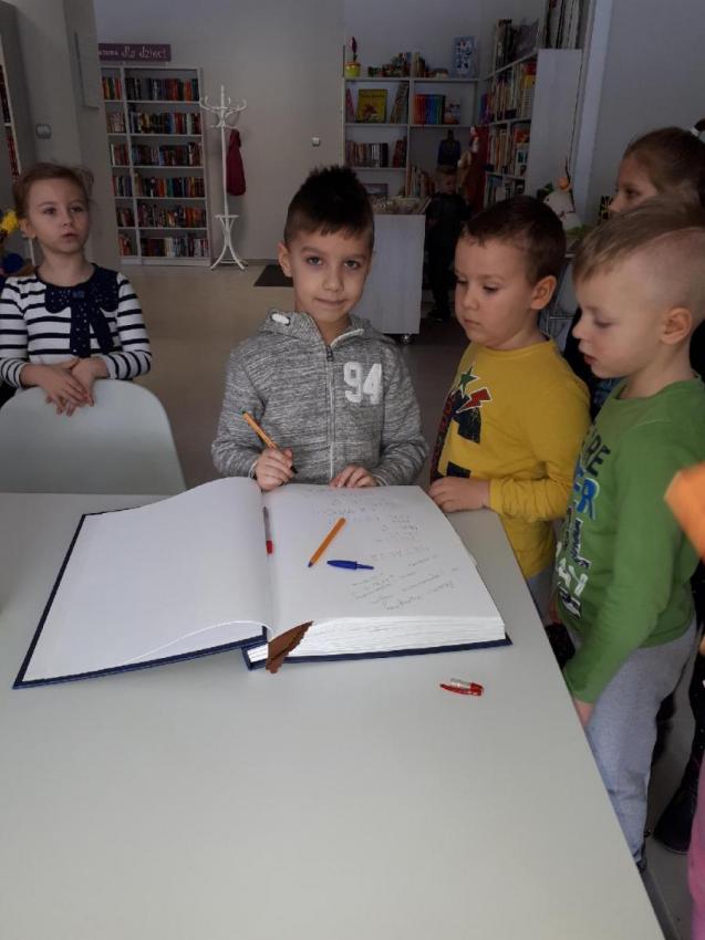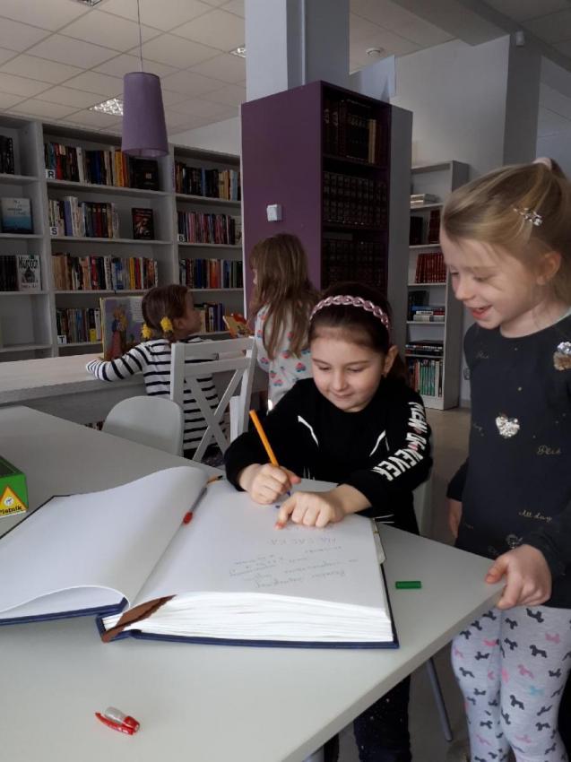 W dniu 23.03.2018 r dzieci udały się na wycieczkę do biblioteki mieszczącej się przy ulicy Zientarskiego 1A. Wszyscy spotkaliśmy się z ciepłym i życzliwym powitaniem. Przedszkolaki z wielką radością zapoznały się z magicznym dla nich miejscem. Pani z biblioteki wyjaśniła w jaki sposób mogą dzieci wypożyczać książki, i w jaki sposób możemy odnaleźć je na półce. Dla zdecydowanej większości była to pierwsza wizyta wśród wielkiego księgozbioru. Wizyta przedszkolaków w bibliotece urozmaicona była dodatkowo czytanymi przez panie fragmentami książek. Dzieci wpisały się do księgi pamiątkowej biblioteki. Na zakończenie dzieci zostały obdarowane licznymi prezentami i złożyły obietnicę, że niedługo wrócą do biblioteki tzw. krainy książek .