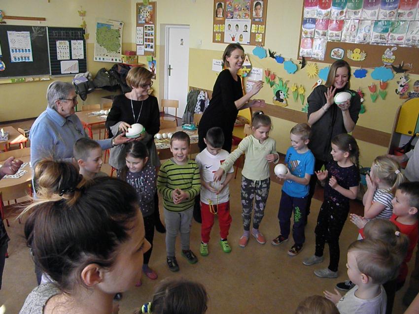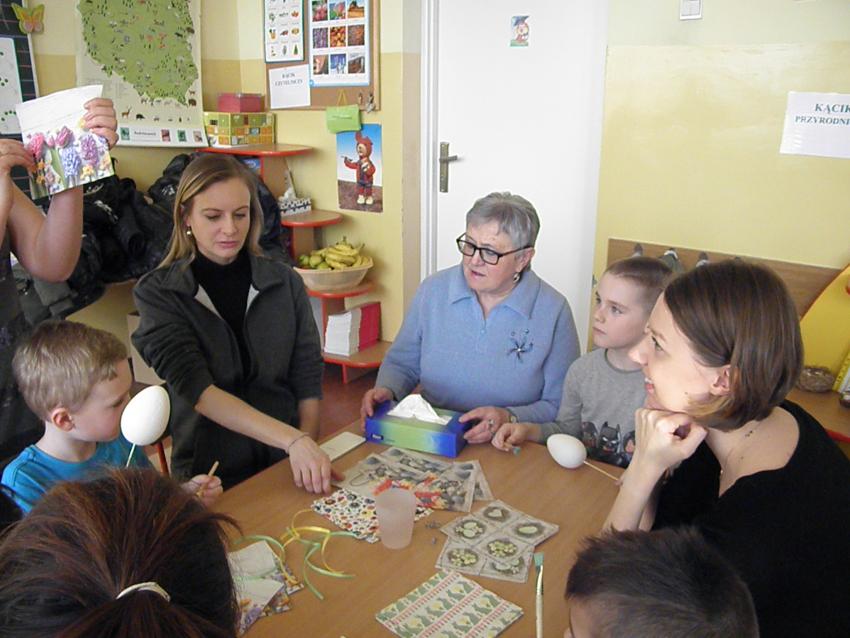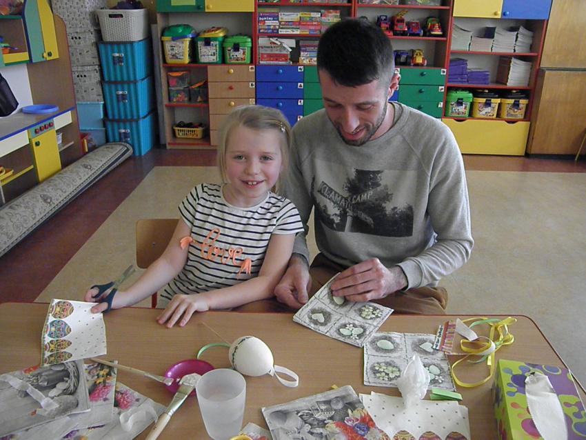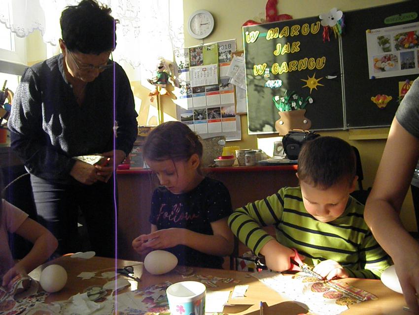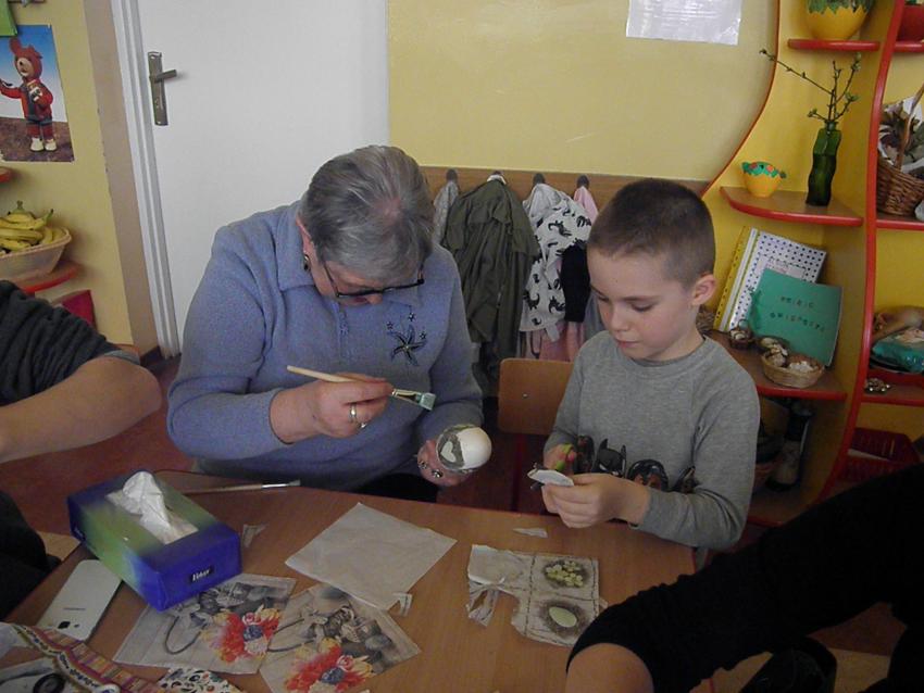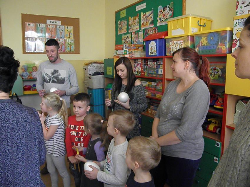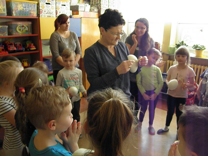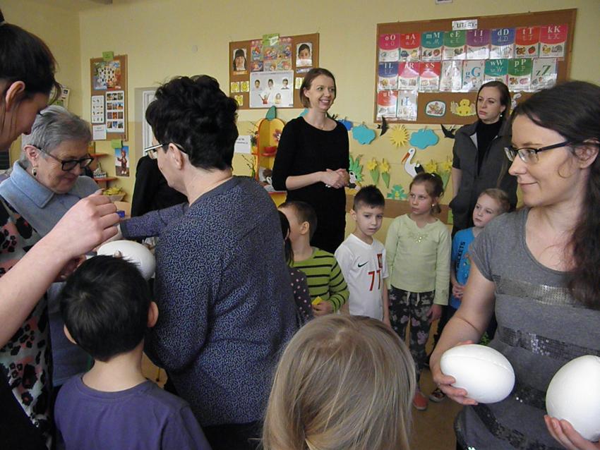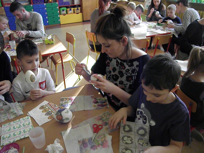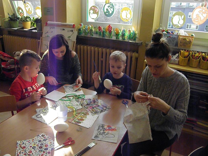 W dniu 22.03.2018 r. o godz. 14:30 rodzice dzieci z grupy VIII wzięli udział w warsztatach „Wielkanocne spotkanie - jajek malowanie”. Dzieci śpiewały piosenki o tematyce wiosennej, wielkanocnej, wypowiadały się na temat tradycji wielkanocnych. Rodzice, babcie rozwiązywali wspólnie zagadki o tematyce wielkanocnej, uczestniczyli we wspólnie zabawie –masażyk relaksacyjny.