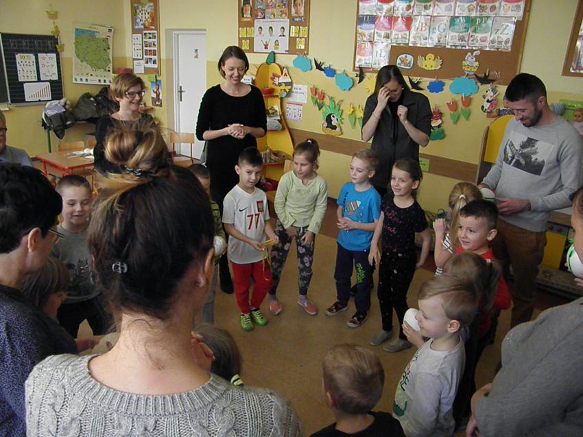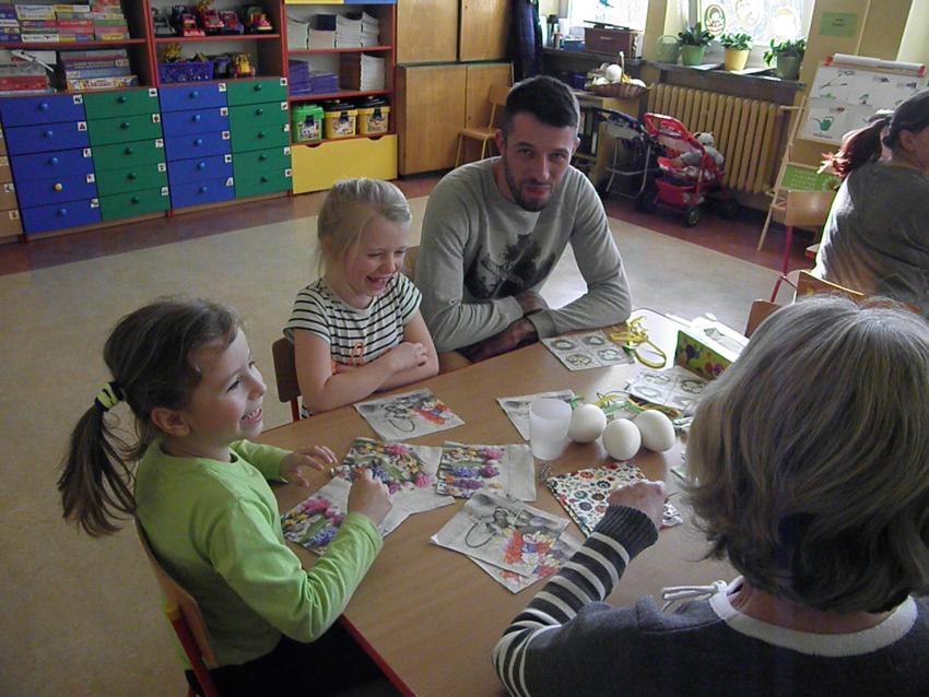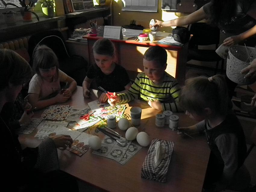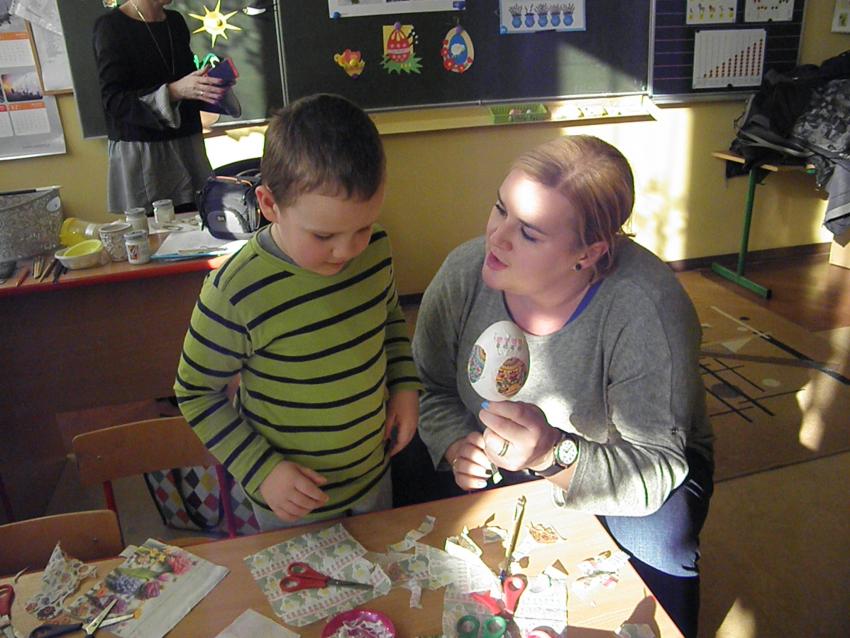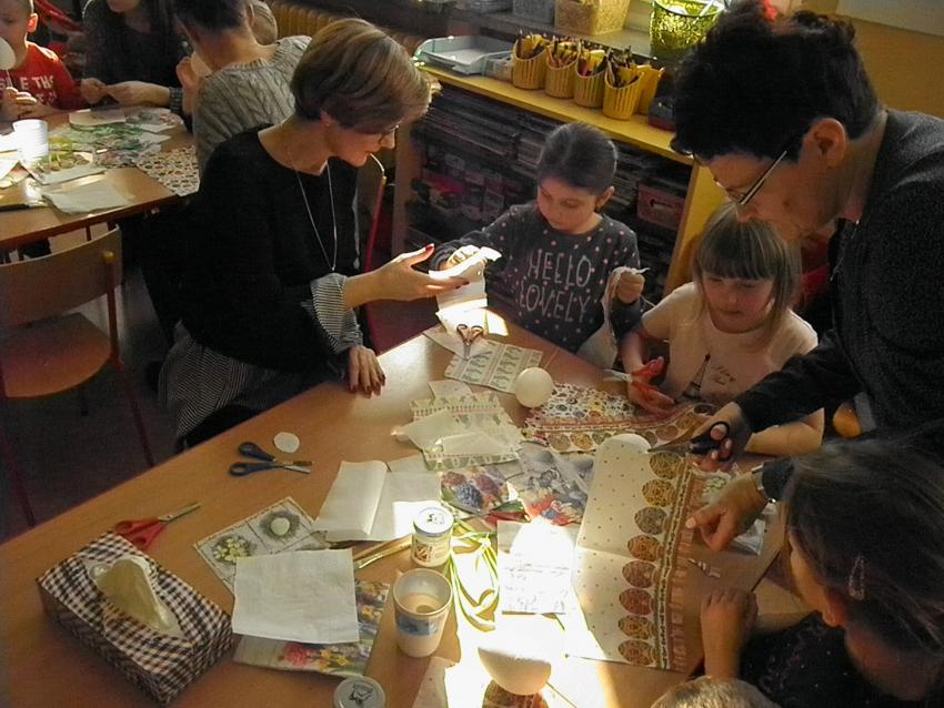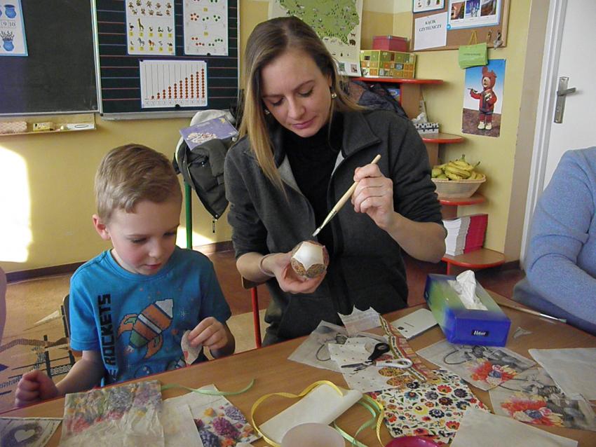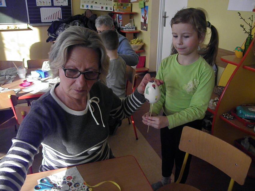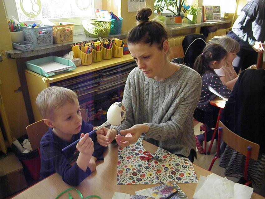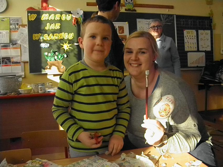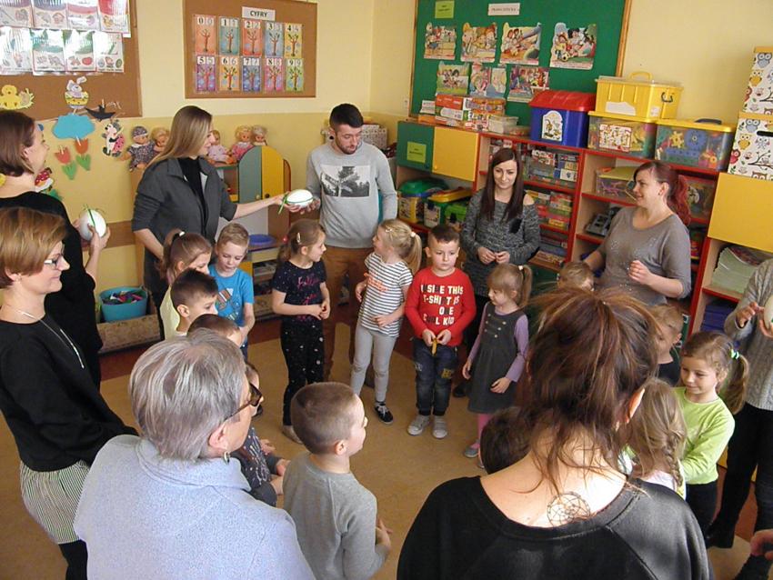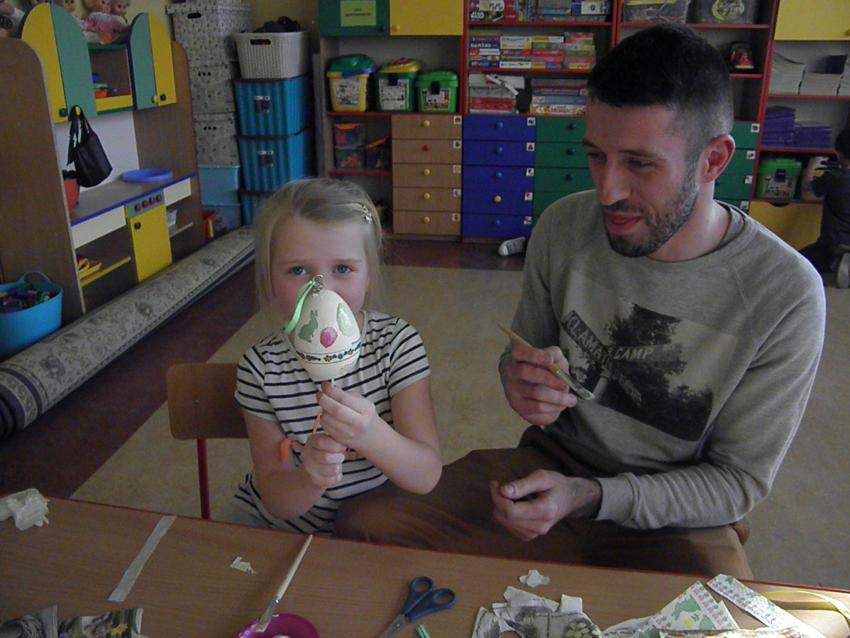 W dniu 22.03.2018 r. o godz. 14:30 rodzice dzieci z grupy VIII wzięli udział w warsztatach „Wielkanocne spotkanie - jajek malowanie”. Dzieci śpiewały piosenki o tematyce wiosennej, wielkanocnej, wypowiadały się na temat tradycji wielkanocnych. Rodzice, babcie rozwiązywali wspólnie zagadki o tematyce wielkanocnej, uczestniczyli we wspólnie zabawie –masażyk relaksacyjny.