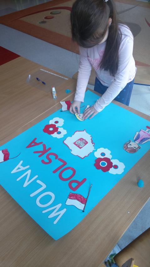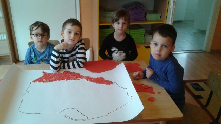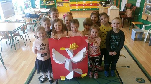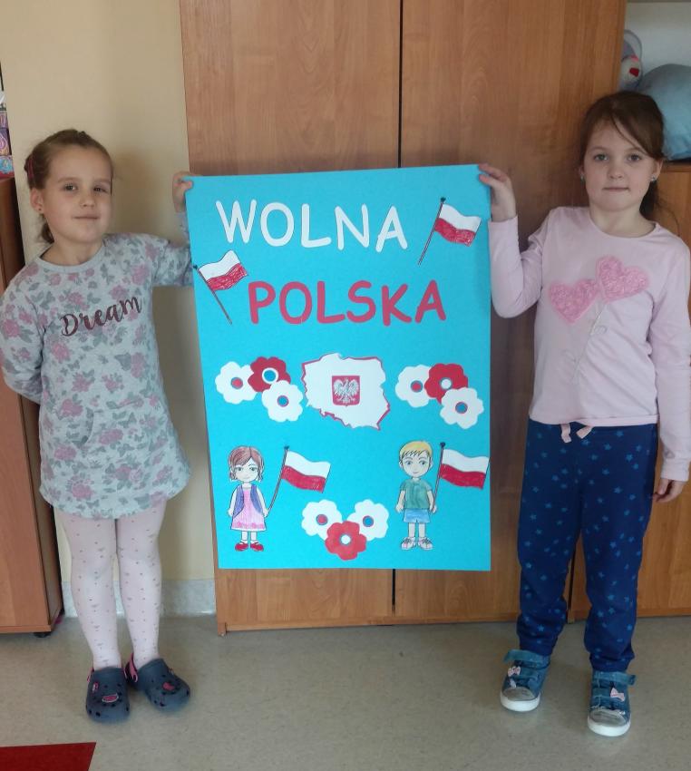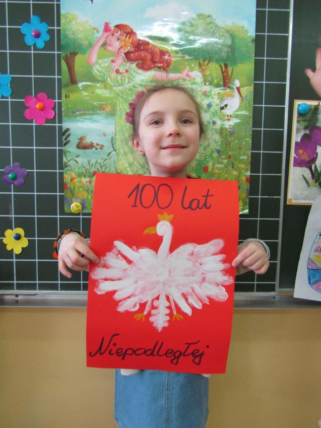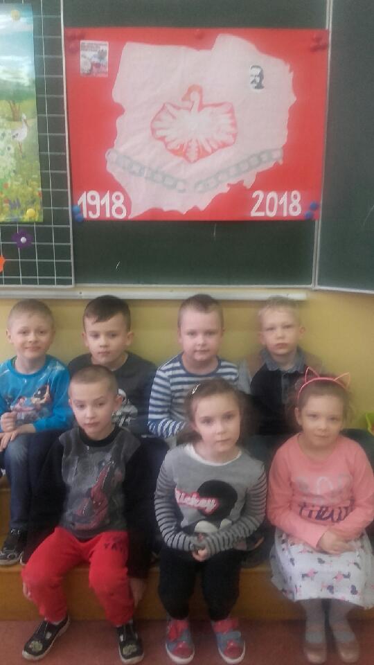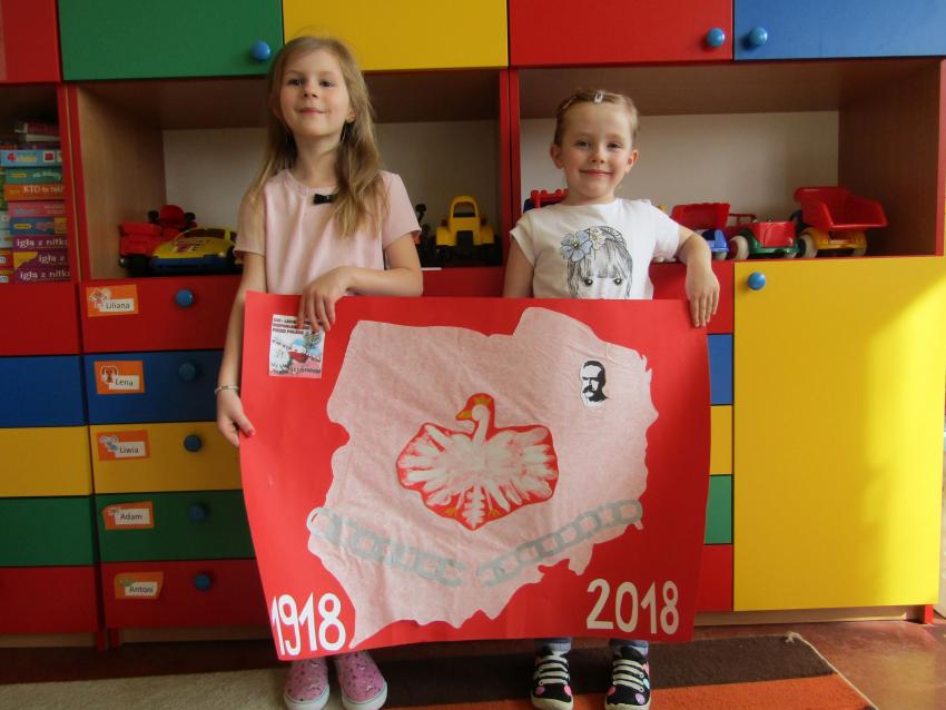 W miesiącu marcu we wszystkich oddziałach przedszkolnych zostały przeprowadzone zajęcia dotyczące tematyki patriotycznej i niepodległości. Dzieci z całego przedszkola, zostały wprowadzone w tematykę odzyskania przez Polskę niepodległości w 1918r. Wspólnie odśpiewano Hymn Polski, zachowując w trakcie odpowiednią postawę, zapoznano dzieci z postacią Józefa Piłsudskiego. Przedszkolaki wykonały także pracę plastyczną po tytułem: „100 rocznica odzyskania przez Polskę Niepodległości” różnymi technikami między innymi: odbijanie rączek maczanych w białej i czerwonej farbie na mapie Polski, odbijanie paluszków w białej i czerwonej farbie na mapie Polski, wydzieranie białych i czerwonych kawałków papieru kolorowego i wypełnianie nimi środka mapy Polski z zaznaczeniem stolicy Polski – Warszawy i miasta z jakiego pochodzimy, wykorzystanie małych i dużych kółek do godła Polski – metodą orgiami oraz stworzenie godła Polski z wyciętych z białego papieru dłoni dzieci.