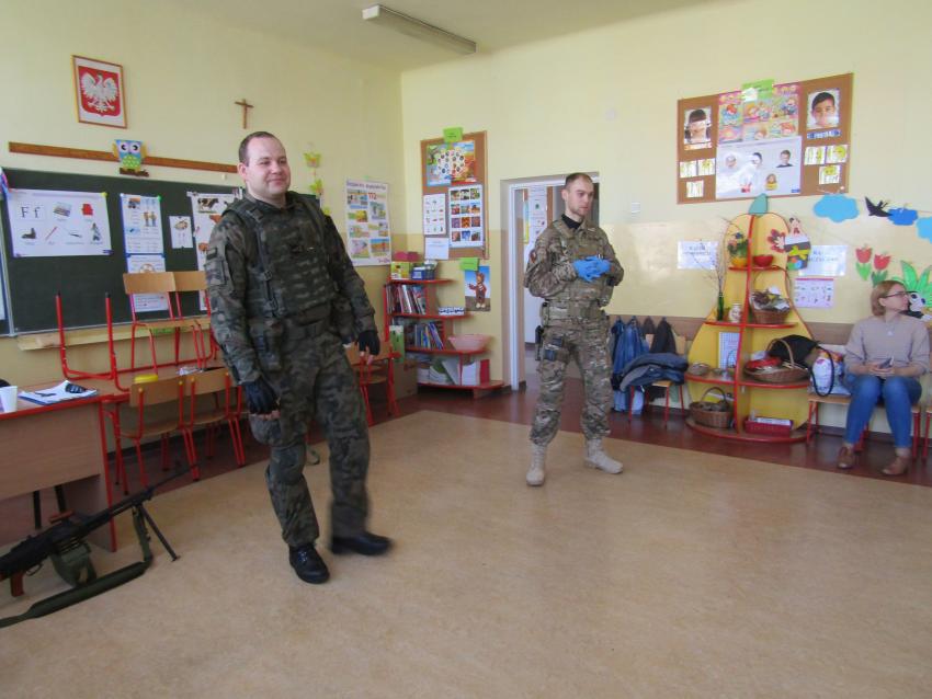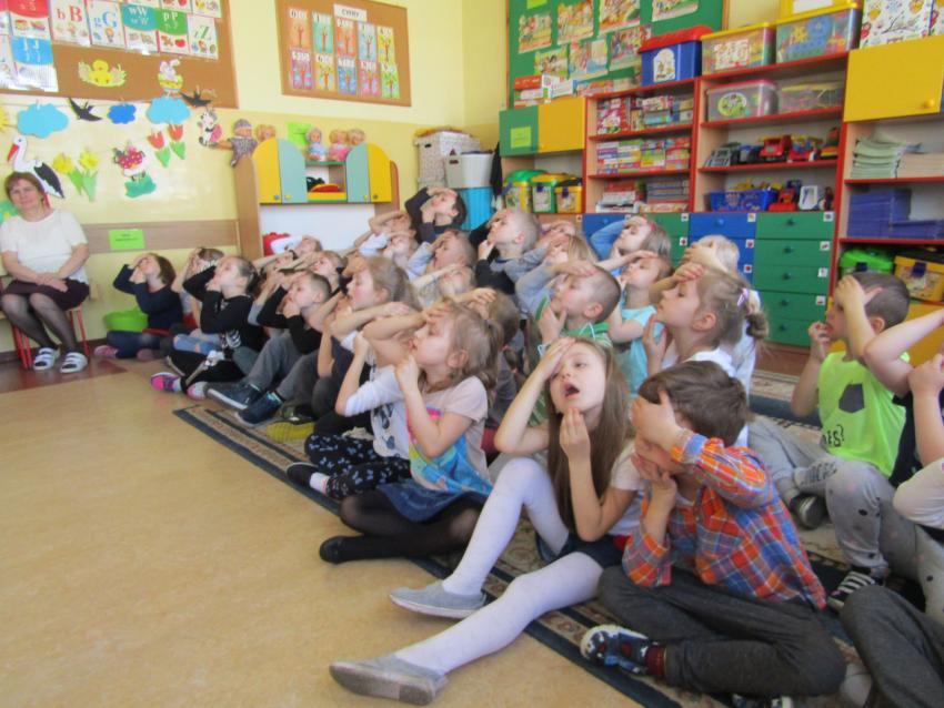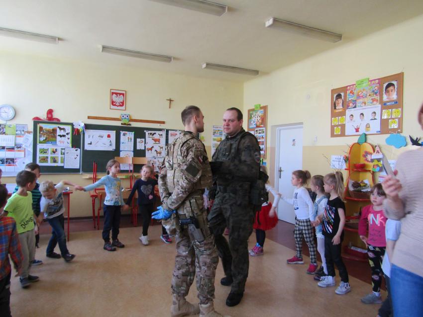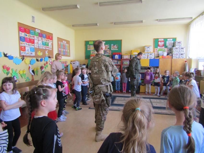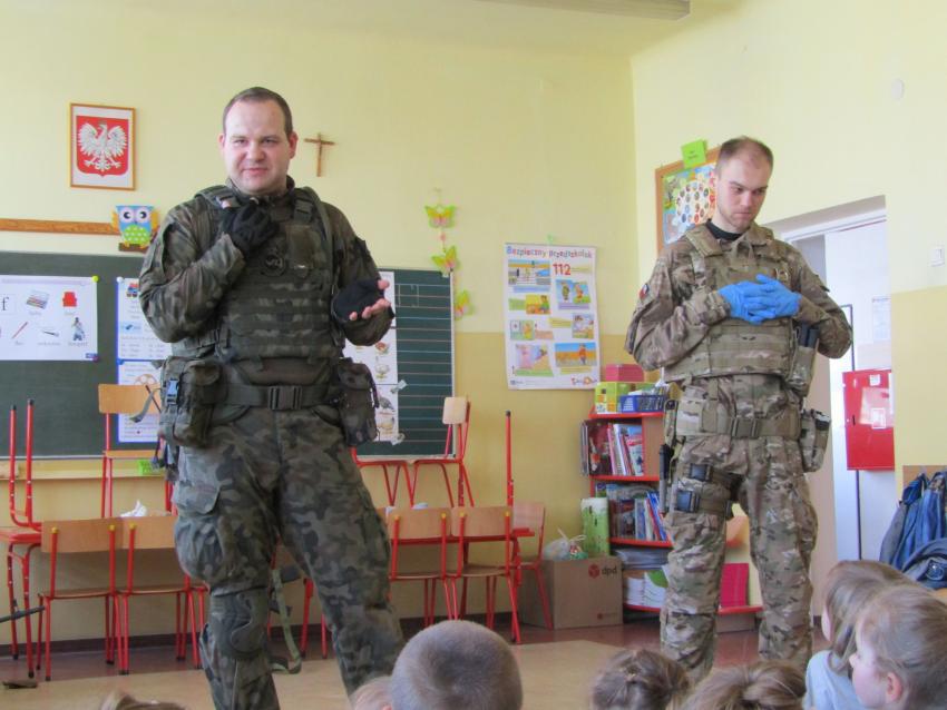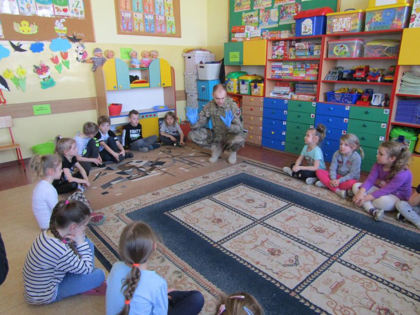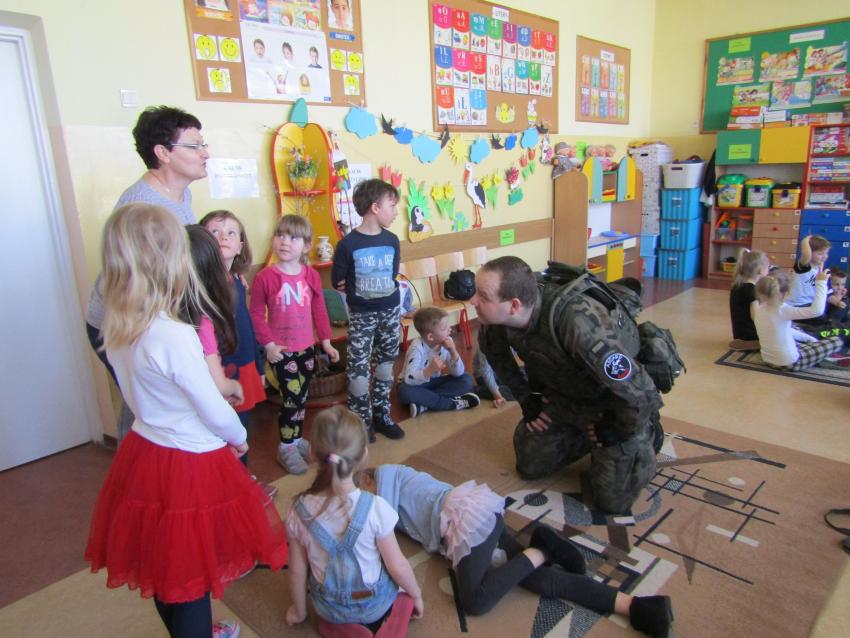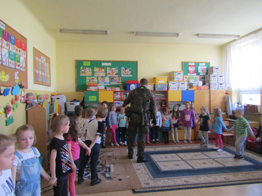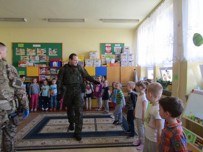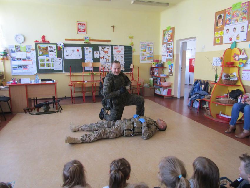 Wszystkie grupy przedszkolne uczestniczyły w pokazie przygotowanym przez panów ze stowarzyszenia ASGARD Radom na temat udzielania pierszej pomocy. Uczyliśmy się wielu potrzebnych rzeczy. Okazało się, że nawet małe dzieci mogą udzielić pomocy w razie konieczności swoim najbliższym. Muszą tylko wiedzieć, jak to zrobić. I właśnie w takiej lekcji uczestniczyliśmy. Odgrywaliśmy scenki rozmowy telefonicznej z pogotowiem. Sprawdzaliśmy stan poszkodowanego. Liczyliśmy ilośc wdechów i ucisków. Układaliśmy siebie nawzajem w pozycji bocznej ustalonej. A na koniec oglądaliśmy i dotykaliśmy wyposażenie wojskowe. To było bardzo cenne i pouczające spotkanie. Dziękujemy panom!