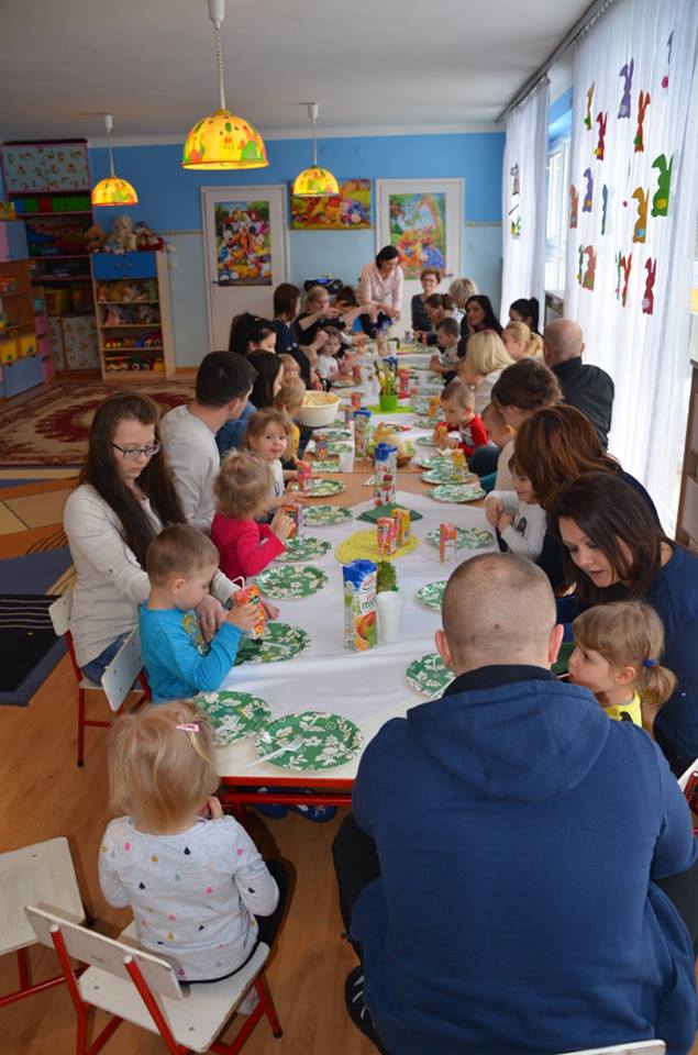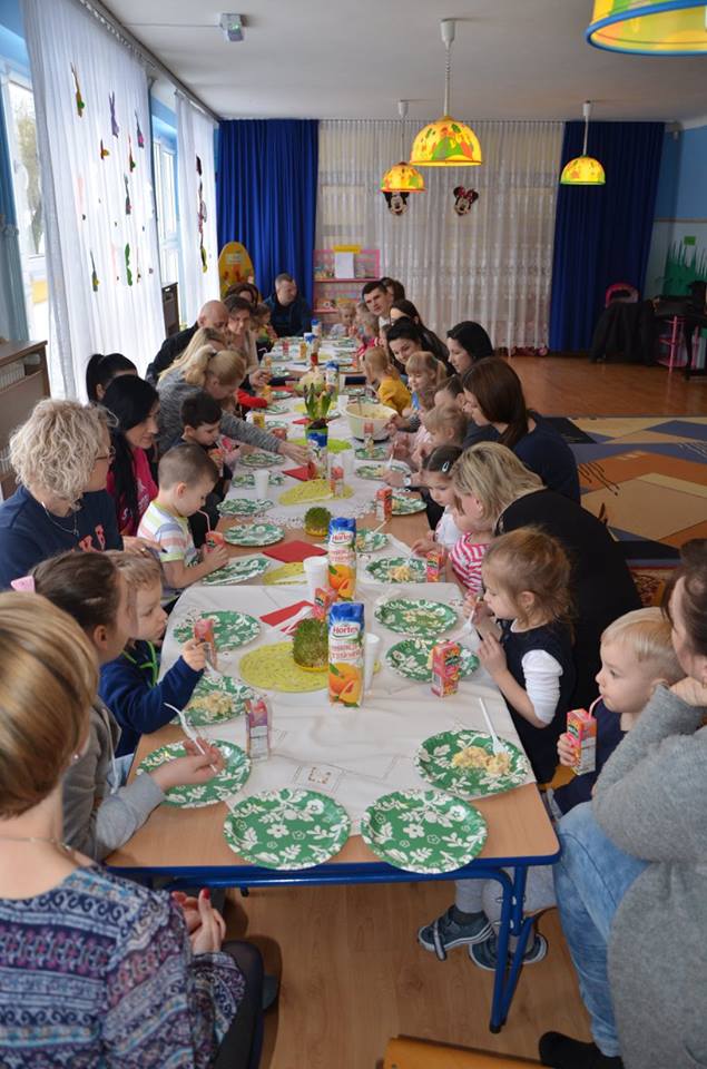 Dnia 20 marca 2018 roku odbyły się zajęcia otwarte dla rodziców. Wspólnie rozwiązywaliśmy zagadki o tematyce wielkanocnej, śpiewaliśmy piosenki, a także zrobiliśmy sałatkę jarzynową, którą potem jedliśmy ze smakiem. Pani dyrektor wraz z nauczycielkami złożyła życzenia wielkanocne dzieciom i rodzicom. Dziękujemy za uczestnictwo w naszych zajęciach.