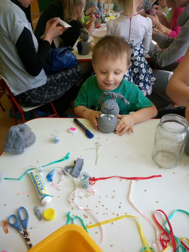 Dnia 26.03.2018 roku w grupie "Motylków" odbyły się zajęcia otwarte dla rodziców i dzieci o tematyce wielkanocnej. Dzieci wspólnie z rodzicami uczestniczyli w zajęciach przeprowadzonych przez nauczycielki oraz wspólnie wykonali ozdobę wielkanocną - zająca. Nauczycielki bardzo dziękują za aktywne uczestnictwo w zajęciach.
