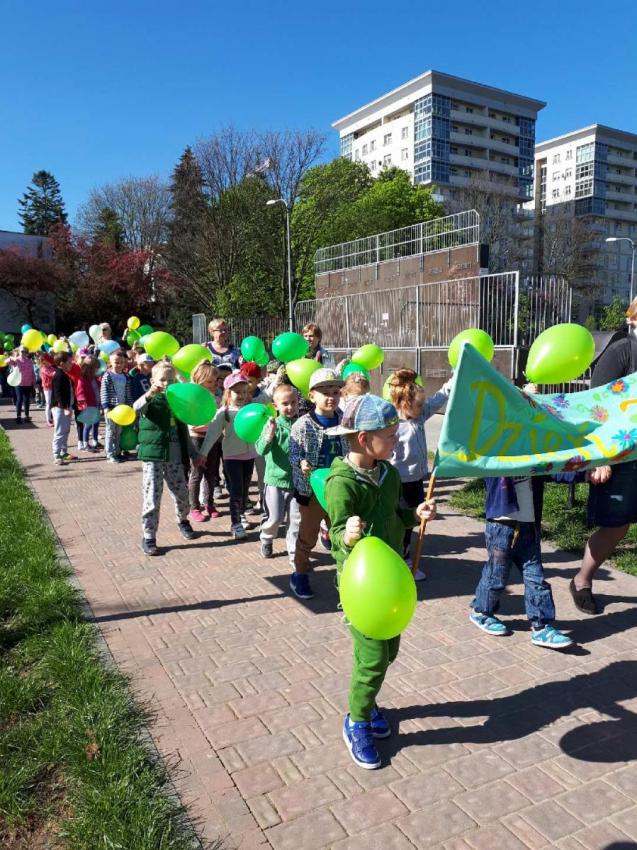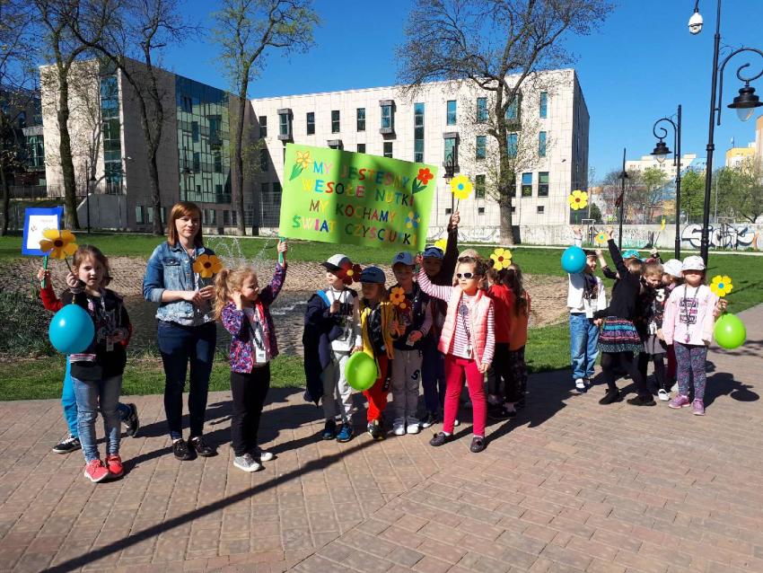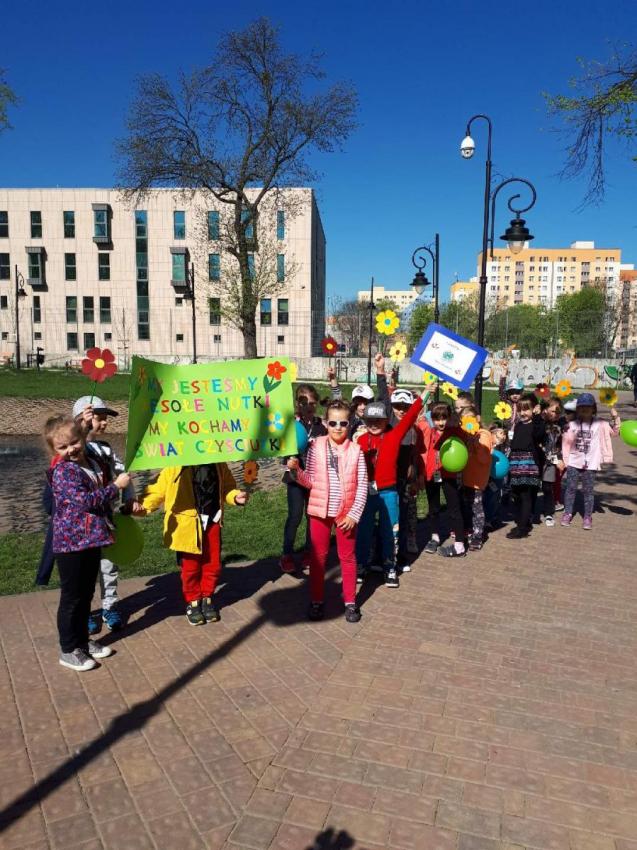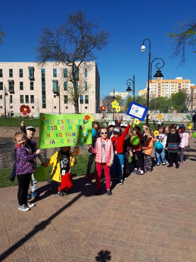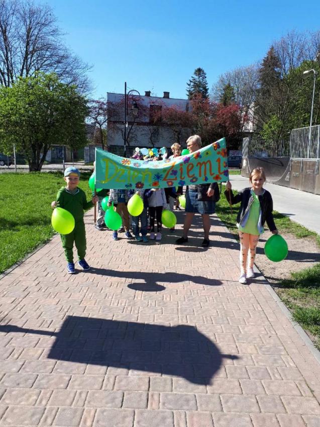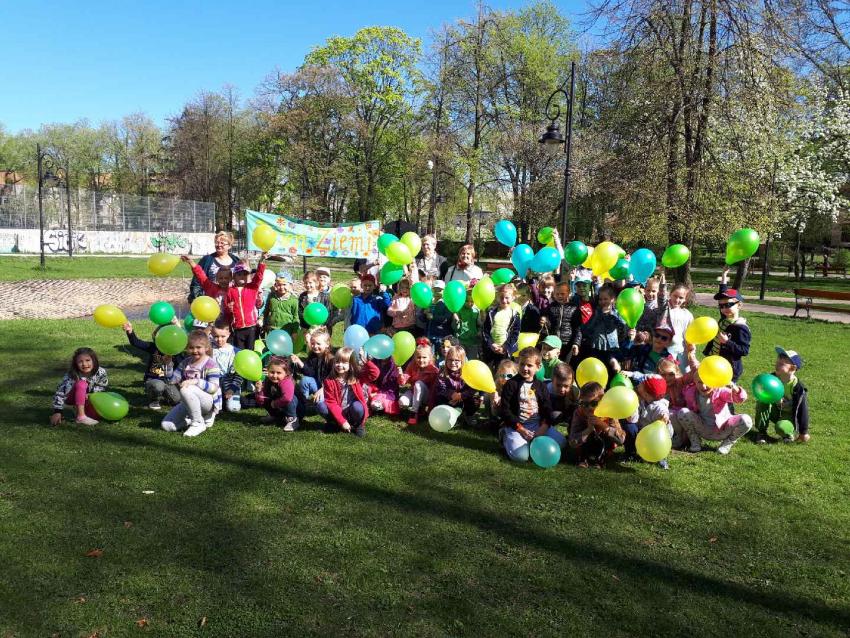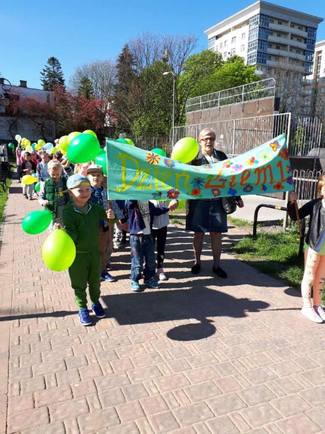 Hasło Dnia Ziemi w 2018 roku brzmi: "End Plastic Pollution". Dotyczy ono walki z zanieczyszczeniem planety plastikowymi odpadami. Celem każdego Dnia Ziemi jest uświadomienie problemów związanych ze zmianami klimatu, przeludnieniem, wymieraniem gatunków czy brakiem wody w wielu częściach świata. Tego dnia promuje się działania na rzecz walki z zanieczyszczeniem środowiska i edukowanie ludzi na całym świecie, jak wielki problem stanowi zanieczyszczenie środowiska odpadami zrobionymi z tworzyw sztucznych. W naszym przedszkolu promujemy postawy ekologiczne. Z okazji obchodów Dnia Ziemi starsze grupy przygotowały transparenty i wyruszyły do parku Leśniczówka, aby obwieścić wszystkim jak ważna jest ochrona naszej planety.
