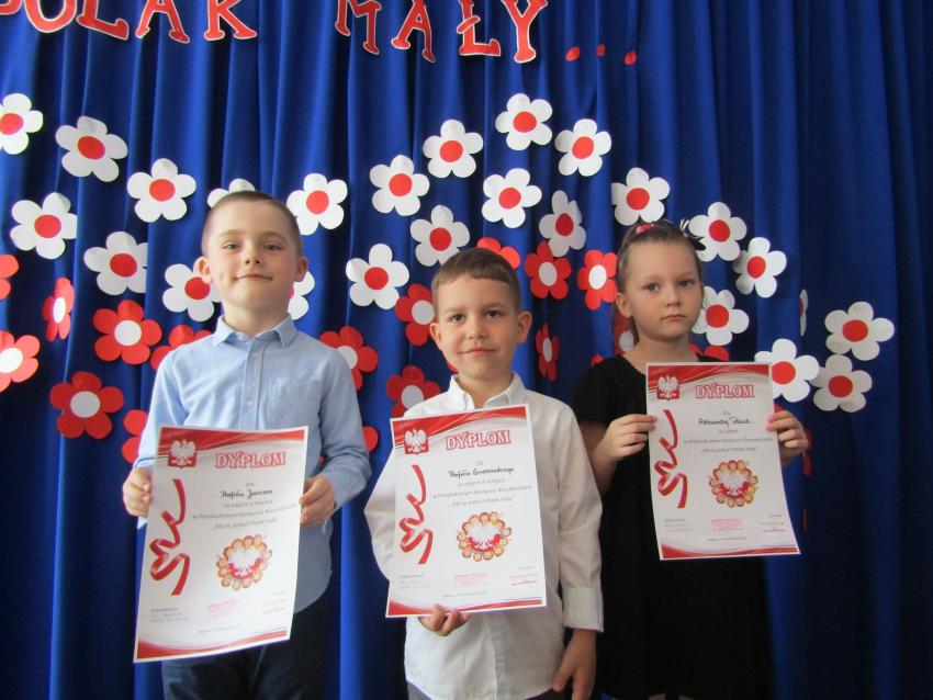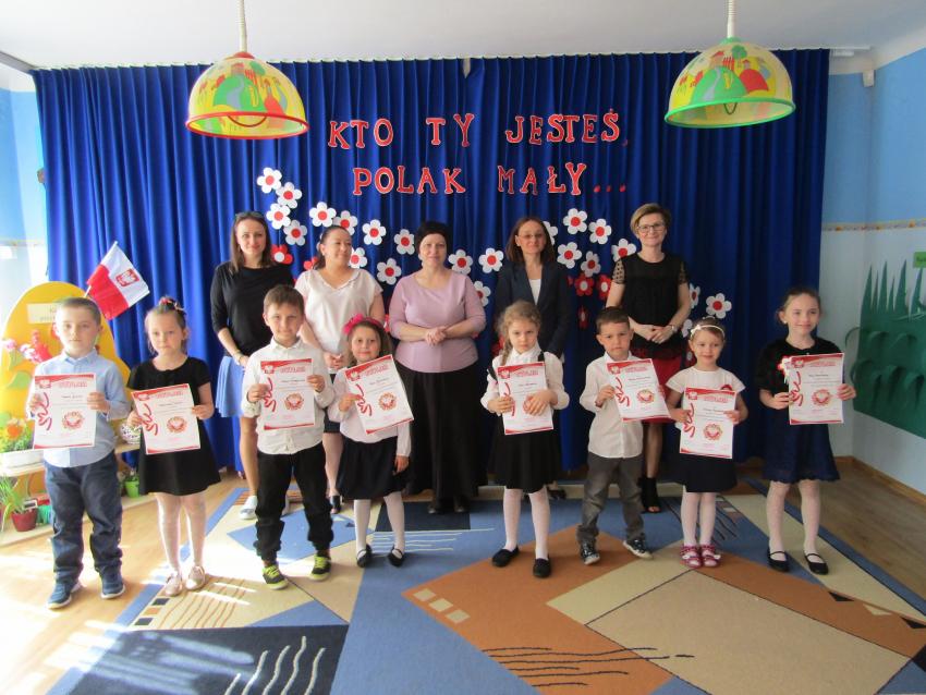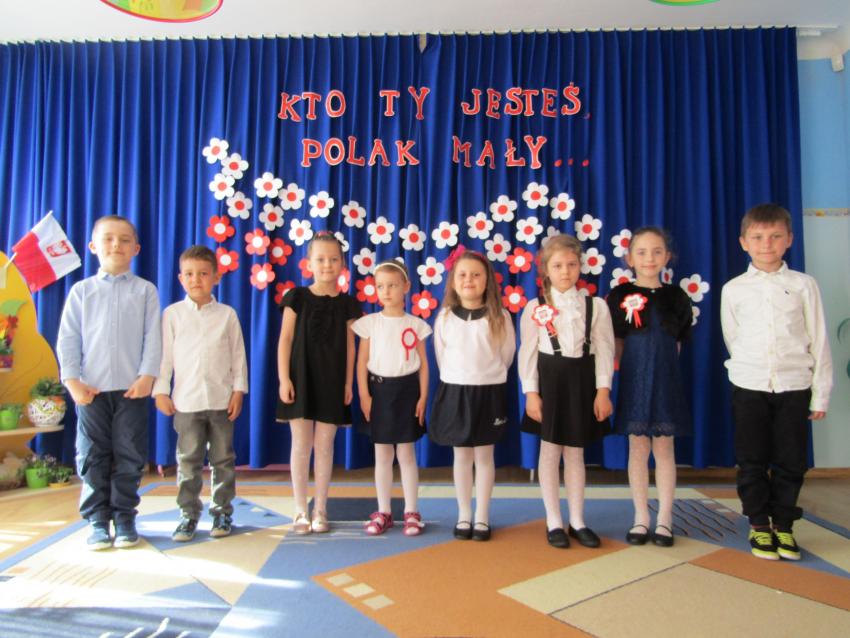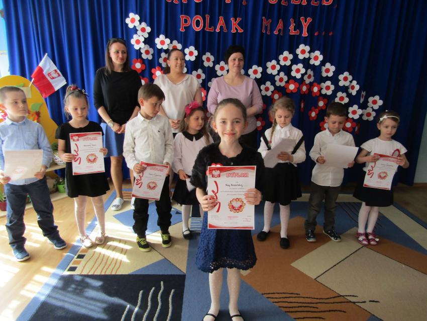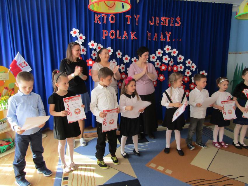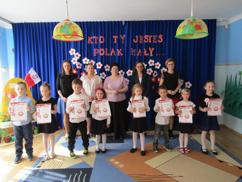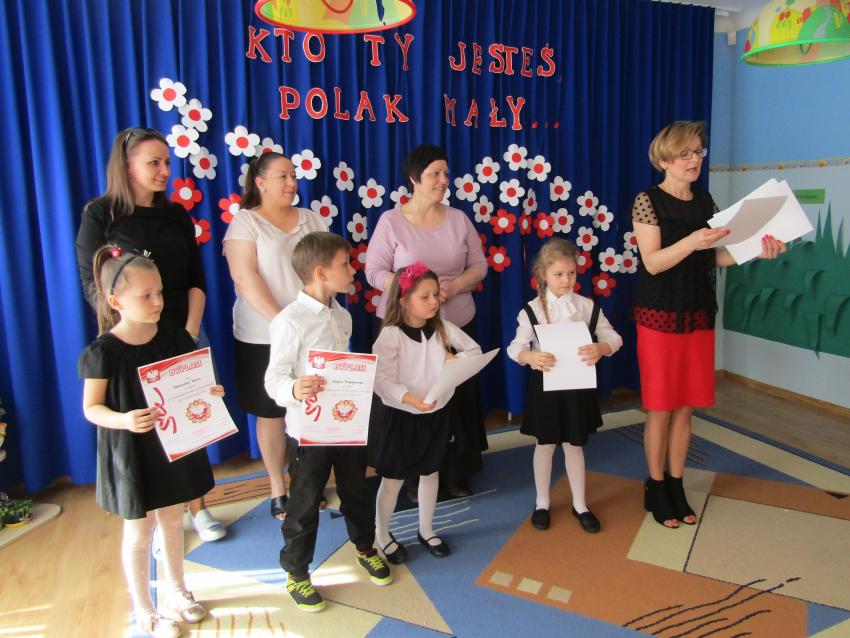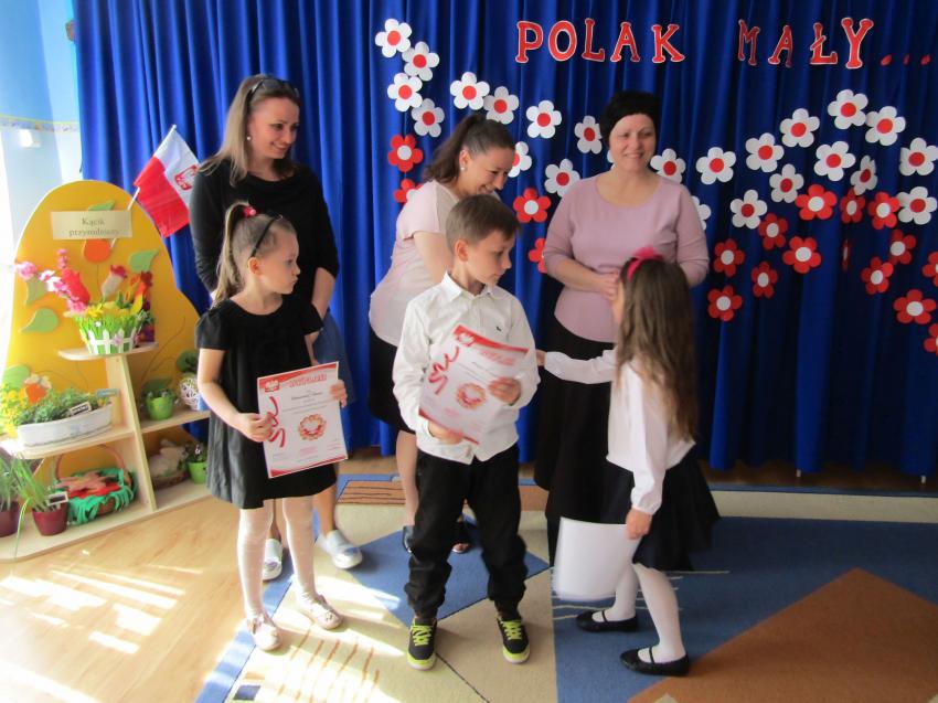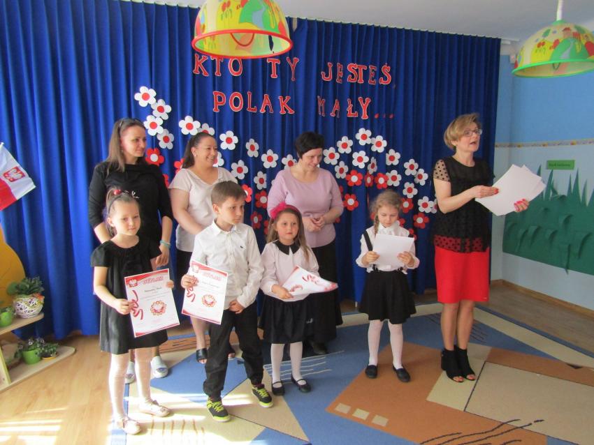 W dniu 25.04.2018 r. w naszym przedszkolu odbył się konkurs recytatorski o tematyce patriotycznej "Kto ty jesteś? Polak mały." W konkursie wzięli udział przedstawiciele każdej z grup wyłonieni podczas grupowych eliminacji przez wychowawców w dwóch grupach wiekowych - w kategorii: 3, 4 - latki oraz w kategorii: 5, 6 - latki. Grupy starsze reprezentowali: