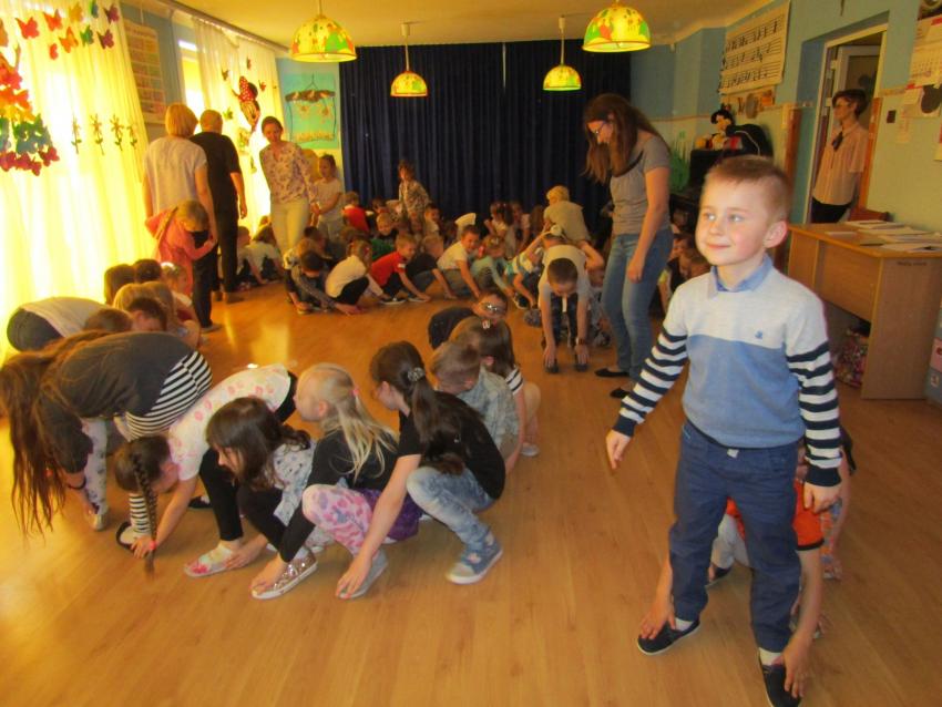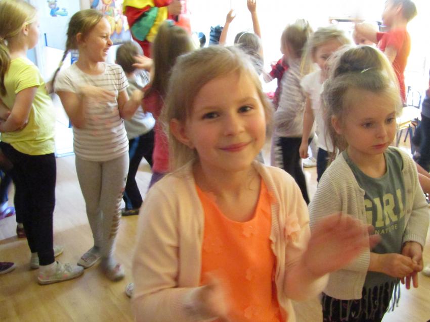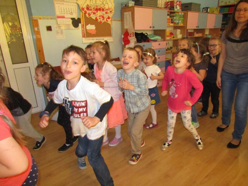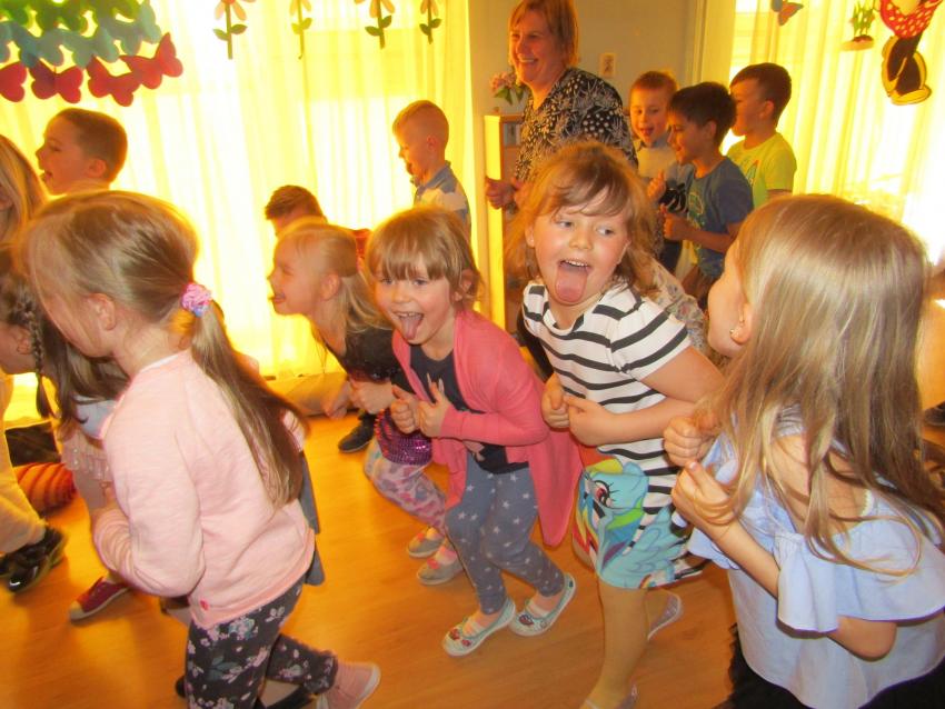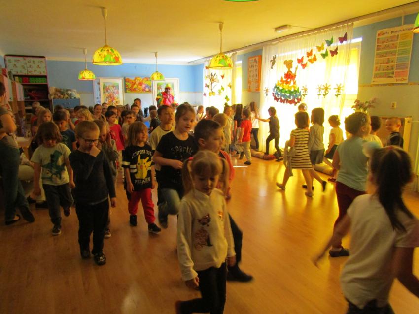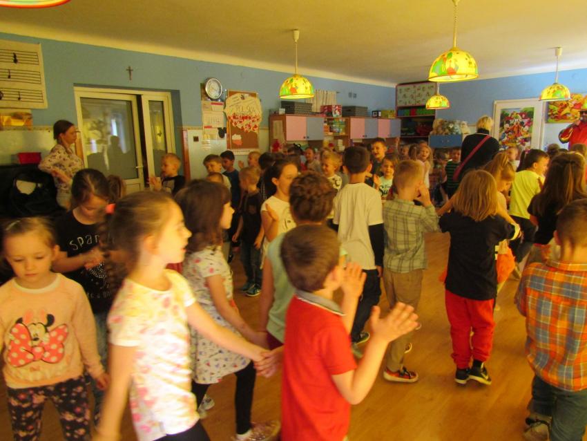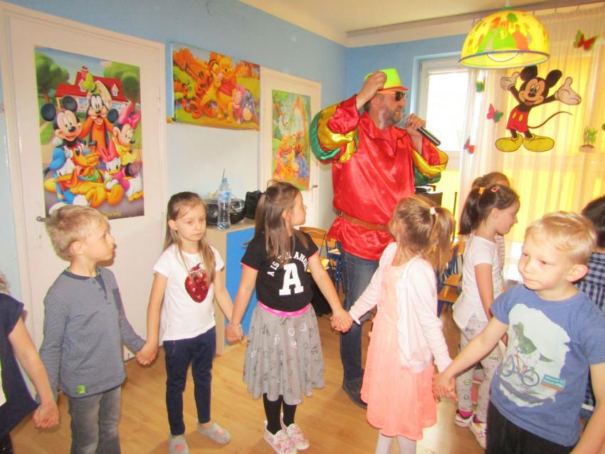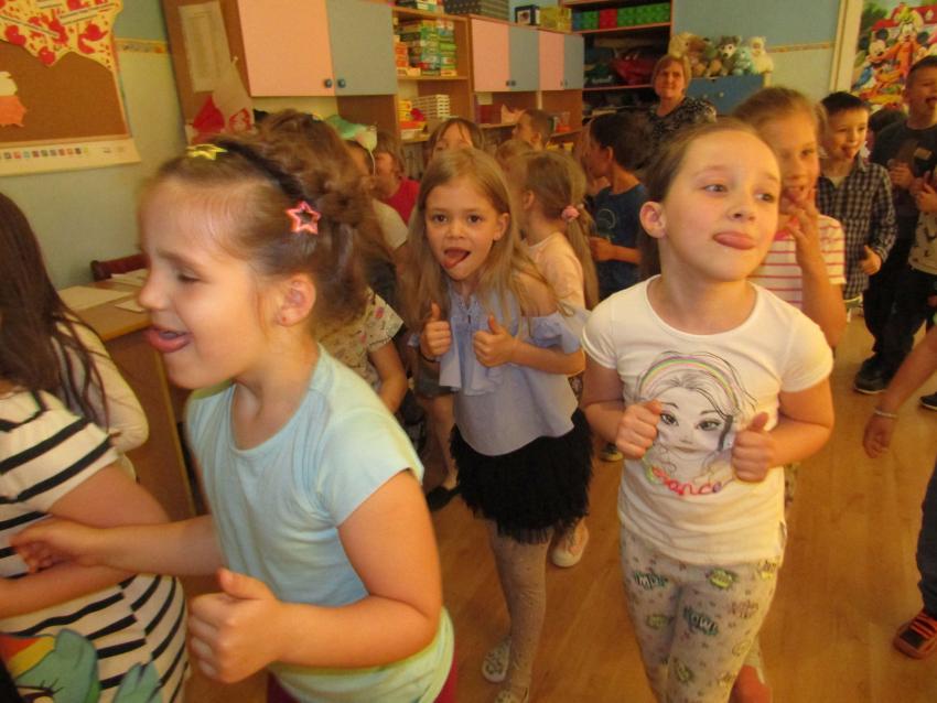 W dniu 27 kwietnia dzieci ze starszych grup przedszkolnych uczestniczyły w zabawie tanecznej z wodzirejem w wykonaniu Firmy Edukacyjnej "PIANO, FOTO, MONO". Bawiliśmy się świetnie! Dziecięce hity muzyczne i zabawne utwory taneczne wprawiły wszystkie dzieci w wesoły nastrój. Bardzo nam się podobało. Dziękujemy!