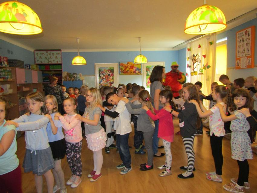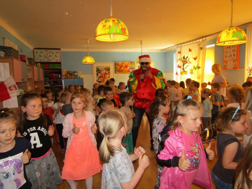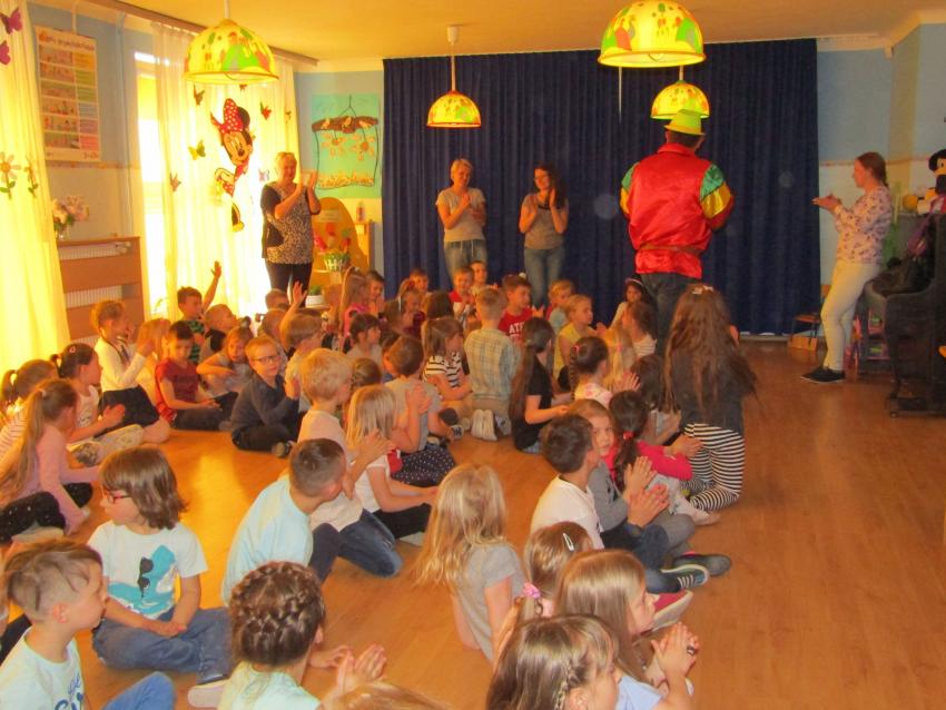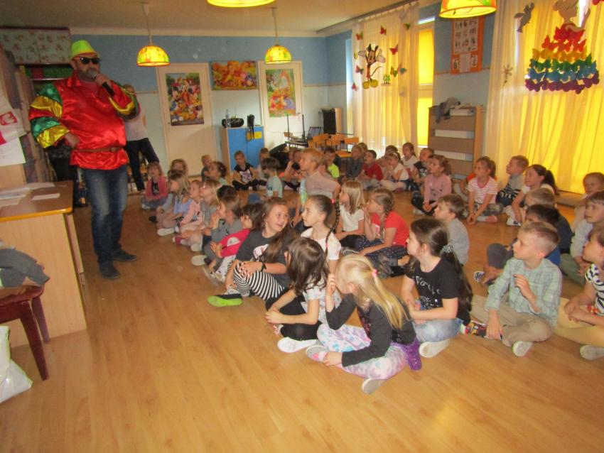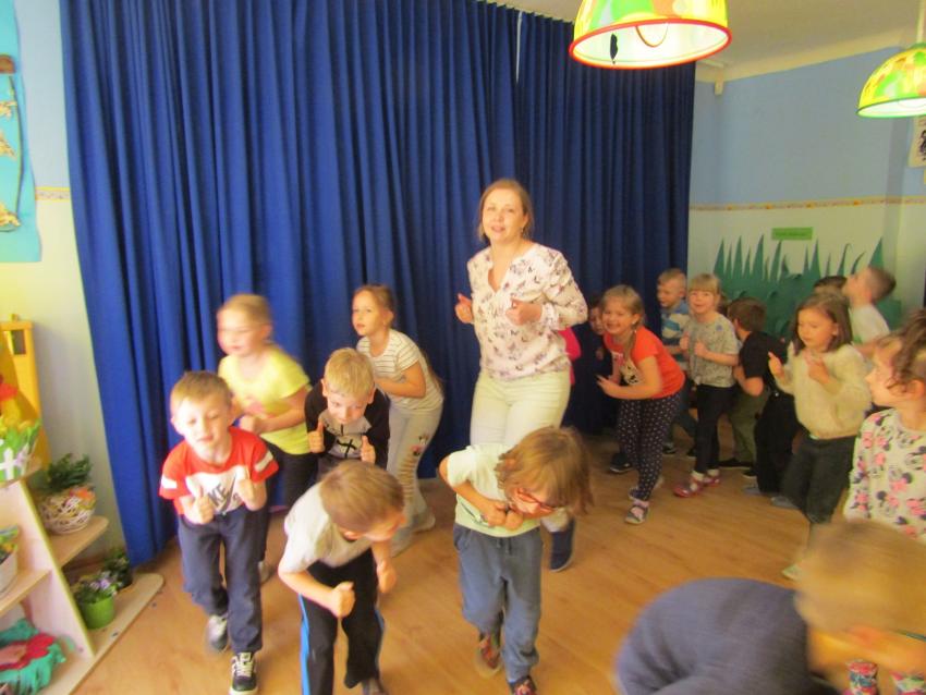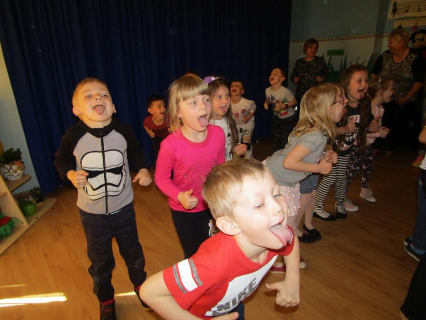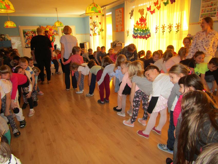 W dniu 27 kwietnia dzieci ze starszych grup przedszkolnych uczestniczyły w zabawie tanecznej z wodzirejem w wykonaniu Firmy Edukacyjnej "PIANO, FOTO, MONO". Bawiliśmy się świetnie! Dziecięce hity muzyczne i zabawne utwory taneczne wprawiły wszystkie dzieci w wesoły nastrój. Bardzo nam się podobało. Dziękujemy!