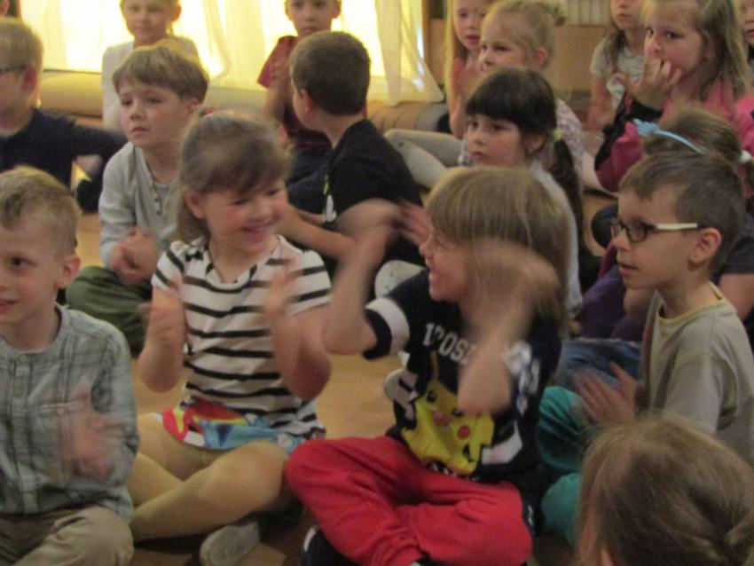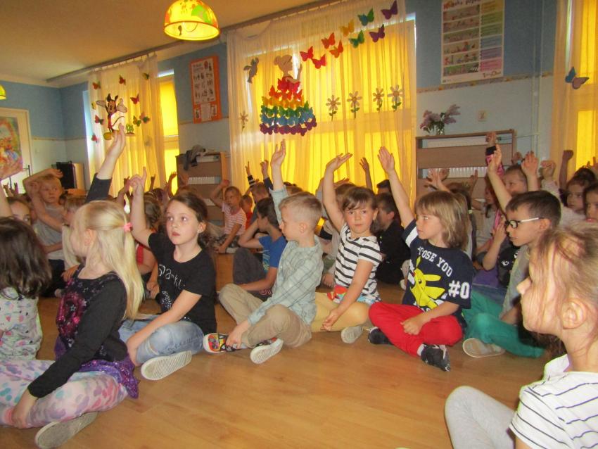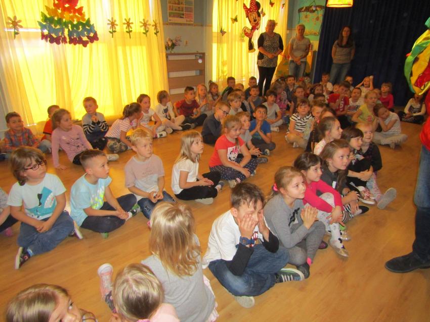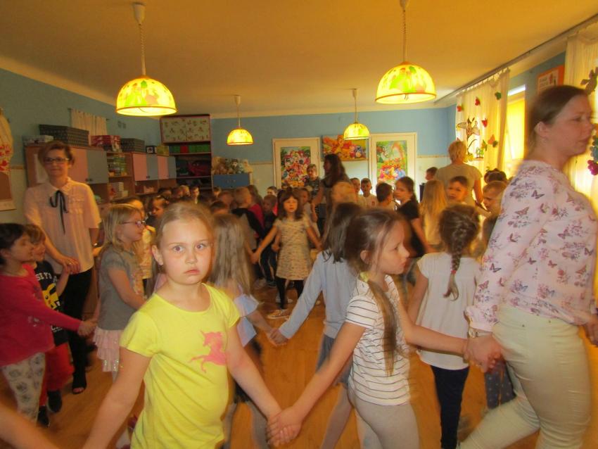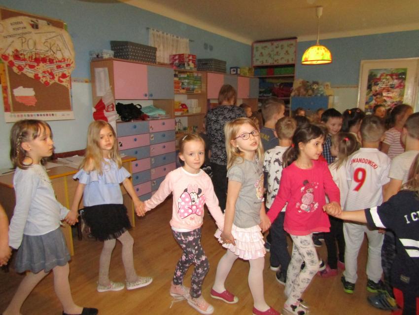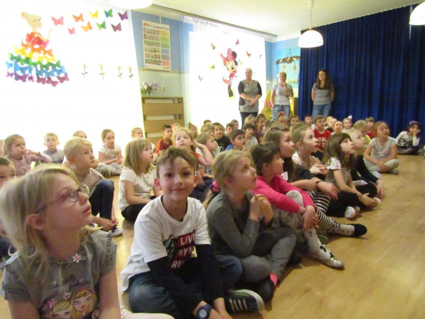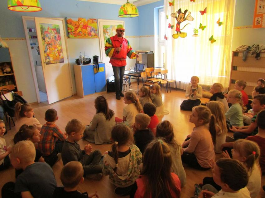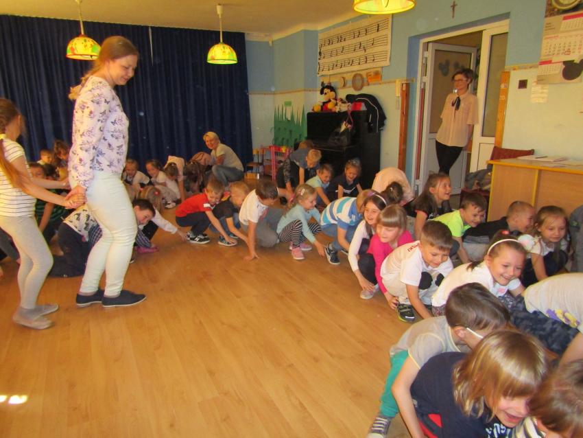W dniu 27 kwietnia dzieci ze starszych grup przedszkolnych uczestniczyły w zabawie tanecznej z wodzirejem w wykonaniu Firmy Edukacyjnej "PIANO, FOTO, MONO". Bawiliśmy się świetnie! Dziecięce hity muzyczne i zabawne utwory taneczne wprawiły wszystkie dzieci w wesoły nastrój. Bardzo nam się podobało. Dziękujemy!