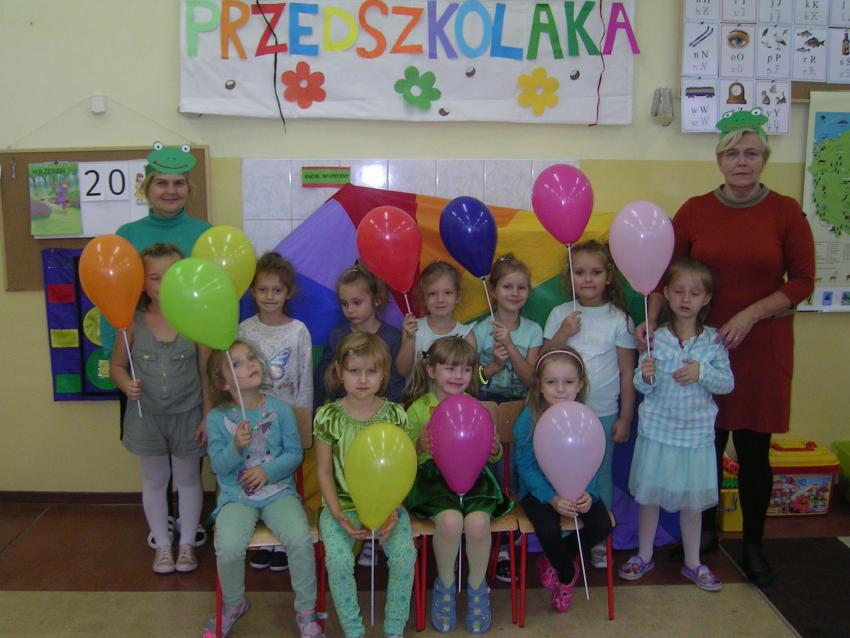 Jesteśmy dumni z naszych przedszkolaków ! Kochane Żabki już trzeci rok jesteście z nami. Wszystkiego najlepszego z okazji Waszego święta.Niech te kolorowe balony bedą zapowiedzią pieknej przyszłości jaka jest przed Wami. Przesyłamy buziaki!